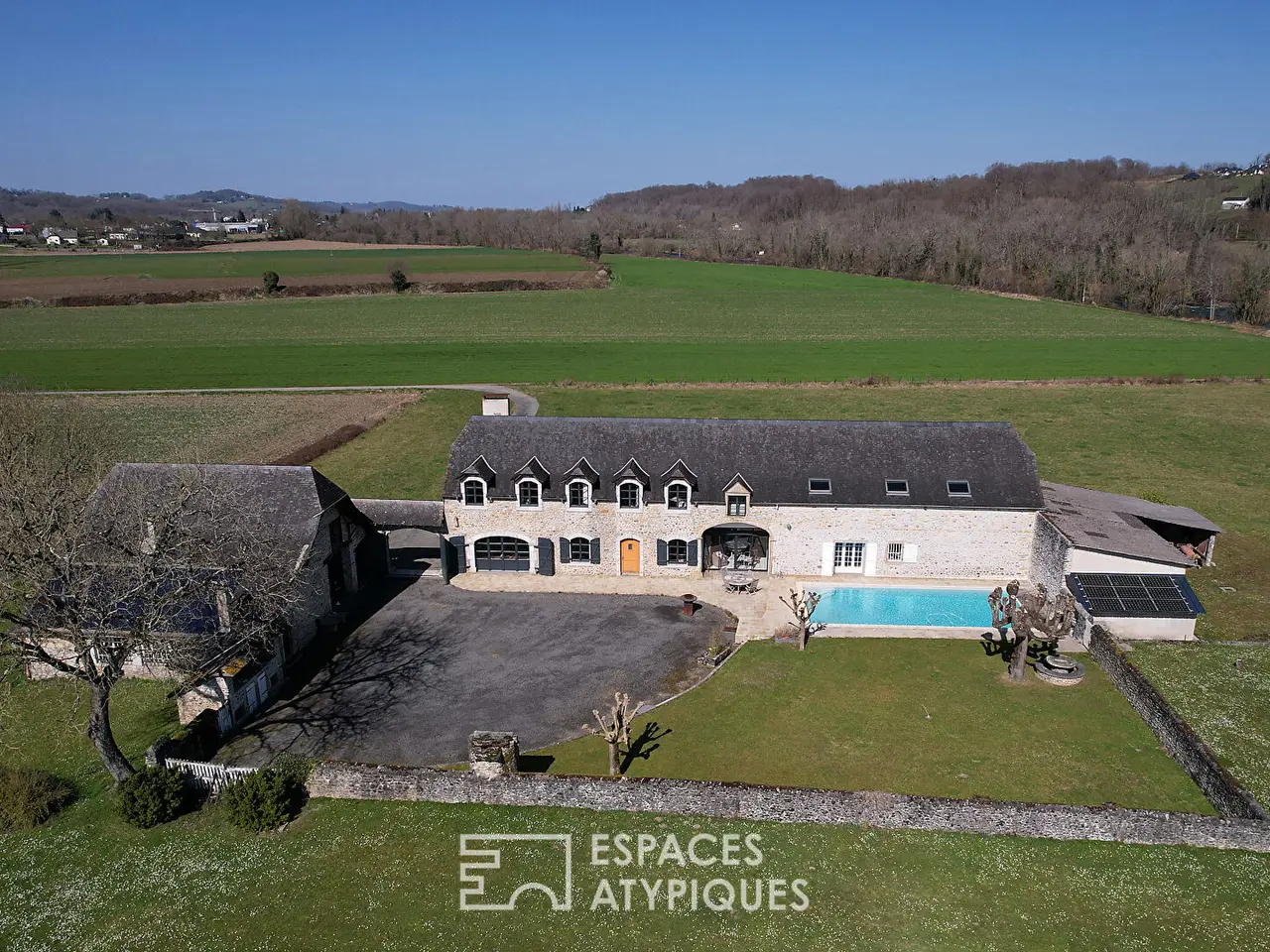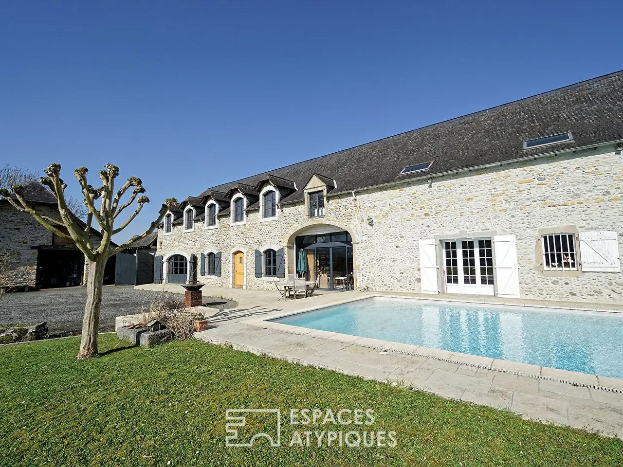 Facing the Pyrenees, in the heart of nature and on the banks of the Gave de Pau, this magnificent stone farmhouse dating from 1817 extends over a generous surface area of 364 sqm, spread over two floors. Located on a plot of more than 2 hectares, this exceptional property offers a peaceful living environment, enhanced by a swimming pool and outbuildings. Access to this residence is via a discreet path, leading to a porch that opens onto the vast courtyard. The interior, with travertine paving, leads us to a large, bright, south-facing living room, decorated with a fireplace, exposed beams and pebble walls, adding a touch of authenticity. A small living room, an office, and a large dining room adjoining a huge contemporary kitchen, with direct access to the terrace and the swimming pool, complete this convivial living space. Upstairs, the property features a double bedroom with an en-suite shower room, a spacious dressing room, and three further bedrooms, two of which also have their own shower room. An additional bathroom, a WC, and a very large games room offer numerous design possibilities to meet your needs. The outbuildings include several barns, ideal for safely parking all your vehicles, as well as a separate workshop converted into a studio. For equestrian enthusiasts, horse boxes are also available, and the property is equipped with photovoltaic panels, combining comfort and respect for the environment. This prestigious property benefits from an exceptional setting and panorama, just 30 minutes from Pau and 50 minutes from the ski resorts. You will also find local shops just a short walk away, thus combining tranquility and convenience. Don't miss this unique opportunity to become the owner of a property combining charm, comfort, and elegance in the heart of the Pyrenees. Energy class: B / Climate class: A Estimated average amount of annual energy expenditure for standard use, established from average energy prices indexed as of 01/01/2021 (including subscriptions): between EUR1,990 and EUR2,690. Contact: Sebastien POUEY - 06 74 97 25 35 RSAC Pau 421 883 828REF. 10028EAPAdditional information* 11 rooms* 6 bedrooms* Outdoor space : 24000 SQM* Property tax : 1 611 €Energy Performance CertificatePrimary energy consumptionb : 104 kWh/m2.yearHigh performance housing*A*104kWh/m2.year3*kg CO2/m2.yearB*C*D*E*F*GExtremely poor housing performance* Of which greenhouse gas emissionsa : 3 kg CO2/m2.yearLow CO2 emissions*3kg CO2/m2.yearA*B*C*D*E*F*GVery high CO2 emissionsAgency feesThe fees include VAT and are payable by the vendorMediatorMediation Franchise-Consommateurswww.mediation-franchise.com29 Boulevard de Courcelles 75008 ParisInformation on the risks to which this property is exposed is available on the Geohazards website : www.georisques.gouv.fr