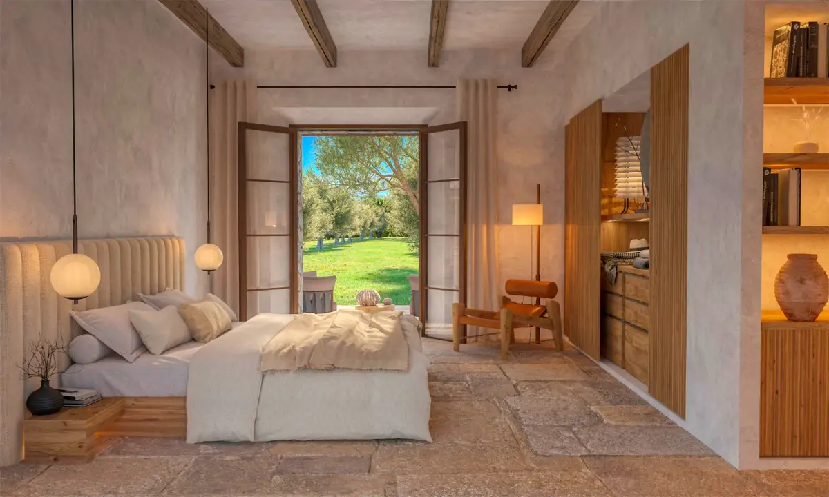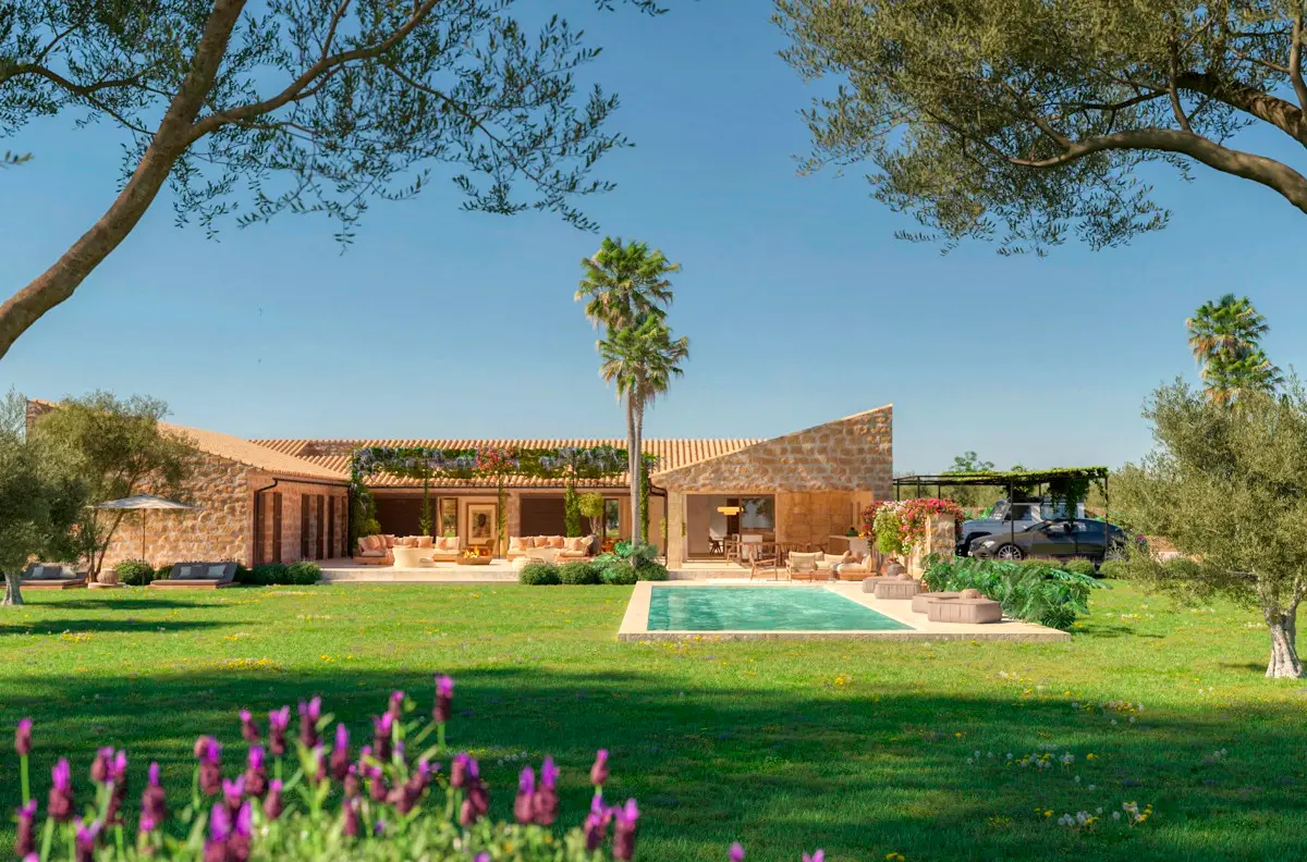 For sale large finca presented with project for planting vineyards, almond trees and building a beautiful house. The project consists of the construction of a luxurious house, set in the middle of the plot of almost 13 hectares, from where it can be accessed through a path surrounded by numerous cypress trees. With olive groves and three hectares of vineyards planted with local varieties such as Manto Negro, Callet and the international Sauvignon Blanc. The outdoor facilities include a 35 square meter swimming pool, several terraces totaling 156 square meters and 54 square meters of verandas. The house will be distributed over a single floor of 299 square meters plus a basement of 100 square meters. Provided are a spacious but cozy living room with a modern fireplace, a laundry room, a guest toilet, a beautiful kitchen and a dining room connected to the fantastic outdoor areas and verandas. Additional bathroom in the basement where more than 55 square meters are free. In one wing of the house there are three double bedrooms, two of which have en suite bathrooms and the third larger one has a living area and en suite bathroom. All rooms have direct access to the outdoor area. It has an outdoor parking space with pergola, panels for generating photovoltaic solar energy, electricity, its own well and the necessary installations for its management and maintenance. In addition, there is an existing agricultural building of approximately 200 m². A beautiful project that has already been presented and is awaiting approval.