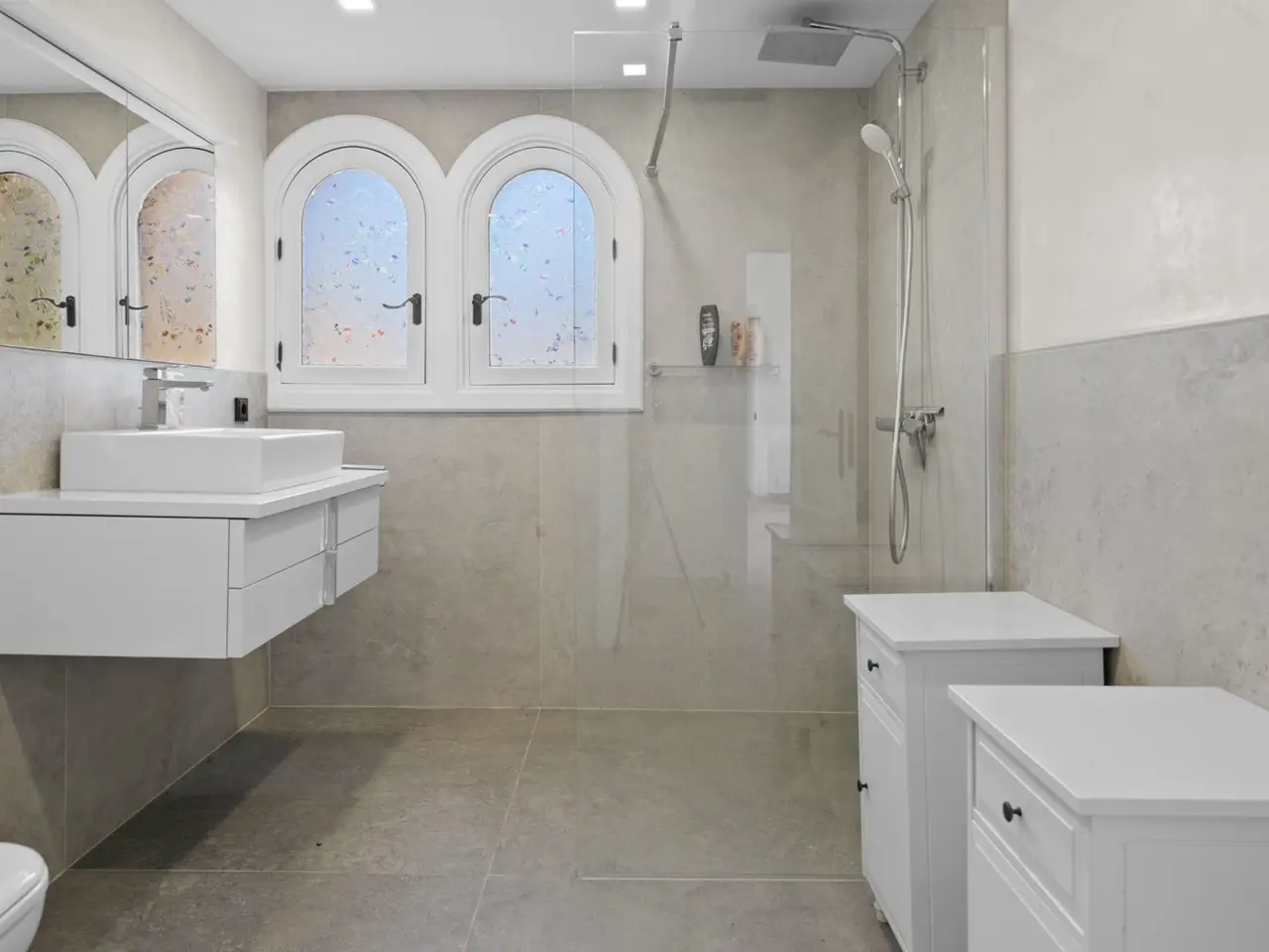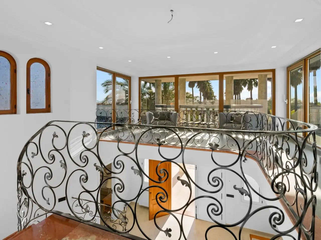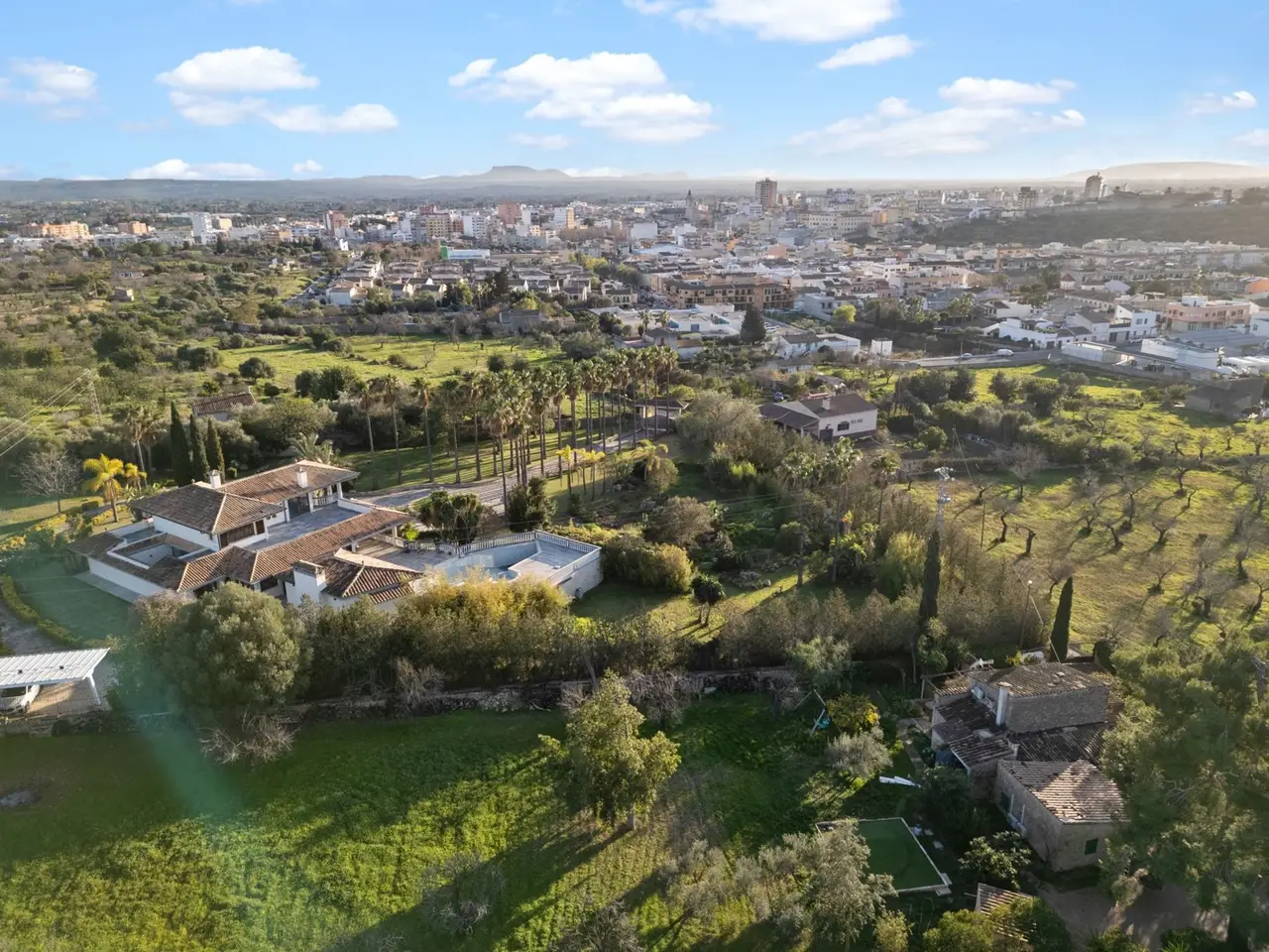 This modern chalet offers a living area of approximately 466 m² on a spacious plot of approx. 7413 m². The property is located in the quiet, rural surroundings and yet close to the center of Inca, making it an ideal home for those seeking tranquility and proximity to the city at the same time. Built in 1991, the house is accessed via a palm-lined driveway, has recently been extensively modernized and impresses with its high quality finishes. The impressive entrance hall and gallery lead to a total of seven rooms, including six bedrooms and five bathrooms, all of which have been renovated to modern standards. The open-plan kitchen is equipped with high-quality Gaggenau appliances and has a central cooking island, while large-format tiles lend the interior a modern ambience. The central heating system with heat pump is supported by solar panels, which ensures an environmentally friendly energy supply. In addition, air conditioning systems and modern camera surveillance provide optimum security and comfort. A particular highlight is the heated saltwater pool with integrated jacuzzi, which, together with the new pool house, which has a fitted kitchen, BBQ area and fireplace, offers the perfect space for leisure and relaxation. The park-like gardens are maintained by an automatic irrigation system. The underground garage offers space for several vehicles and a wine cellar. There is also a covered parking space with solar panels. If you are interested in viewing the property or would like further information, please do not hesitate to contact us.