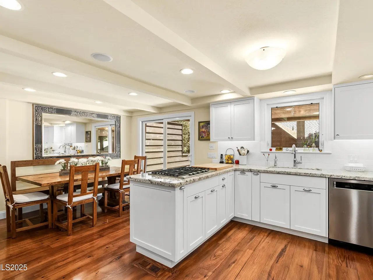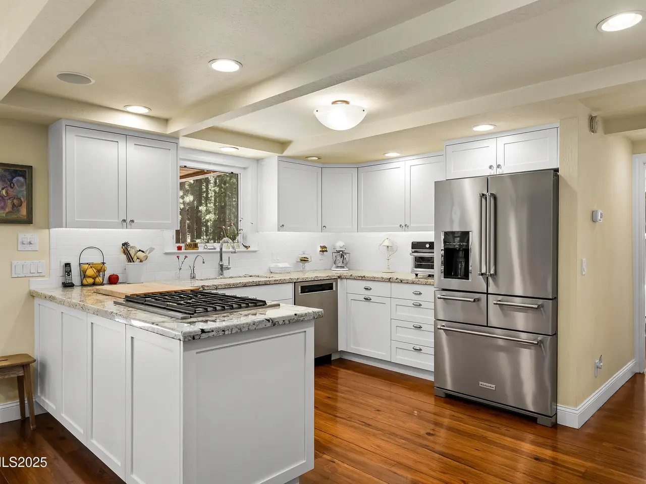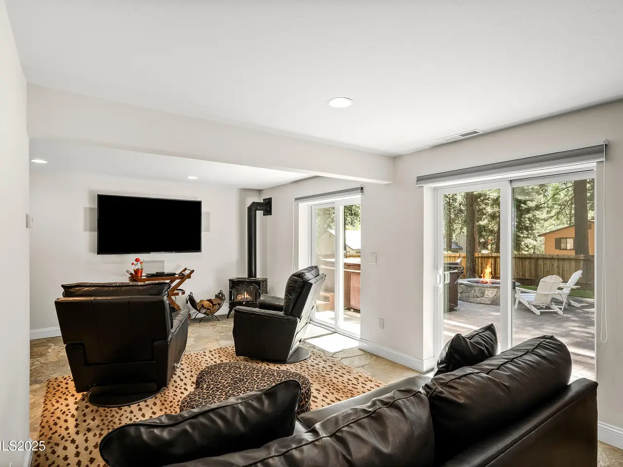 This stunning mountain home offers an ideal blend of luxury and comfort. Situated on a landscaped, level lot, featuring gourmet kitchen with granite counters. Welcoming living room with gas fireplace provides warmth and relaxation, a spacious recreation room opens to a patio with a firepit, ideal for outdoor gatherings year-round. The expansive backyard includes a large grass area, perfect for family activities and enjoying the serene mountain surroundings. High vaulted ceilings and marble floors in the primary bathroom add elegance. Features three full bathrooms, located on separate levels, along with an office offering deck access and a gym. Finished garage with epoxy-coated flooring and paver driveway adds functionality and beauty. Conveniently located near IVGID beaches and the Hyatt, with easy access to local amenities while offering a peaceful retreat in the heart of the mountains. The listing agent is related to the seller, and the seller is a NV broker.