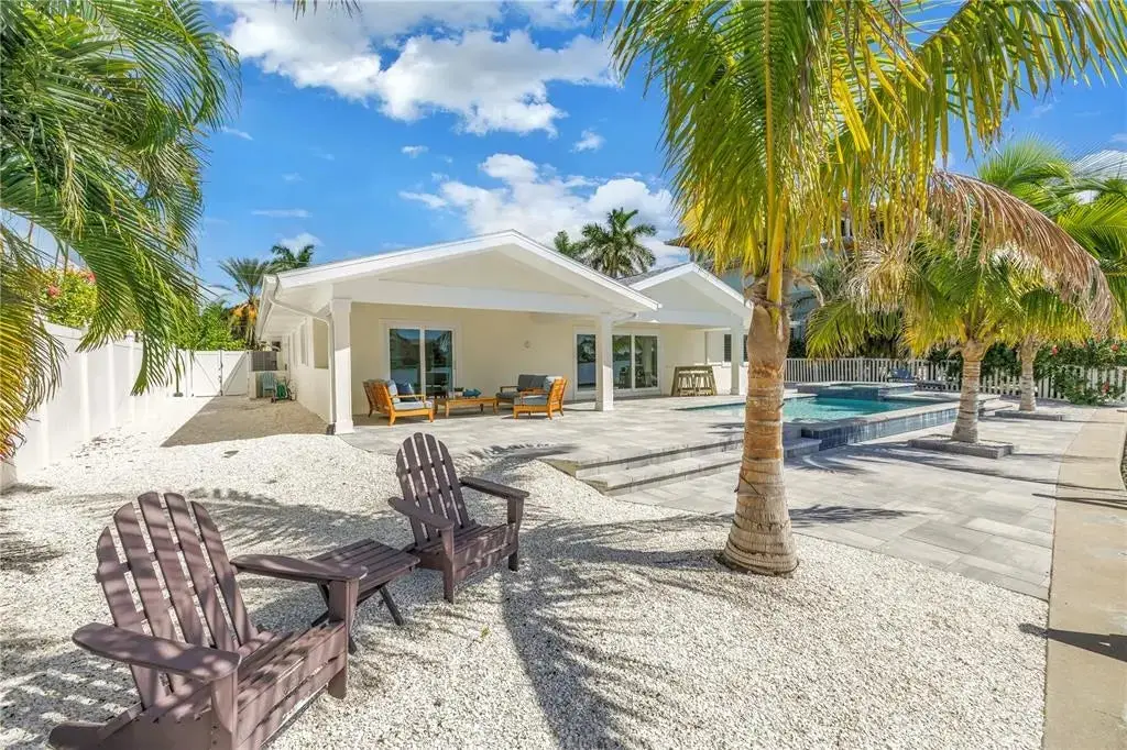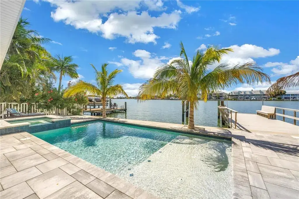 Under contract-accepting backup offers. One or more photo(s) has been virtually staged. Experience the pinnacle of waterfront living in this beautifully updated 3-bedroom, 3-bathroom home on a quiet inlet, leading directly to the Intracoastal Waterway. Perfect for boaters, this property features its own private dock and easy access to open water. Adding to the full oasis experience, the stunning saltwater PebbleTec pool and spa glisten in the backyard, surrounded by tropical landscaping. Inside, you’ll find a fresh and modern interior with brand new ceramic tile flooring, new stainless steel kitchen appliances, sleek quartz countertops, and plantation shutters that allow for plenty of natural light. The home is completely move-in ready, featuring newer sliders and windows, a new roof, new hot water heater, new air handler, and new water softener. Enjoy relaxing on the covered back patio overlooking the water or take a short stroll to the powdery sandy beaches to catch sunset. Located in the heart of Indian Rocks Beach, this vibrant coastal community offers a laid-back yet thriving atmosphere with fantastic restaurants, beach bars, and charming local boutiques just minutes away. This move-in ready home combines modern updates, waterfront tranquility, and the best of coastal living.