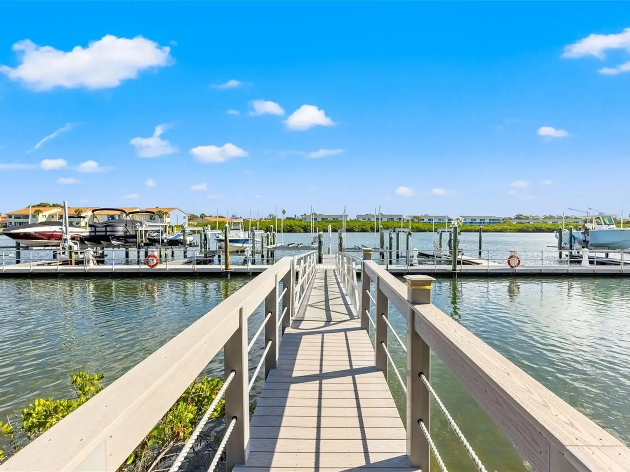 Live the coastal lifestyle in this beautifully appointed Indian Shores townhome—just steps from the beach and offering access to a private community dock. Perfect as a full-time residence or vacation retreat, this home combines luxury finishes with everyday convenience. This move-in-ready home in the desirable Waterside community also welcomes pets, including those over 101 pounds and puts you minutes from Clearwater, St. Pete, dining, shopping, and endless coastal activities. Boating enthusiasts will love the deep-water dock, with Boat Slip #17 (premier location, 50’ vessel capacity, 13,000 lb lift + jet ski lift) available for purchase. On land, relax by the heated community pool or entertain from your private outdoor spaces. Inside, enjoy an elevator to all levels, a gourmet kitchen with granite, gas cooking, custom cabinetry, wood-beam accents, and a striking 13-foot island that’s perfect for gatherings. The top-floor suite with private sun deck offers flexibility, while the primary retreat features a balcony, spa-like bath, and walk-in closet. With a 3-car garage, generous storage, and furnishings included. Whether you're lounging on the beach or enjoying an evening of fine dining, every amenity you desire is within reach.