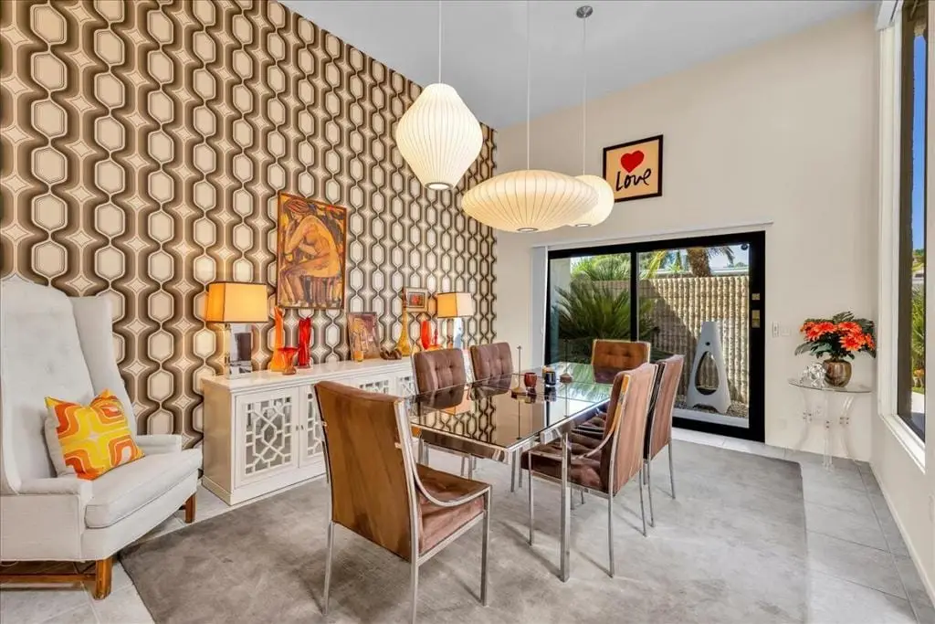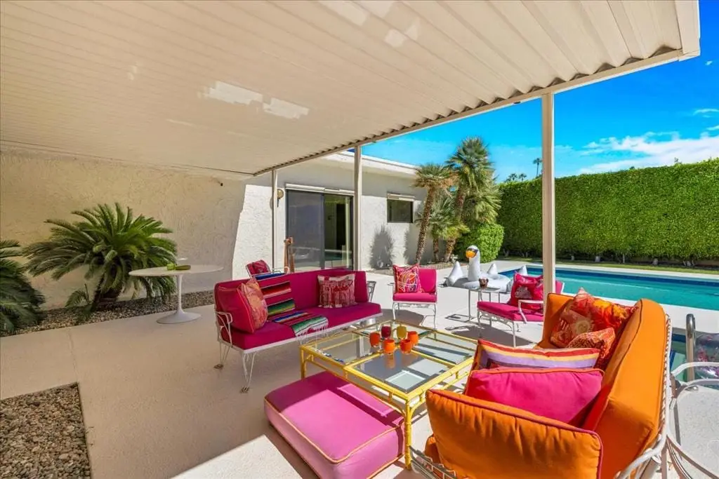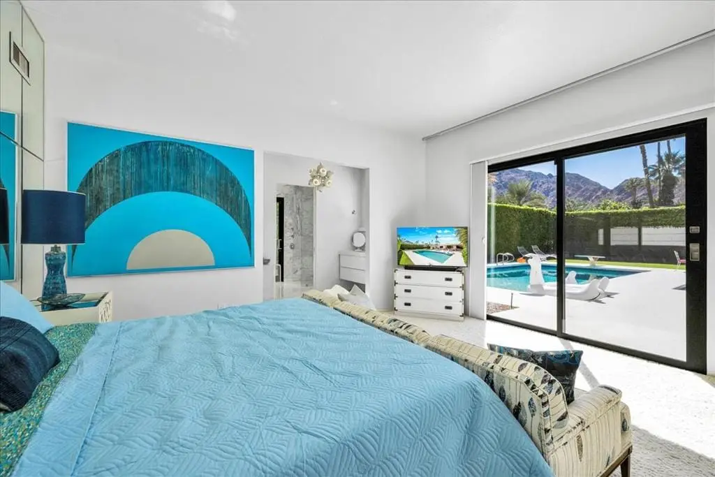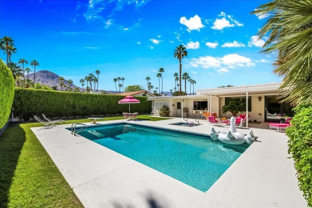 Discover refined desert living in this stunning 4-bedroom, 3-bath residence, perfectly positioned within the highly coveted enclave east of Eldorado in south Indian Wells, outside of any HOA. With dramatic mountain views and an enviable location, this home combines timeless elegance with the sophistication of today's modern luxury lifestyle, designed and built by Vicki McDermott, who is renowned for her gracious 1970s modernist homes. From the moment you enter, soaring ceilings set the tone. The sunken living room is chic and comfortable - great for entertaining or simply lounging after a game of tennis. The kitchen is updated with high-end appliances and modern drawer hardware, while retaining the charm of the original cabinetry facing. The primary suite is a serene retreat, offering direct access to the poolside patio, a spacious walk-in closet, and a spa-inspired bath with soaking tub and walk-in shower. You will wake up to spectacular mountain views every day. Three additional bedrooms provide ample space for guests, a private office, or a stylish media lounge - each features large closets which can fit king-size beds and still accommodate lounge seating or desks.Step outside to your private resort oasis, where a sparkling pool, spa and outdoor shower are framed by lush landscaping and high hedges for the utmost in privacy. The covered patio gives you ample room for al fresco dining. The seamless indoor-outdoor flow embodies the essence of desert luxury living.Additional highlights include a 3-car garage - store your golf cart or a fun vintage car in the 3rd space. Storage abounds, with thoughtfully designed cabinetry throughout the home. Extensive list of updates and upgrades available upon request.As an Indian Wells resident, you'll enjoy exclusive privileges, including golf and spa discounts at world-renowned resorts, adding to the unmatched lifestyle this home affords.The city of Indian Wells also allows rentals of 29 nights or more year-around and allows for a 7-night minimum, one week preceding and ending three days after conclusion of the annual BNP Paribas tennis tournament. Rarely available, this McDermott-built residence represents an exceptional opportunity to own in one of Indian Wells' most distinguished communities. Make an appointment to see it today!