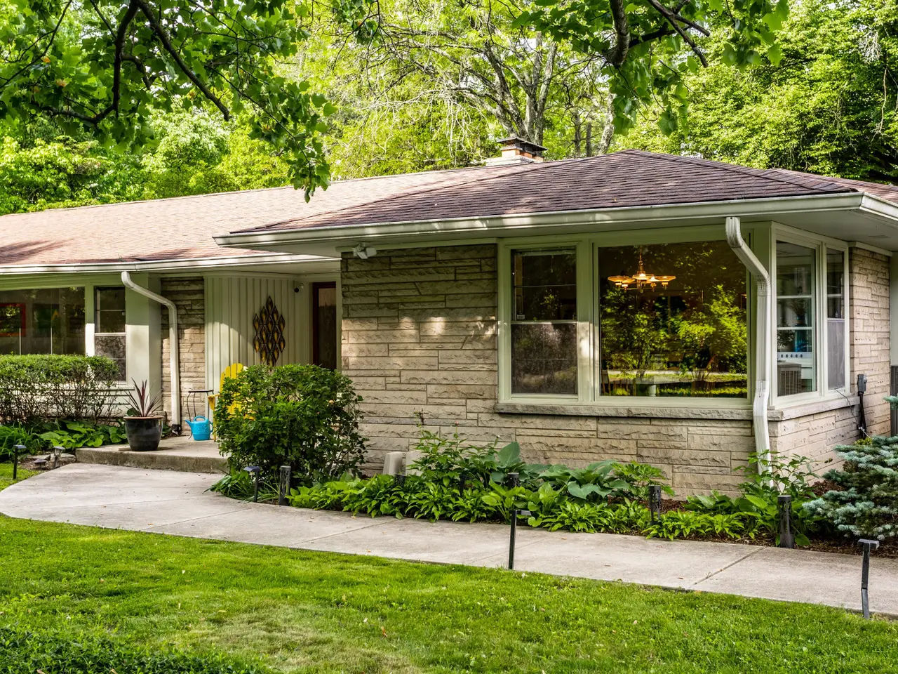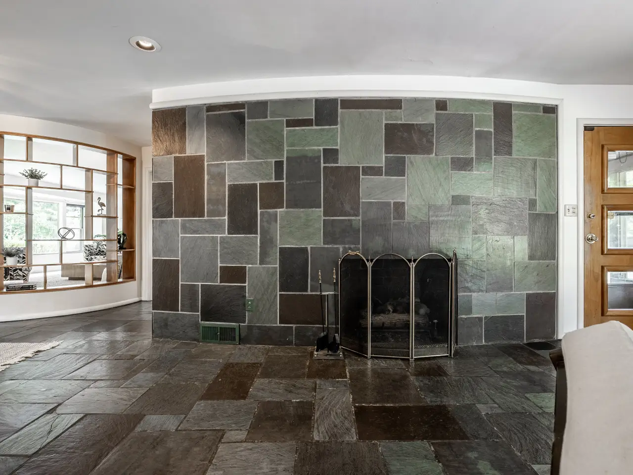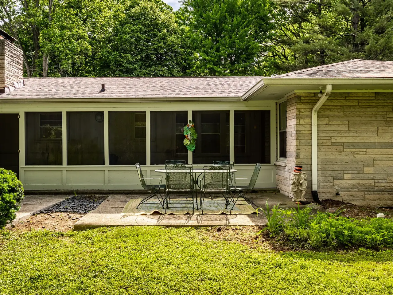 Mid-century modern masterpiece, unique design, fine craftmanship, open floor plan and quality construction featuring curved windows and walls, solid oak doors, marble window sills and slate entrance foyer, hallway and gas fireplace. Updated kitchen with stainless steel appliances, arched ceiling, hardwood maple floors and granite countertops - yet mid-century elements have been maintained with original sliding glass doors and Jamestown steel cabinets. Bathroom plumbing has been updated, but again the stylistic integrity of the house has been maintained with ceramic tile and solid wooden cabinets. Large spacious bedrooms with an abundance of windows and light. Full 3500 square foot basement, with a finished study and playroom. House lies on close to an acre, immediately across from Indianapolis jewel, Holliday Park, currently undergoing a $6,000,000 renovation to what will soon be a state-of-the-art playground. Centrally located, only 20 minutes from downtown, this house seeks buyers who appreciate fine craftmanship, excellence in home-building, architectural integrity and materials and style that are rarely found in contemporary homes: Indiana limestone, slate, solid oak and steel.
