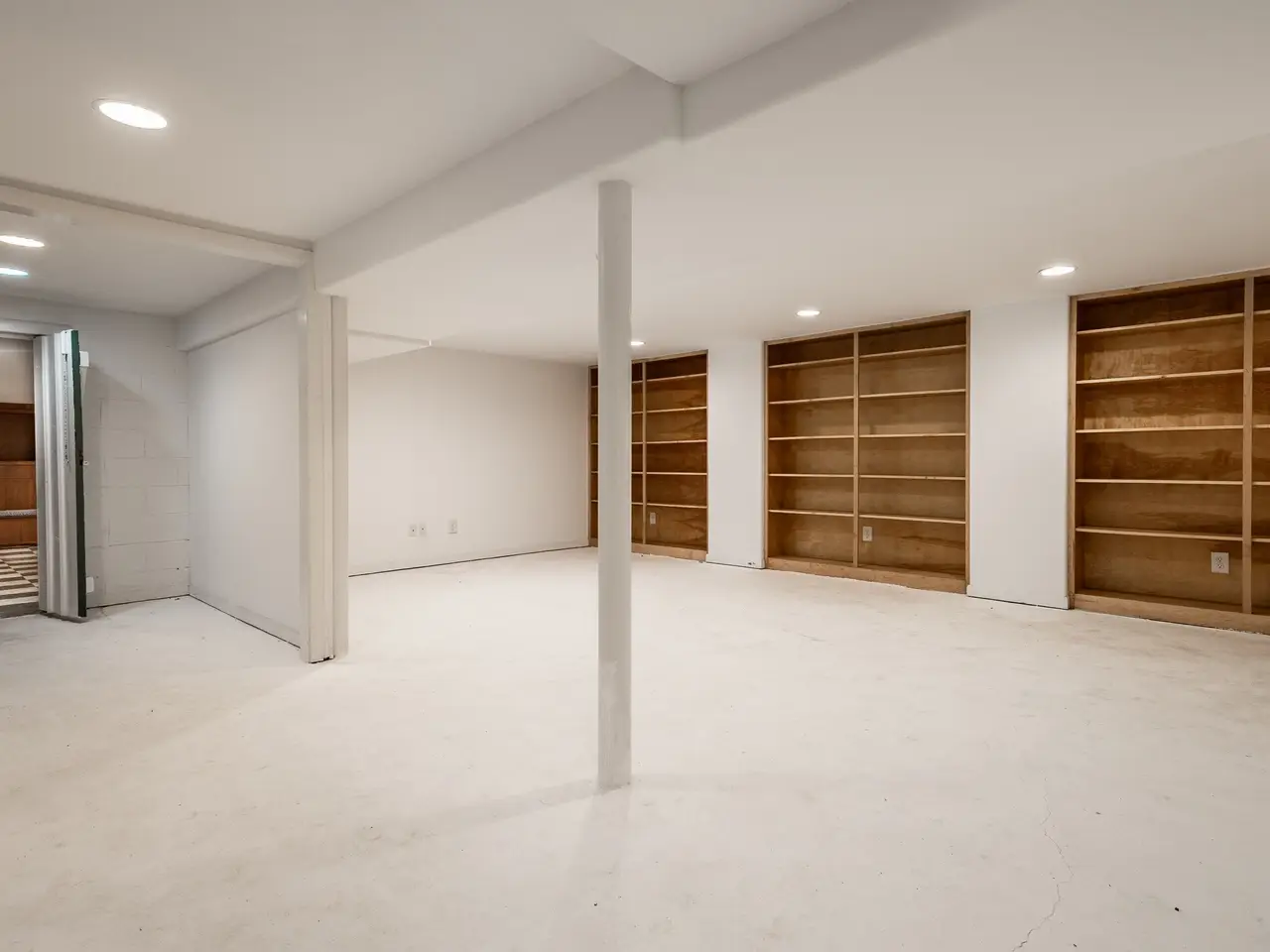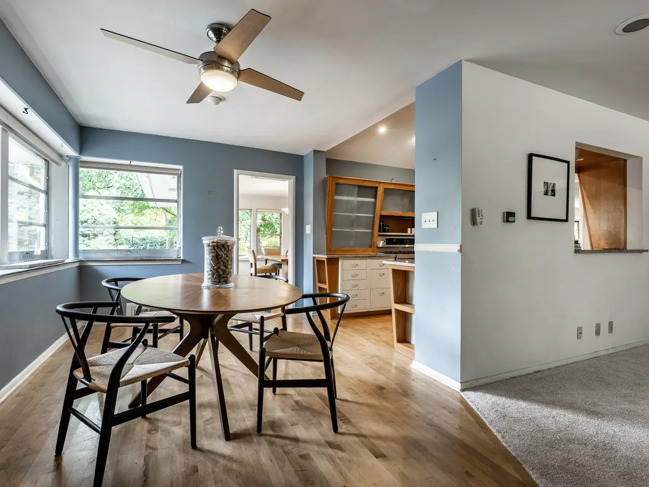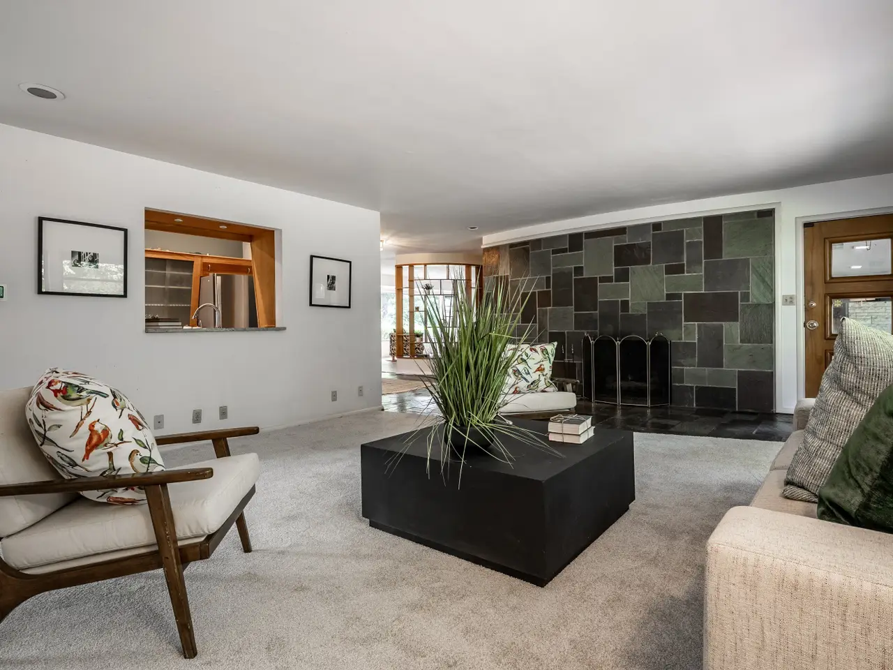 Mid-century modern masterpiece, unique design, fine craftmanship, open floor plan and quality construction featuring curved windows and walls, solid oak doors, marble window sills and slate entrance foyer, hallway and gas fireplace. Updated kitchen with stainless steel appliances, arched ceiling, hardwood maple floors and granite countertops - yet mid-century elements have been maintained with original sliding glass doors and Jamestown steel cabinets. Bathroom plumbing has been updated, but again the stylistic integrity of the house has been maintained with ceramic tile and solid wooden cabinets. Large spacious bedrooms with an abundance of windows and light. Full 3500 square foot basement, with a finished study and playroom. House lies on close to an acre, immediately across from Indianapolis jewel, Holliday Park, currently undergoing a $6,000,000 renovation to what will soon be a state-of-the-art playground. Centrally located, only 20 minutes from downtown, this house seeks buyers who appreciate fine craftmanship, excellence in home-building, architectural integrity and materials and style that are rarely found in contemporary homes: Indiana limestone, slate, solid oak and steel.