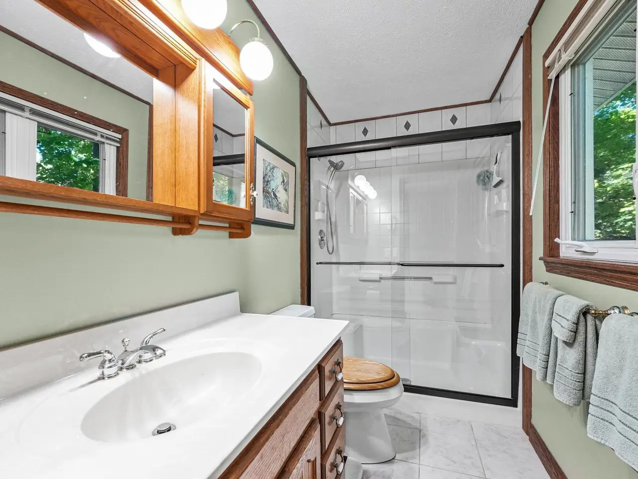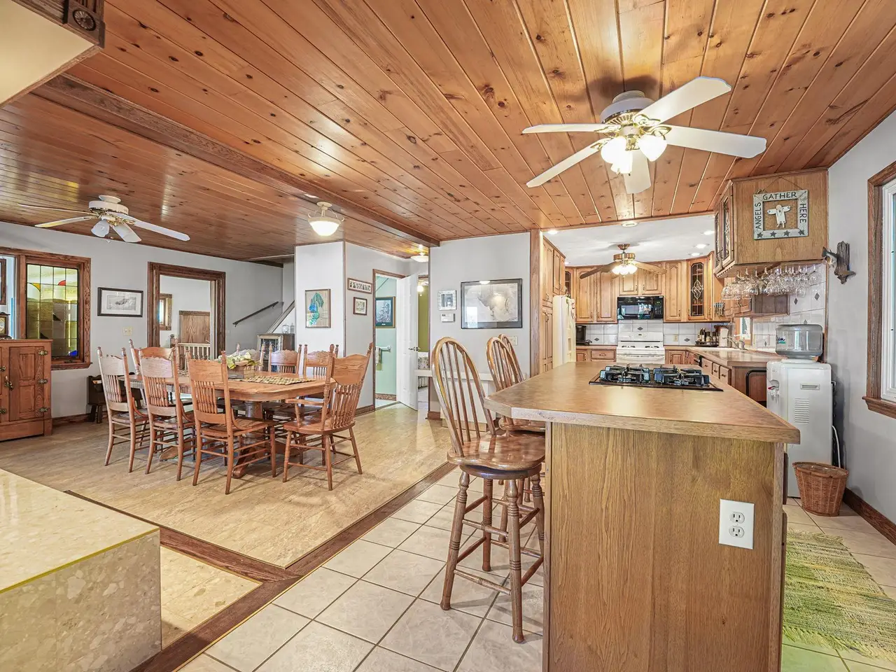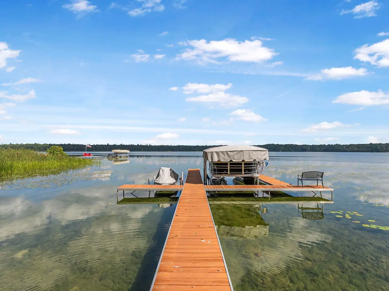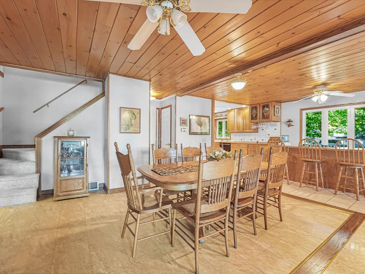 An entertainer's dream! This home boasting over 3,600 square feet with private, direct, level frontage on Green Lake has room for all of your family and friends. Gorgeous wood floors invite you into the warm living room with stunning lake views, and a two-sided fireplace to keep you warm during the cooler months. Open the double french doors to the expansive wrap-around deck to bring the outside in, and increase your spacious living area even further! On the other side of the fireplace is a large dining room with enough space for a huge table - plenty of room for everyone during the holidays. The kitchen is conveniently located a few steps away, and even has a second cooktop and island for when you have multiple chefs at work, or just want to be closer to your guests. The main floor is rounded out with a bedroom and ensuite bathroom, powder room, and fabulous sun porch. Upstairs you'll find a massive primary bedroom with the best lake views in the house, cozy gas fireplace, and attached office. Two additional bedrooms, a bathroom with jetted tub and shower, and laundry room make the second floor just as spacious as the first. Between the house and the garage are 2 finished and heated bonus rooms - One is a multi-purpose room great for crafts and games, and the other has closets galore and has been used as a bunk room for additional guests. You will never run out of storage space in this extra-deep attached and insulated 3-car garage! The tall doors allow storage for campers, boats, and seasonal toys, plus there is easy access via stairs to a large attic area. The brand new roof and newer furnace will ease your mind and save you money. Start planning for next summer now, and schedule your showing today!
