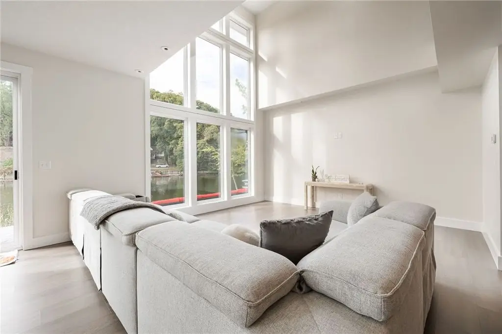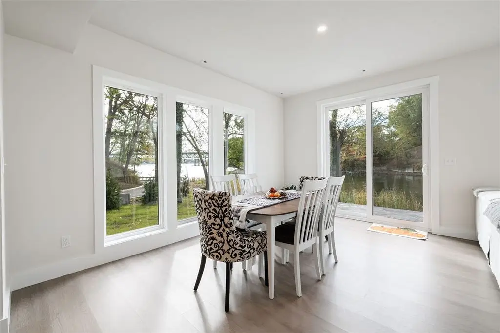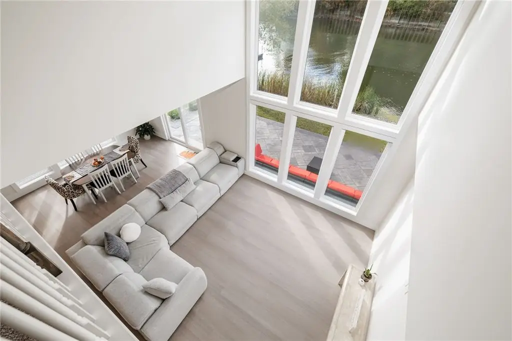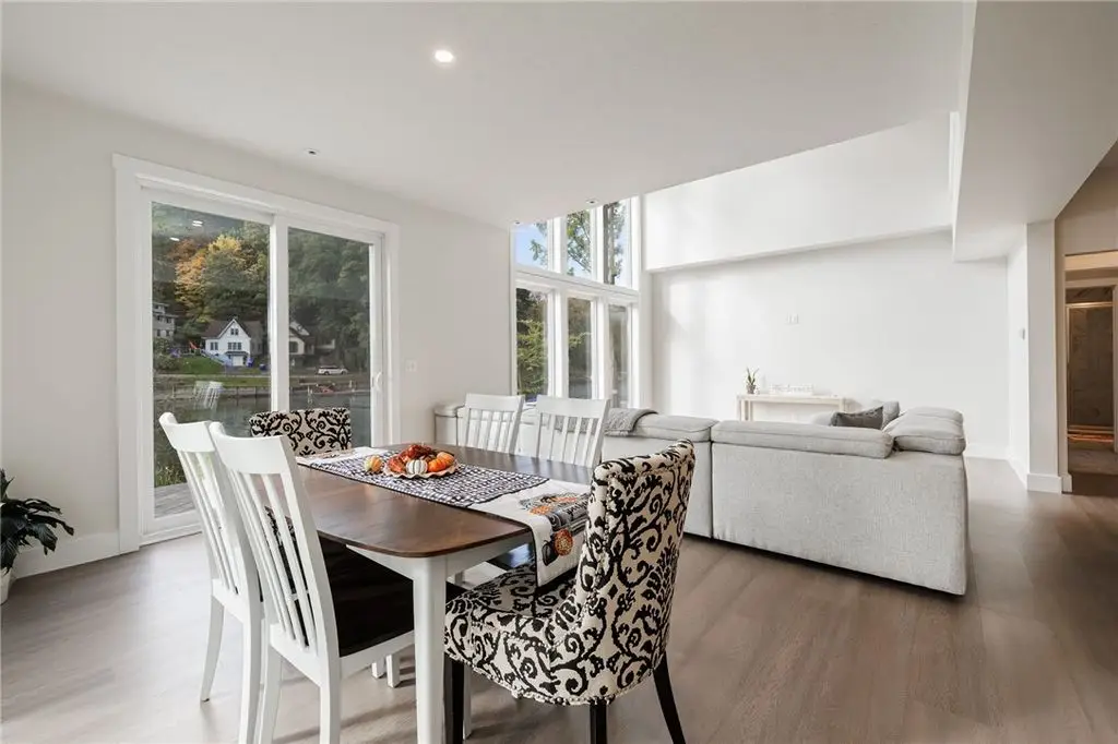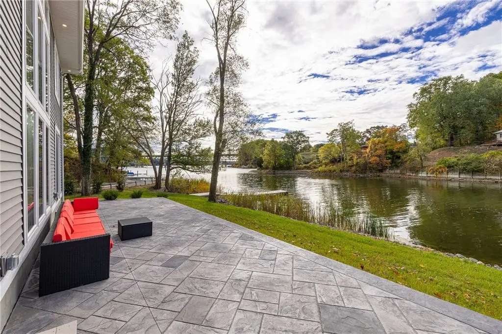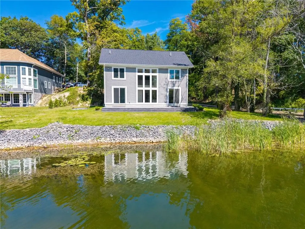 Embrace the ultimate waterfront lifestyle in this exceptional, newly constructed home on Irondequoit Bay, offering 110 feet of pristine, usable bay frontage and a private dock - your gateway to the water awaits. This 3,000+ sq. ft. residence is a masterpiece of modern design, with every detail carefully crafted for luxury living. Set on a private, plot with sweeping bay views, this stunning 4-bedroom, 5-bathroom home is the epitome of sophistication. The spacious interior is filled with natural light, thanks to an abundance of windows that highlight the gorgeous waterfront setting. Upon entering, you are greeted by a foyer that flows into the open-concept living and dining areas, perfect for both relaxation and entertaining. The gourmet kitchen is a chef's dream, featuring new stainless steel appliances, a 10'x5' island, custom granite counters, a push-button drawer microwave, a custom hood vent, double sink, and soft-close cabinetry - ideal for seamless everyday living and hosting guests. LED lighting throughout further enhances the home's bright and welcoming atmosphere. The first-floor primary suite is a serene retreat, complete with a luxurious en-suite bath offering a soaking tub, walk-in shower, and a generous walk-in closet. Upstairs, you'll find three additional well-sized bedrooms all with bathrooms and a thoughtfully designed laundry room. The attached garage is expansive, providing ample space for two vehicles along with additional room for storage or a workshop. The private, landscaped backyard features a stamped concrete patio, the perfect setting for relaxing and entertaining while enjoying stunning views of the water and surrounding nature. This home is not in a flood zone, providing peace of mind. Safety features include hard-wired smoke detectors and carbon monoxide monitors. The high-efficiency HVAC system ensures year-round comfort, no matter the season. Schedule your private showing today Open Thursday, October 23rd from 5:00-7:00pm and Saturday, October 25th from 12n to 1:30pm Delayed Showings Until October 21st at 9am. Delayed Negotiations until October 31st at 12:00pm.