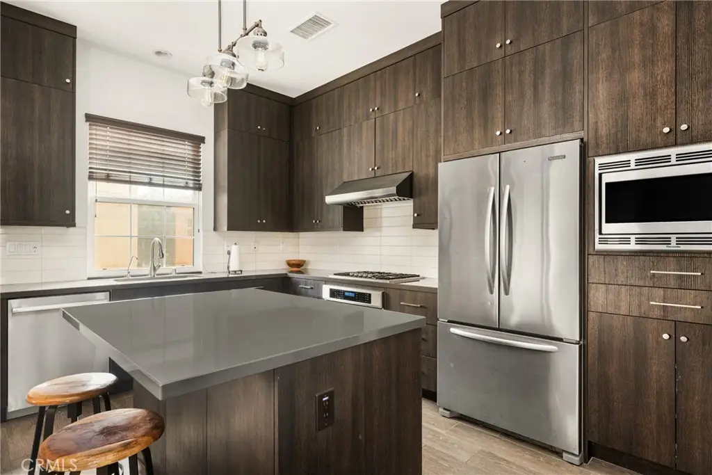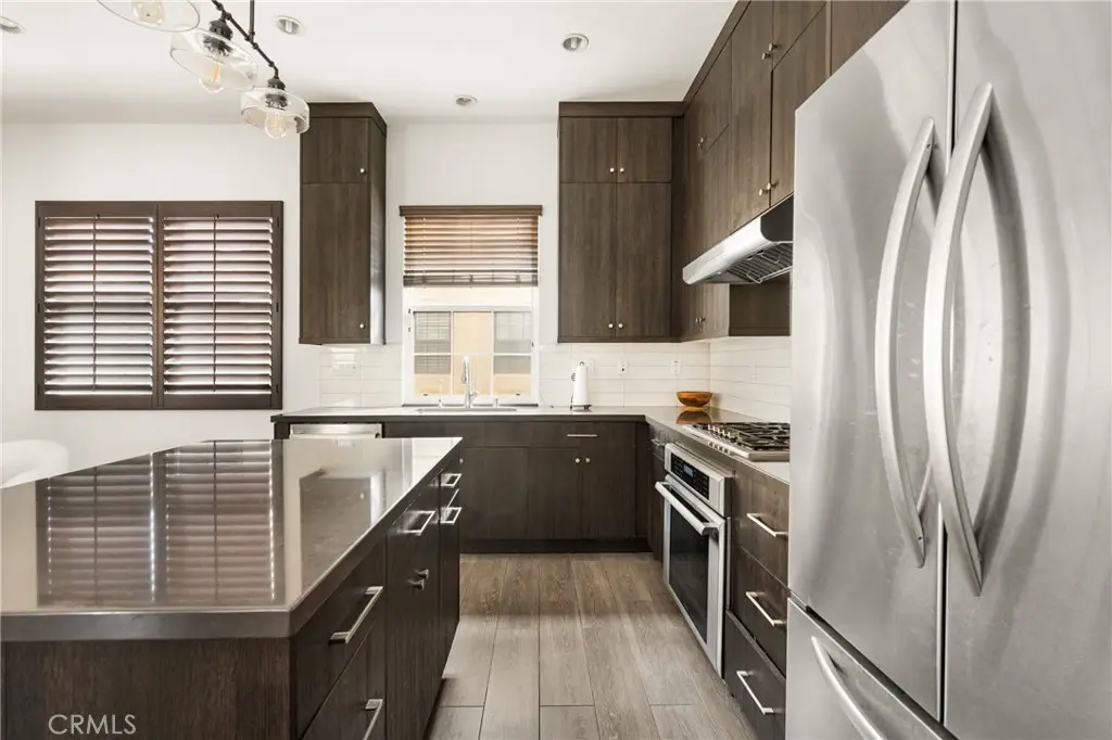 Contemporary Detached Home in Cypress Village with Flexible Floorplan & Designer Finishes -- Welcome to Strawberry Grove, a quiet and desirable street nestled in Irvine's coveted Cypress Village--a master-planned community known for its tree-lined streets, resort-style amenities, and unmatched lifestyle convenience. This beautifully upgraded, detached 3-bedroom, 3.5-bathroom home offers exceptional flexibility, privacy, and style. A rare first-floor bedroom suite includes a full en-suite bath and a fully permitted custom closet addition--perfect for guests, in-laws, or a private home office. With generous storage throughout and three full levels of living space, this home is thoughtfully designed for comfort and room to grow. Step into the main living area where wood-look tile flooring, soaring ceilings, and abundant natural light create an airy, welcoming ambiance. The bespoke designer kitchen is the heart of the home, boasting full-height walnut-stained cabinetry, quartz countertops, and a spacious island ideal for casual meals or entertaining. Enjoy seamless indoor-outdoor living with a private balcony just off the great room--perfect for soaking up the Orange County sunshine and taking in scenic neighborhood views. Upstairs, a dual-primary suite layout offers privacy and luxury, with both bedrooms featuring en-suite baths and expansive closets. Live just moments from Cypress Grove Park, scenic trails, sparkling pools, and top-tier amenities. This home is also located within the award-winning Irvine Unified School District and minutes from premier shopping, dining, and entertainment at the Irvine Spectrum Center. Stylish, flexible, and move-in ready--this is the Cypress Village lifestyle at its best.