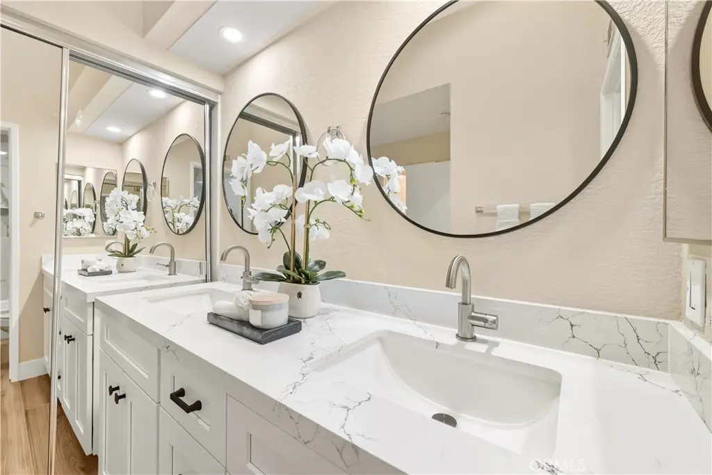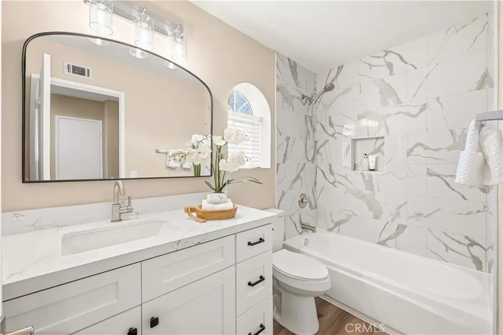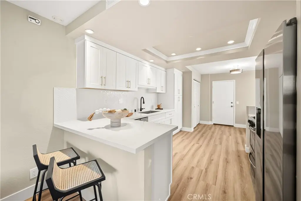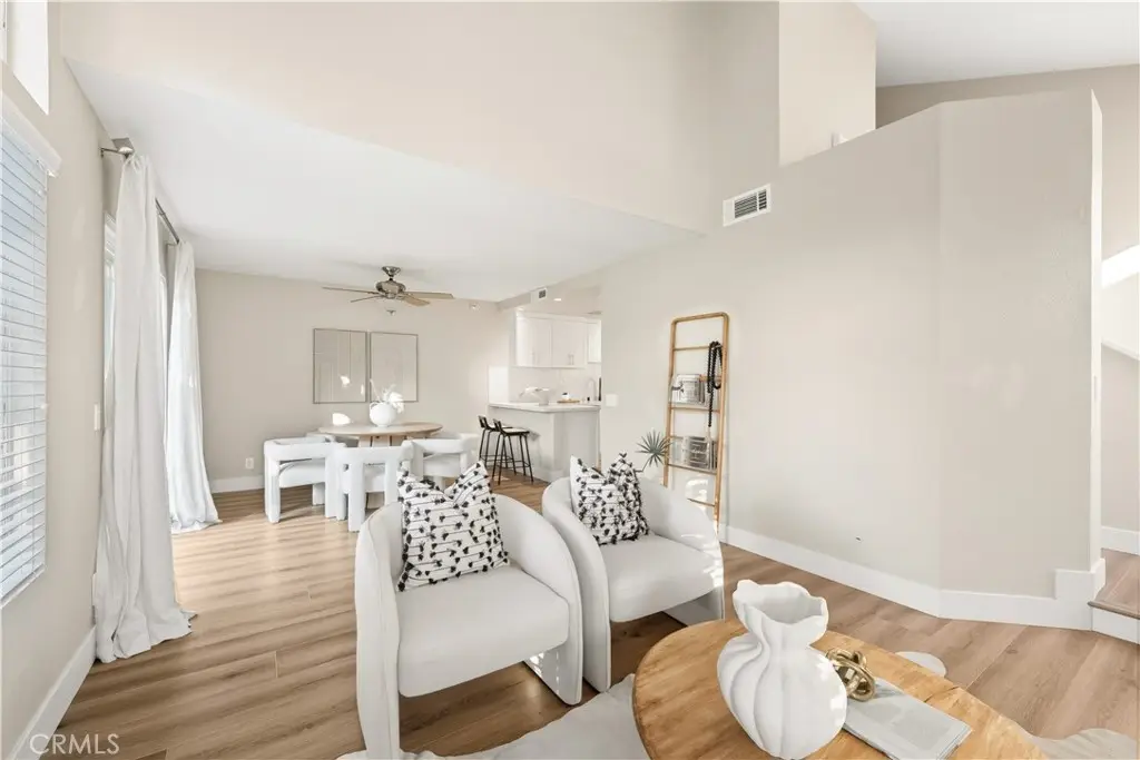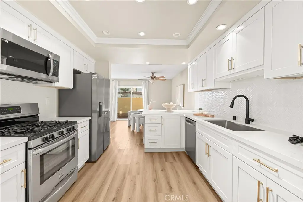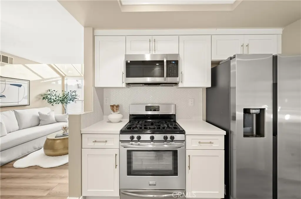 TWO CAR GARAGE AND TWO CAR DRIVEWAY! Very rare to find in Irvine in this price point! Experience the perfect mix of comfort and modern design in this bright and spacious 3-bedroom, 2.5-bath home. As an end-unit, it offers extra privacy and abundant natural light throughout. The brand-new kitchen is a showstopper--featuring white shaker cabinetry, a striking herringbone tile backsplash, quartz countertops, and stainless-steel appliances. It's open to the casual dining area as well as a flex space that can be additional dining, home office, or additional seating area. The open-concept living area impresses with vaulted ceilings, a cozy fireplace, and seamless flow to a private patio ideal for relaxing or entertaining. Upstairs, each bedroom feels spacious and bright, with vaulted ceilings and updated bathrooms featuring modern tile and finishes. The primary suite offers dual closets and a skylit bathroom retreat. Enjoy resort-style community amenities including pools, spas, and beautifully landscaped greenbelts--all close to shopping, dining, and convenient freeway access. Located within the award-winning University High School district, this home is a special gem-come see it before it's gone!