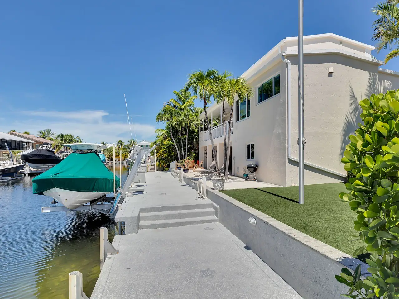 An unparalleled waterfront sanctuary in the prestigious and private beachside of Port Antigua, where luxury meets the laid-back charm of the Florida Keys. This impeccably upgraded home offers the perfect blend of refined coastal living and island serenity — ideal for those seeking an exceptional full-time residence or a serene island escape. Three bedrooms, three full bathrooms plus extra half bath; private dockage + exclusive beach access; one-car garage + ground-level extra room. Every detail of this home has been thoughtfully designed for comfort and style — from the elegant interiors to the seamless flow of indoor-outdoor living. Outside, enjoy world-class boating with direct access to the bay and ocean. And when you're ready to relax, the private white sand beach is just moments away.