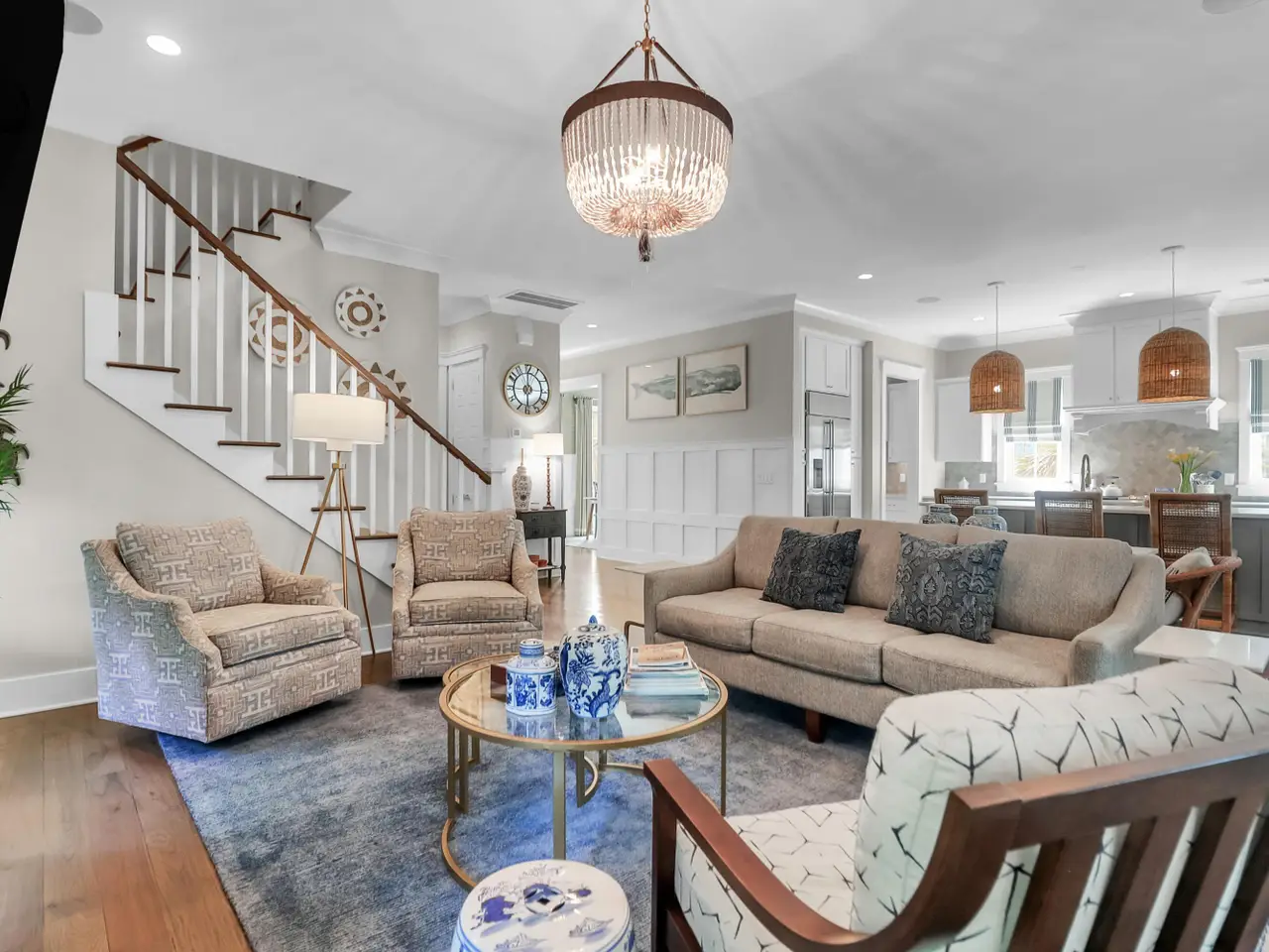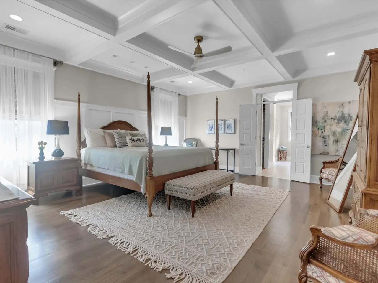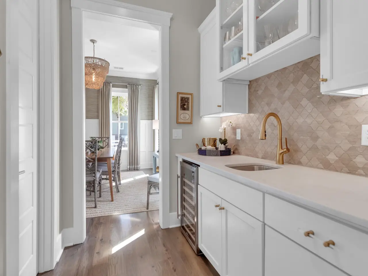 Coastal Luxury with Pool & Beach Access This 5-bedroom, 4.5-bath home combines refined design with thoughtful functionality, just steps from the sand. The open floor plan showcases rich hickory flooring, abundant natural light, and attention to detail throughout. At the heart of the home is the spacious kitchen with marble counters, abundant cabinetry, gas range, a butler's pantry with sink and beverage station that seamlessly flows into the family and dining areas. The first floor also features a private study/office, a separate dining room, and one of two expansive primary suites--ideal for multigenerational living. Upstairs, you'll find the second primary suite plus additional bedrooms for family and guests. The 2nd level also features an open area for gathering,a laundry room withplentiful storage and laundry sink. All of the guest bedrooms feature walk-in closets. One of these has a private bath the other two share a nicely done hall bath. The upstairs primary offers a handsome coffered ceiling, double walk-in closets and a well appointed bath. Then, just step outside where outdoor living takes center stage with a fabulous oasis featuring an in-ground pool, covered patio with a built-in grill, refrigerator, dining bar, tv, and an additional patio area with a true wood-burning fireplacperfect for entertaining year-round. The oversized detached garage includes finished space above, offering endless possibilities for an office, gym, playroom, or studio. All this, with convenient beach access (just through the back gate and less than a block away), makes this property the ultimate blend of elegance, comfort, and coastal convenience.