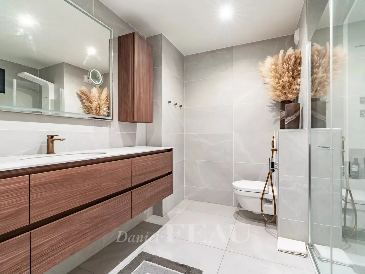 This beautifully appointed apartment is on the 5th floor of the "Issy Coeur de ville" residence dating from 2023 and located just next to the shops and the transport networks. Offering 212.39 sqm of living space as defined by the Carrez Law, it includes a double living/reception room, an equipped kitchen with dining facilities opening onto a 22 sqm terrace, six bedrooms including a master suite opening onto two terraces, a bathroom, a shower room, a dressing room and a utility room. With a parking space and a cellar. A further parking space and a lock-up garage may be acquired for a further 25000€ each. The Italian-designer furnishings may also be part of the sale.