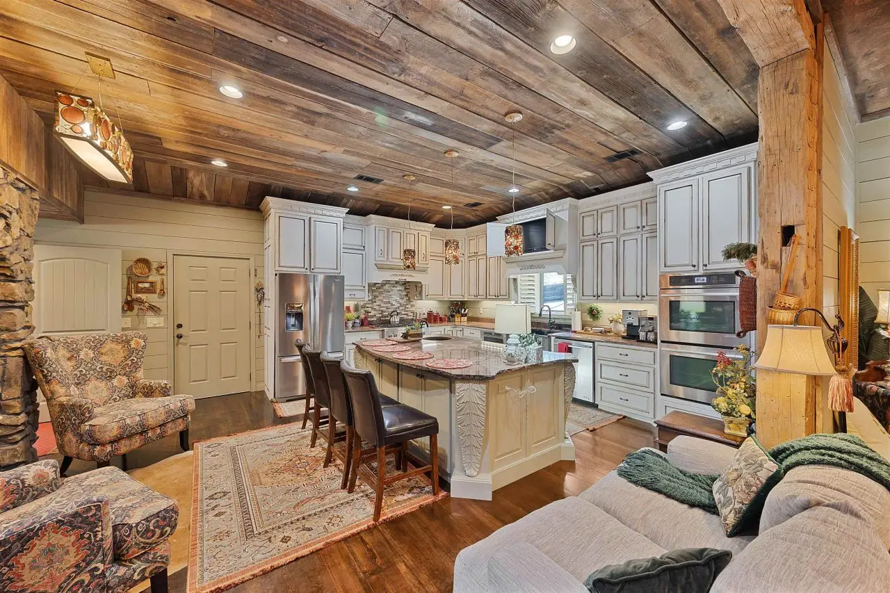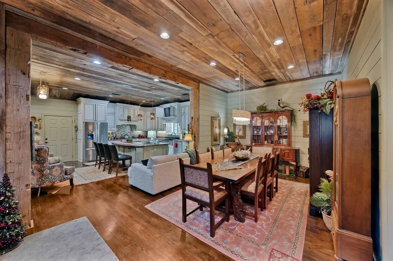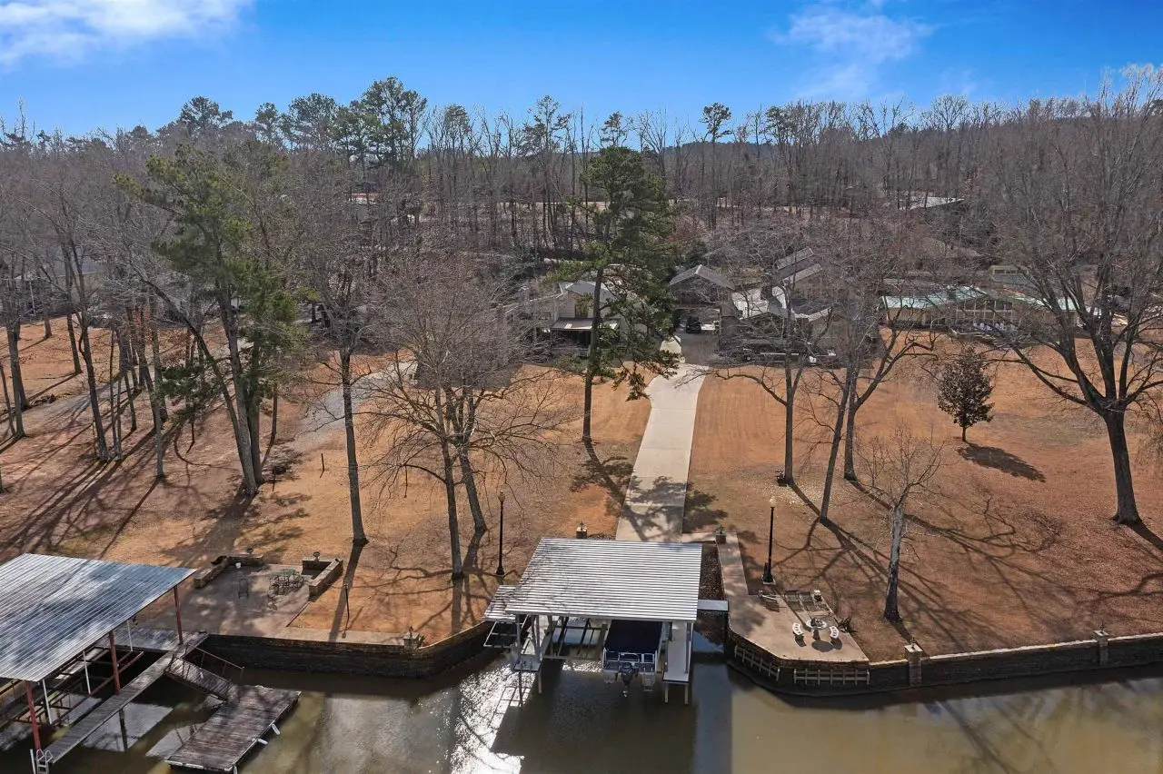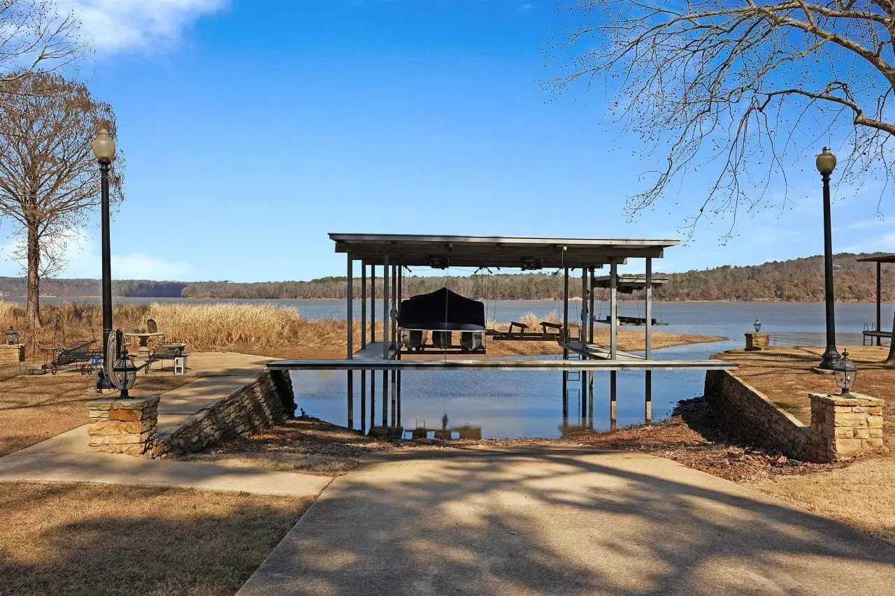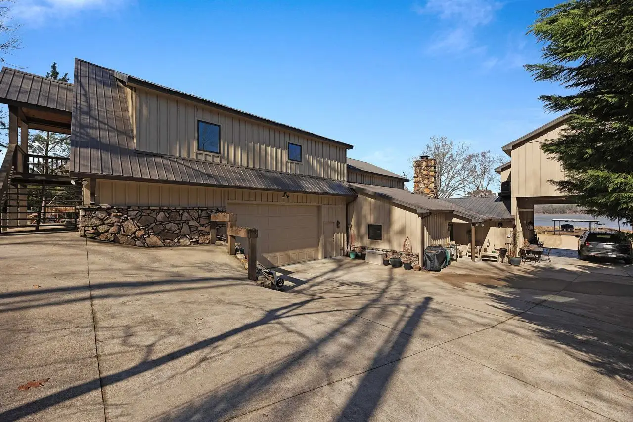 Spectacular Waterfront Estate. Discover Luxury & functionality in this stunning Waterfront Home, offering 8 Bdrms, 7.5 Ba across an expansive 6000 sq ft of living space. Designed for both comfort and entertainment. This property is a rare find w/ breathtaking views throughout. Primary & second Bdrm conveniently located on the main level. Spacious Kitchen, w/a Large Island, Jenn-Air Gas cooktop, double oven, built in microwave, custom Cabinetry, double sided Fireplace connecting the Kitchen & Living Rm. Beautiful Dinning area. Heart of Pine flooring & reclaimed barn board ceiling adding warmth & Character. Upper Level, Guest Suite 1, offers 2 Bdrm, 2 Ba Living & breakfast area & a Private entrance. Suite 2, offers 2 Bdrm, 1 Ba. Living & Kitchenette. Also a screened Balcony W/Lake views.. Suite 3, offers 2 Bdrm, 1 Ba. Living & Kitchenette. Oversized garage w/full Bath perfect for kids coming off the Lake. Washer/Dryer, & Storm Shelter. Covered Boat Dock W/3 Lifts, private Boat Ramp.
