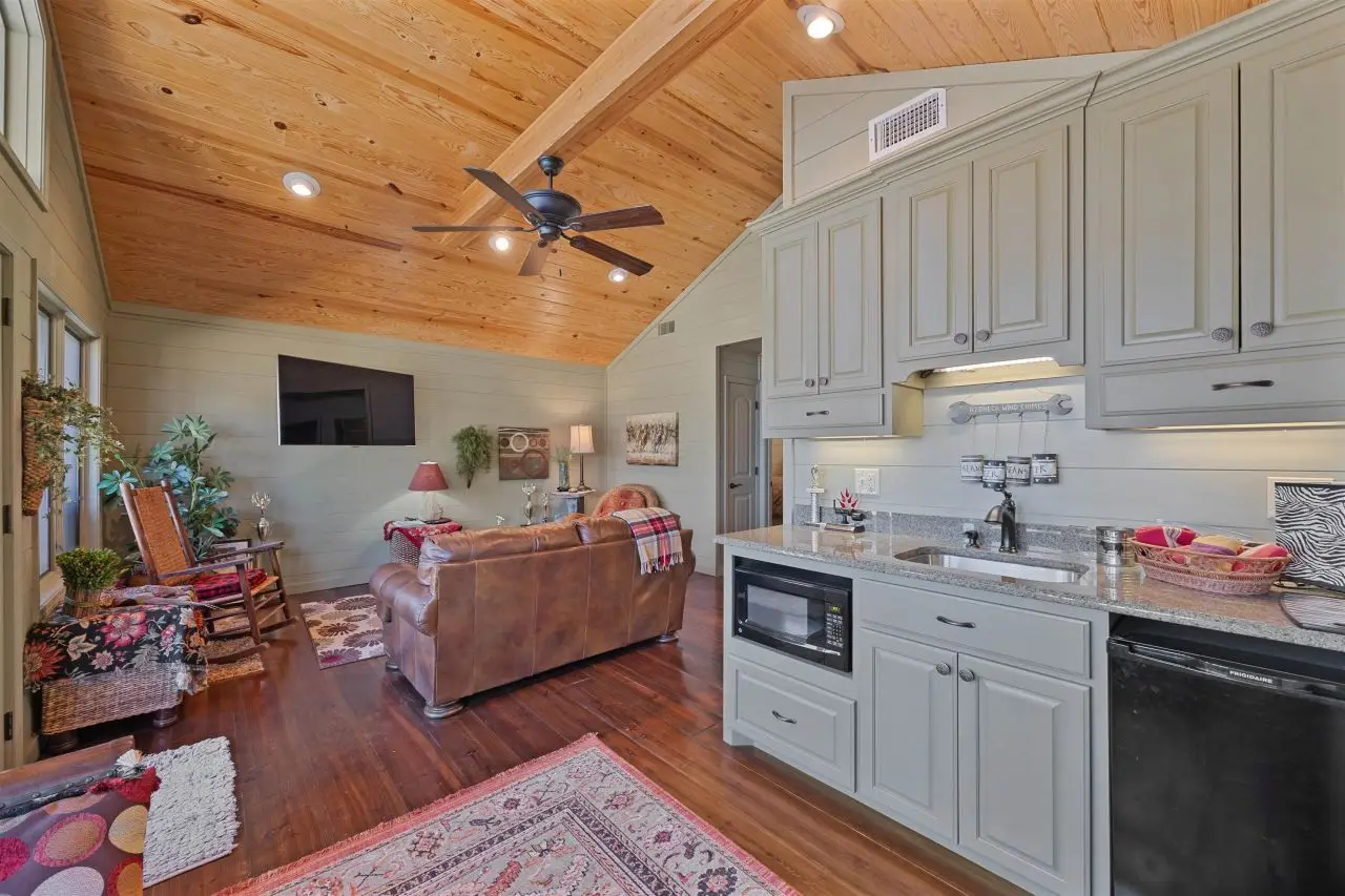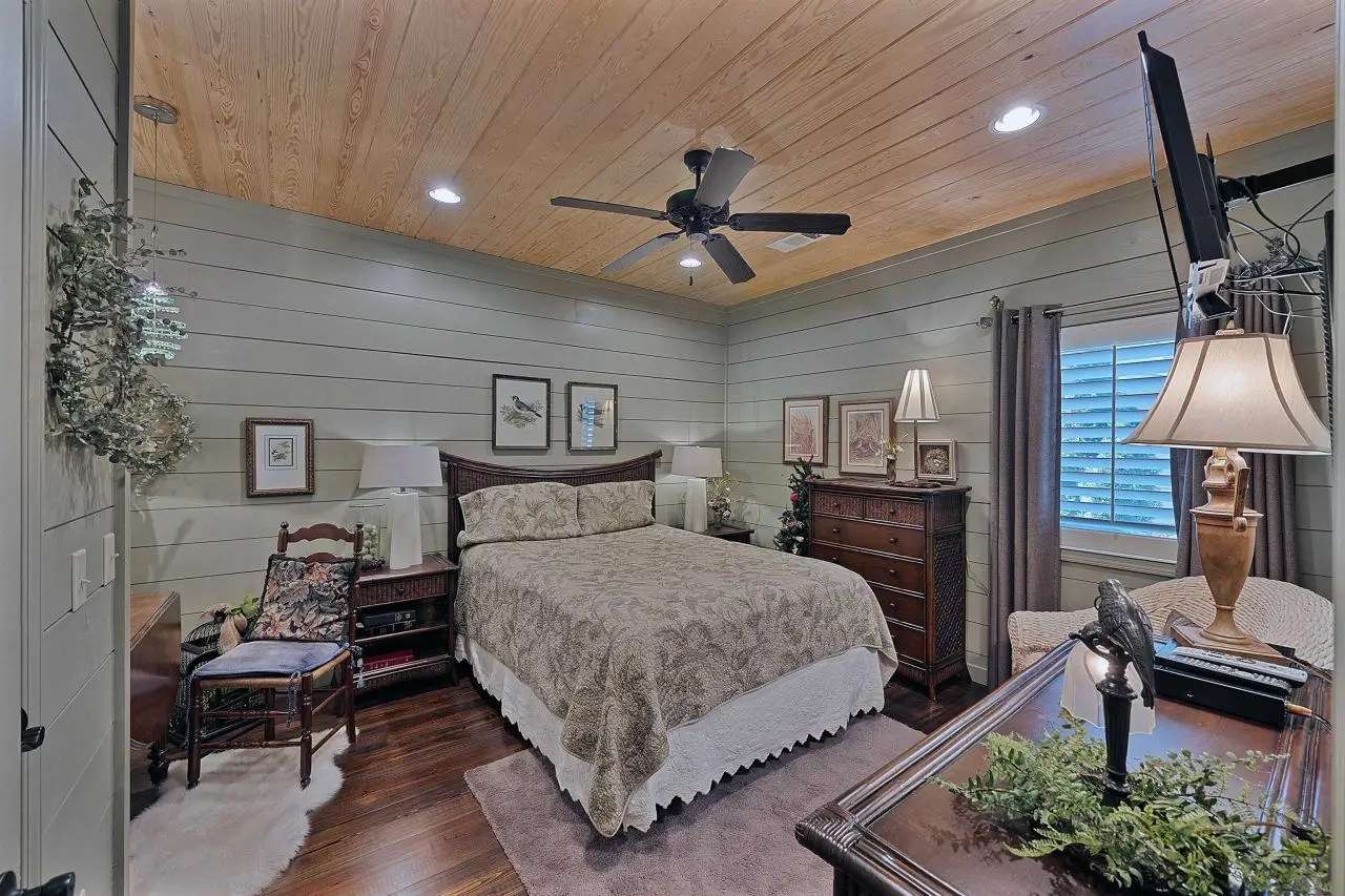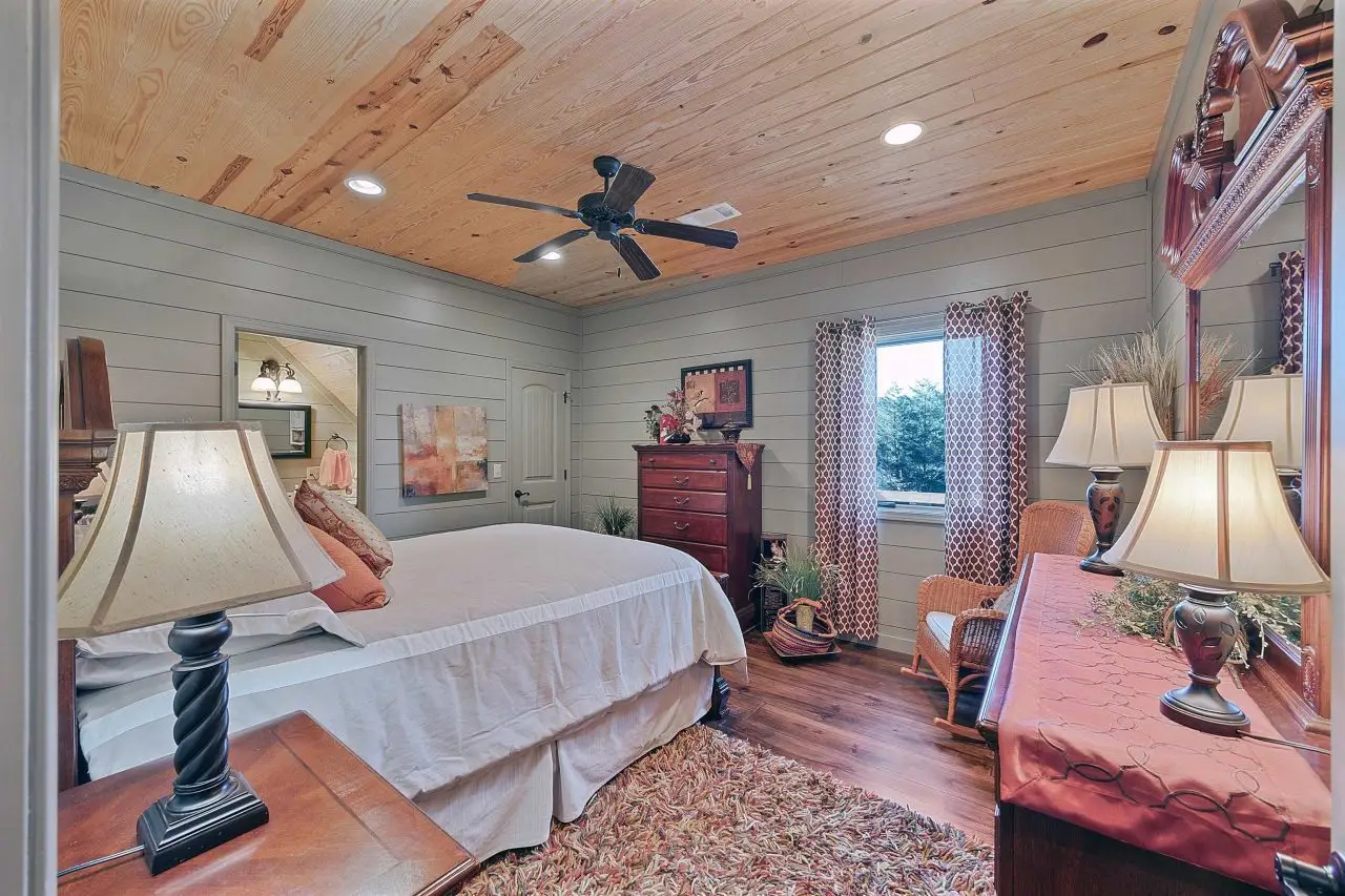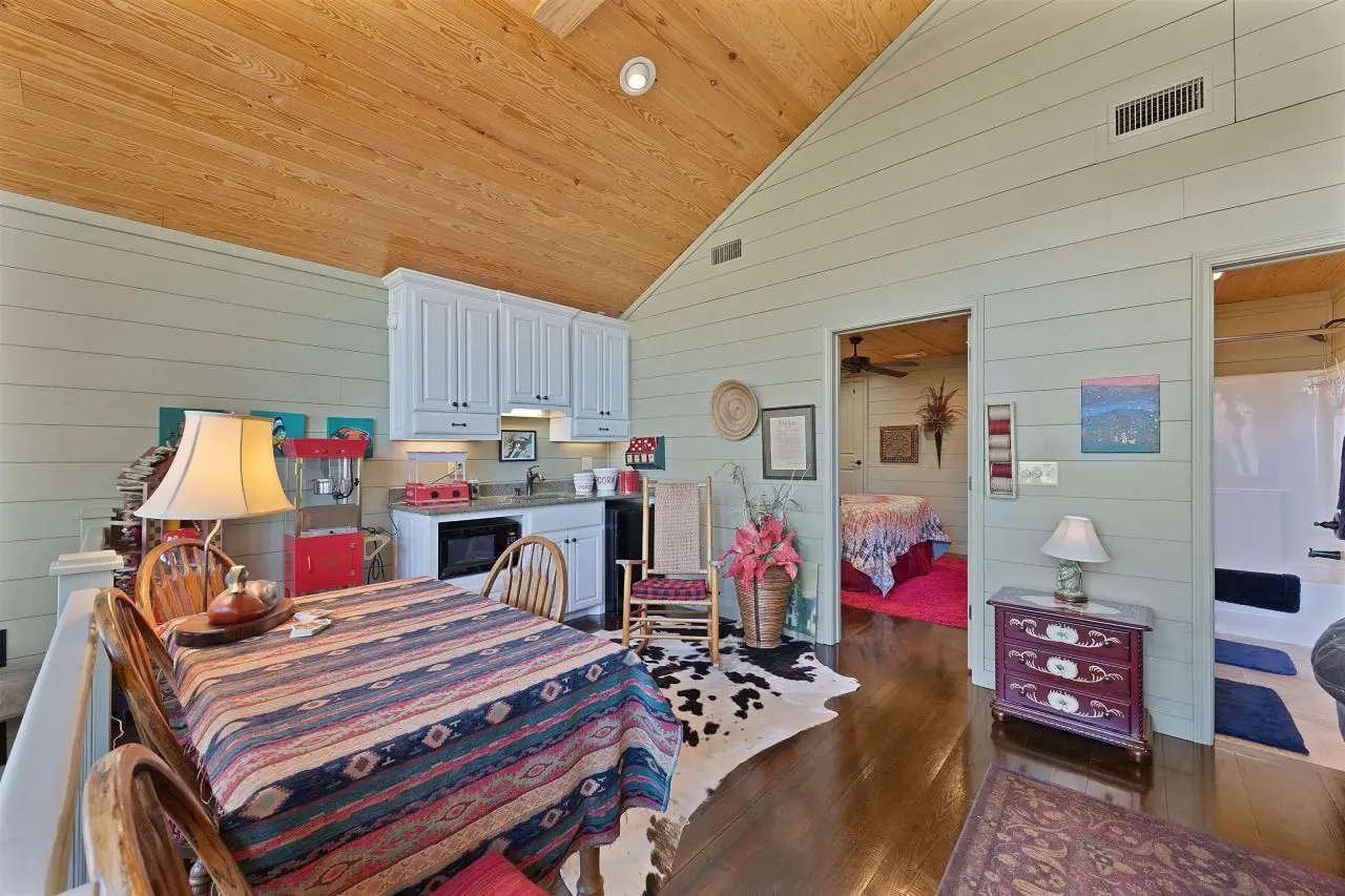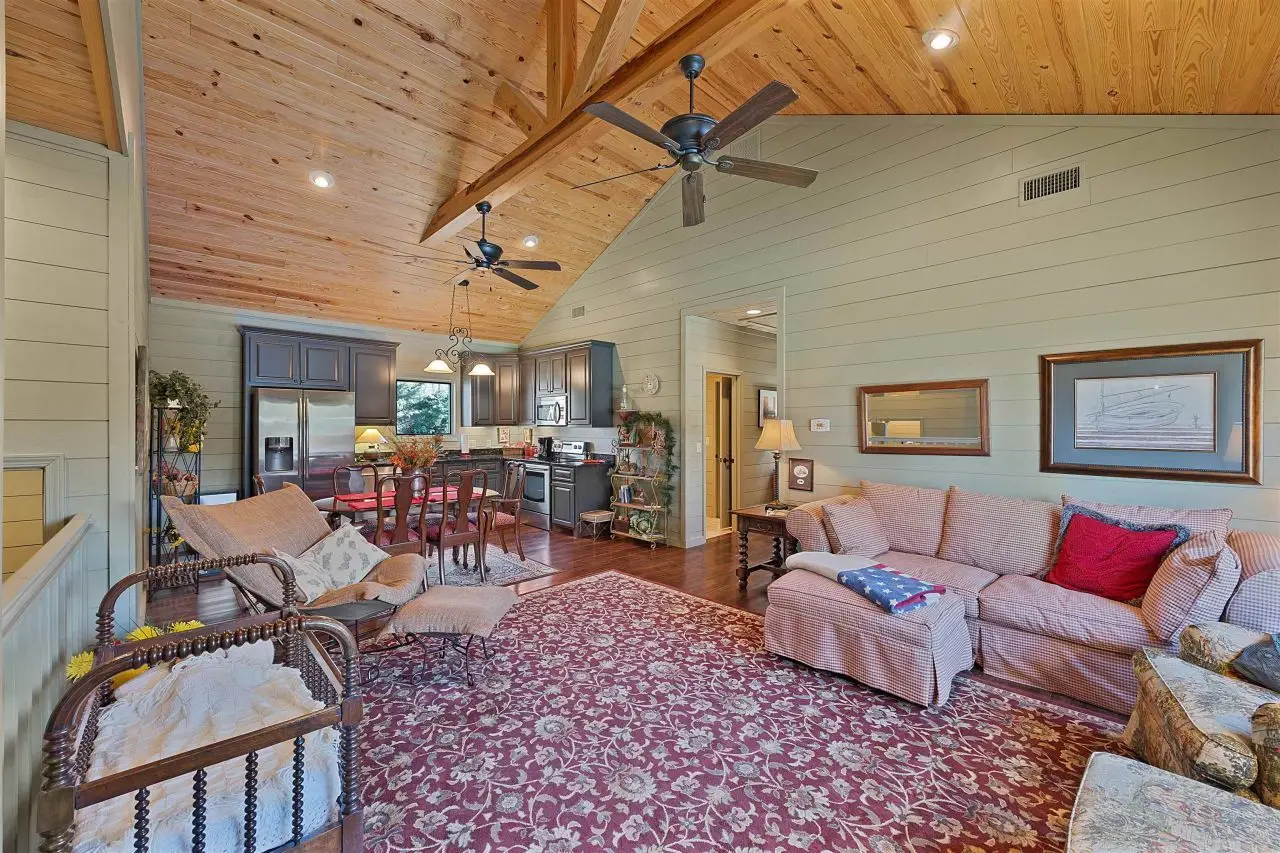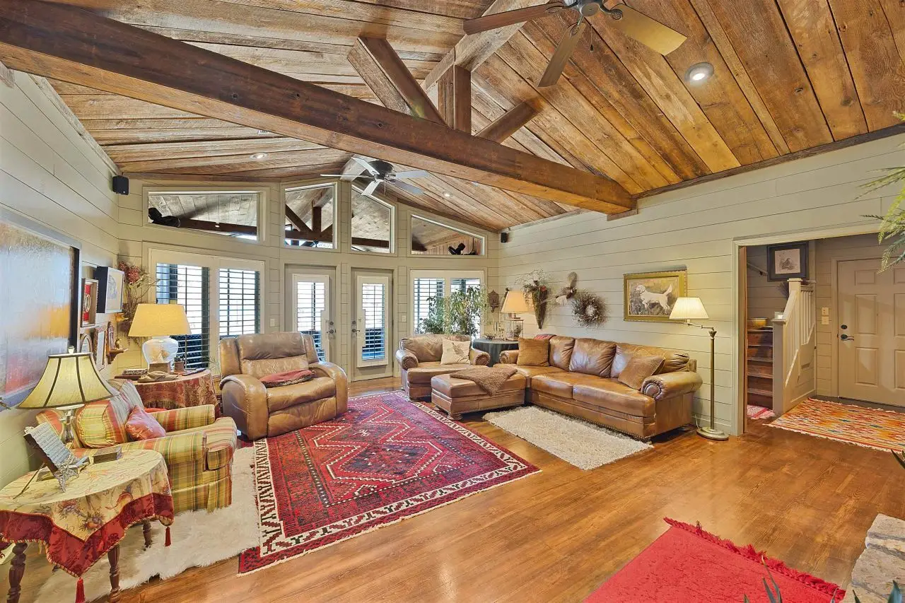 Spectacular Waterfront Estate. Discover Luxury & functionality in this stunning Waterfront Home, offering 8 Bdrms, 7.5 Ba across an expansive 6000 sq ft of living space. Designed for both comfort and entertainment. This property is a rare find w/ breathtaking views throughout. Primary & second Bdrm conveniently located on the main level. Spacious Kitchen, w/a Large Island, Jenn-Air Gas cooktop, double oven, built in microwave, custom Cabinetry, double sided Fireplace connecting the Kitchen & Living Rm. Beautiful Dinning area. Heart of Pine flooring & reclaimed barn board ceiling adding warmth & Character. Upper Level, Guest Suite 1, offers 2 Bdrm, 2 Ba Living & breakfast area & a Private entrance. Suite 2, offers 2 Bdrm, 1 Ba. Living & Kitchenette. Also a screened Balcony W/Lake views.. Suite 3, offers 2 Bdrm, 1 Ba. Living & Kitchenette. Oversized garage w/full Bath perfect for kids coming off the Lake. Washer/Dryer, & Storm Shelter. Covered Boat Dock W/3 Lifts, private Boat Ramp.