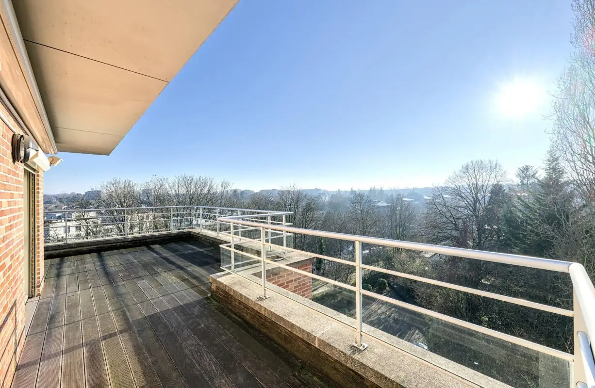 In the Bois de la Cambre district, near the Hippodrome de Boitsfort, in a beautiful high-class building, superb three-façade penthouse of approximately 260 square meters plus 90 square meter terrace. Bright reception rooms, super-equipped kitchen, four bedrooms, three bathrooms. Optional cellar and two garage parking spaces. (2 X 50.000 €). PEB E+.