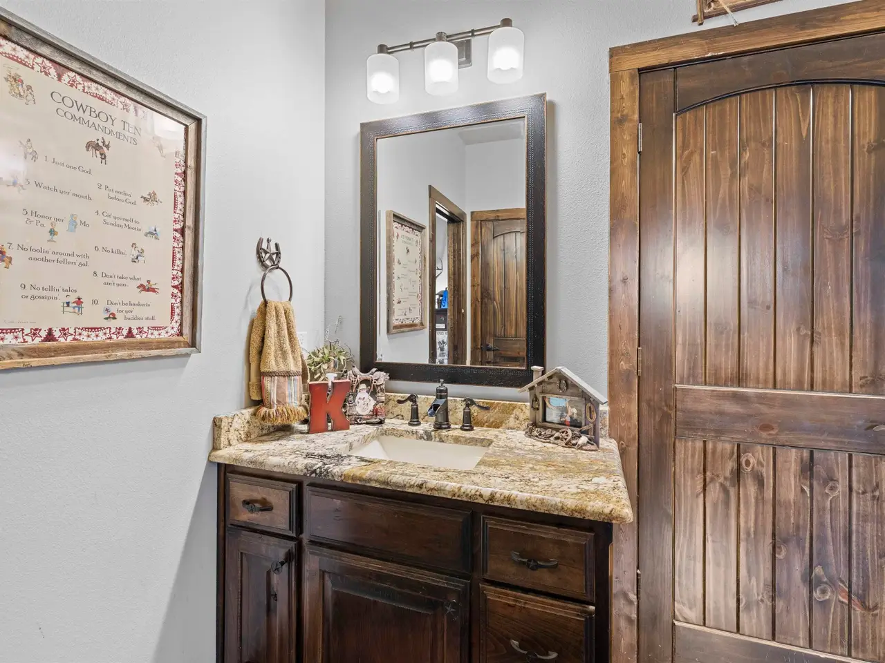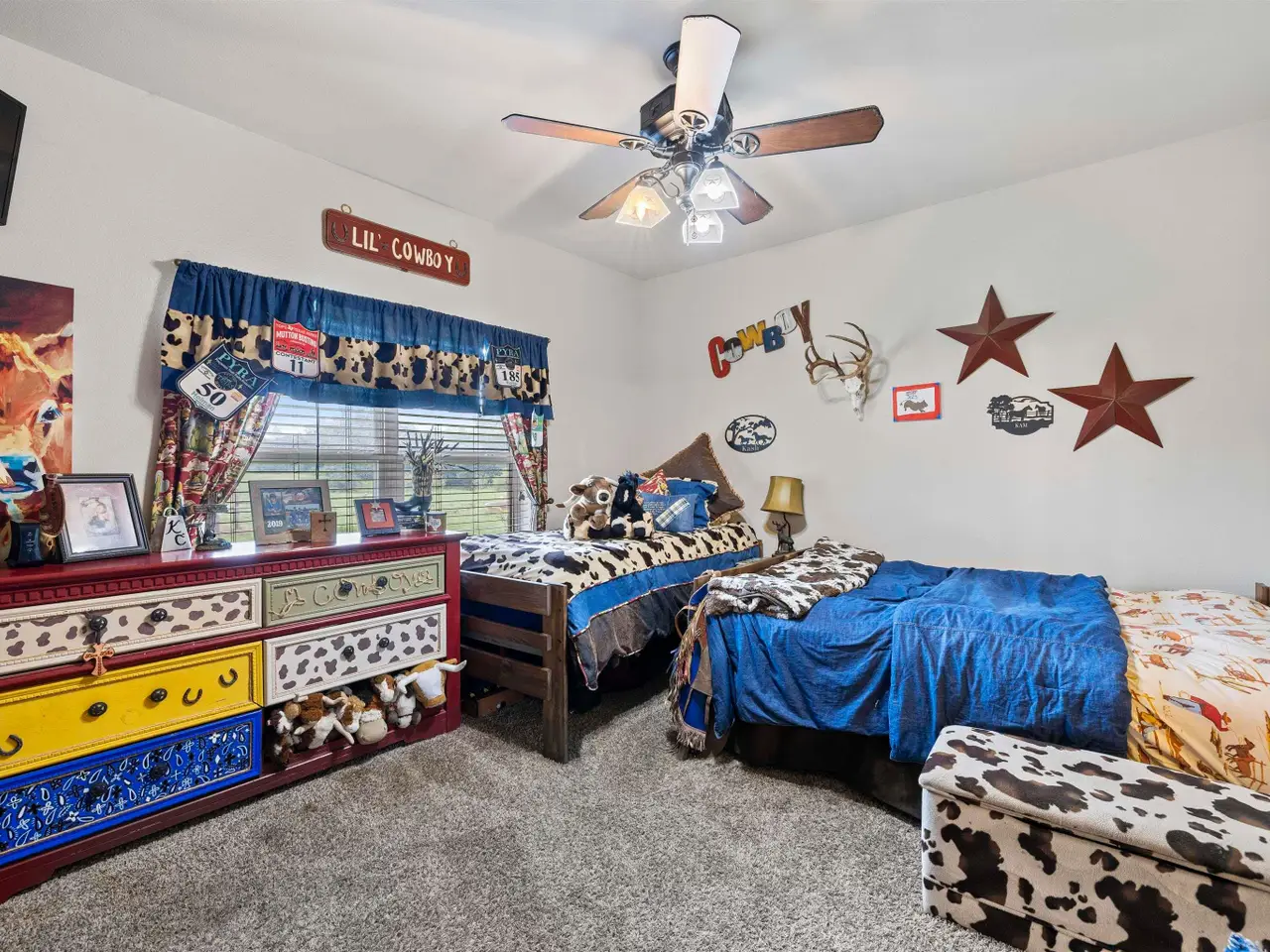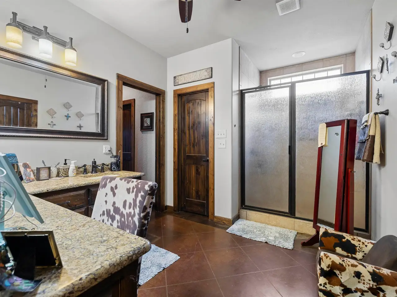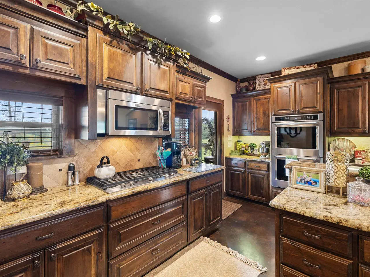 Nestled on an expansive 81.77 acres, this stunning custom ranch-style home features an inviting open concept layout with a split bedroom arrangement offering the perfect blend of elegance and rustic charm with 3 spacious bedrooms, 2 bathrooms, a dining room and an office. You'll find beautiful stone accents throughout including a cozy wood-burning and gas fireplace that serves as a focal point in the living area. Stained concrete floors flow seamlessly throughout providing a modern yet warm feel. The spacious kitchen is equipped with stainless steel appliances, including an icemaker, double ovens, and a convenient coffee bar. The mudroom and dedicated laundry area offer a convenient entry point from just behind the kitchen, providing an ideal space for transitioning from outdoors. The master suite includes 2 separate walk-in closets and a generous sized bathroom space with an oversized shower. The second and third bedrooms are joined with a jack-in-jill bath including separate vanities for better functionality. Outside, the vast acreage is a true paradise, featuring 3 stocked ponds that invite relaxation and recreation. The landscape features improved pasture with high quality grasses including 4 separate grazing pastures with cross fencing and small traps with cover. A small creek gracefully runs through the landscape, adding to its natural beauty and providing additional water for the livestock. A well-equipped barn and lighted roping arena cater to equestrian enthusiasts offering 3 stalls, working pens and a wide alley. The barn also has an RV hookup for your guests and a well nearby that provides water for your animals. This place is horse and cattle ready! Located just 6.5 miles from town, this ranch-style home combines tranquility with accessibility, making it a perfect retreat for those seeking a serene lifestyle. Don't miss out on this incredible opportunity to live the ranch life you've always dreamed of!