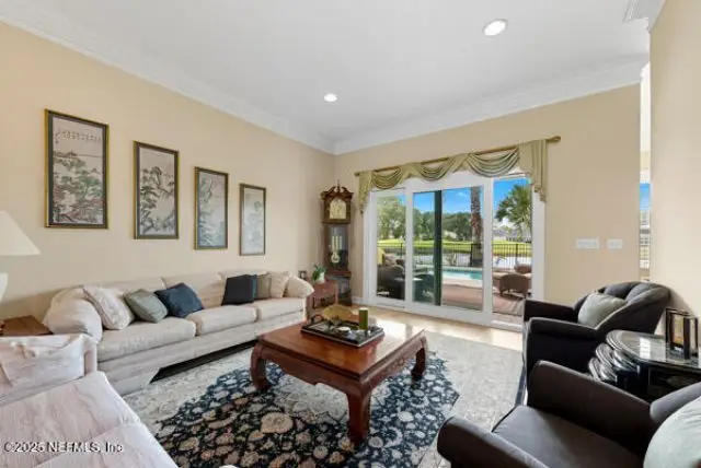 Welcome to your dream home! This exceptional luxury home combines timeless elegance with modern sophistication, comfort and style. The property is perfectly situated to capture the fabulous views of the sparkling pool, lake and golf course. From the moment you step in through the beautiful entry, you are welcomed with expansive windows, tray ceilings, gorgeous flooring and a light filled layout that seemlessly blends the indoor and outdoor living spaces. The well appointed kitchen is a chef's delight! Gorgeous off white cabinetry with premium finishes that provide style and function. Escape to your grand master suite that also provides beautiful, serene views and privacy. Enjoy entertaining in this thoughtfully designed home. The side entry 3 car garage provides ample storage and space. This home offers luxury, location and the well sought after Florida lifestyle. New Kitchen 2020, New Windows 2023, Refinished Pool 2025, New Exterior Paint 2025, New Renovated Pool Bath 2025.