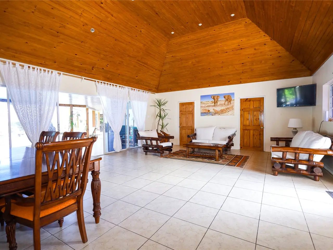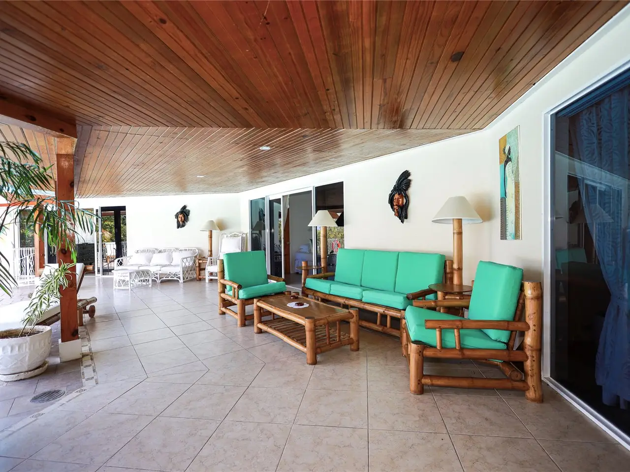 Sevilla Retreat, a captivating property moments from Runaway Bay, offering unparalleled luxury and investment potential as well as its own private beach. The estate comprises two detached buildings centered around a large oval pool. The primary villa features four en-suite bedrooms, each opening onto the pool area, creating an inviting and cohesive design. A separate building includes a ground-floor apartment with two en-suite bedrooms, currently serving as staff quarters. This unit offers immense potential for upgrade and additional income. Above, a spacious, open-plan studio apartment provides guests or renters a self-contained retreat, complete with a kitchenette, shower room, and private patio with beautiful views.