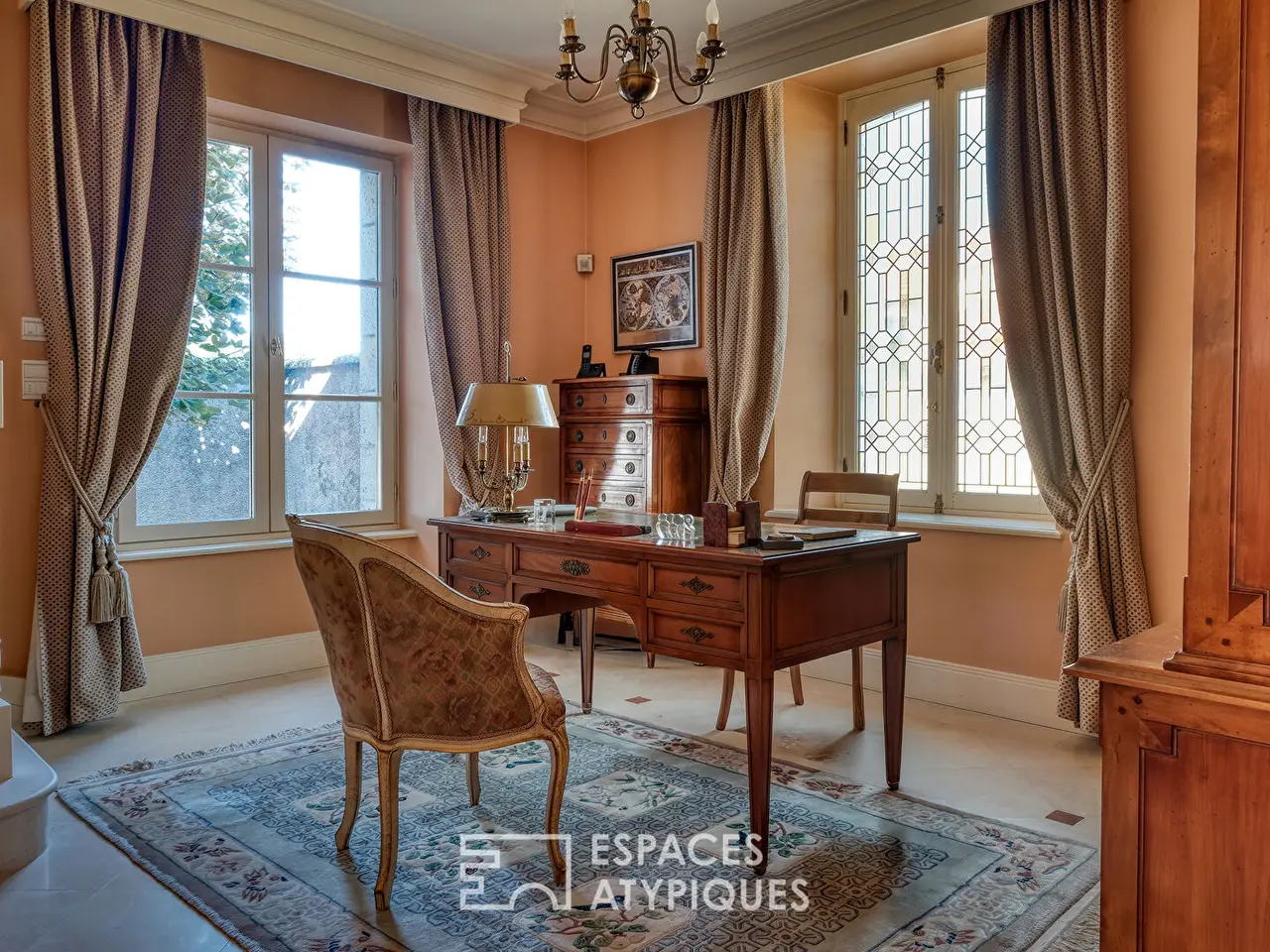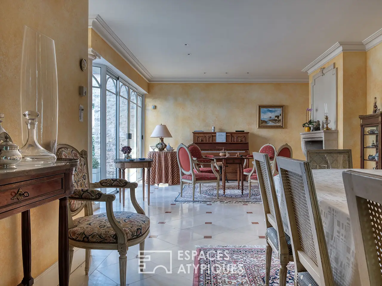 In the heart of Janville, just 90 km from Paris and 45 km from Chartres, this bourgeois residence reveals a timeless architecture and extraordinary volumes. Developing nearly 570 sqm, it is set on a walled plot of 1,759 sqm, sheltered from view, where privacy and elegance combine.Behind its discreet street facade, the house offers a succession of refined reception areas. From the entrance, an office opens the visit, followed by a generously sized master suite, composed of a bedroom, a dressing room and a bathroom with bathtub and shower. The independent kitchen, fitted and equipped, opens onto a glass-roofed winter garden in Art Deco style, bathed in light. The dining room, the living room and the billiard room complete this level, creating a friendly and elegant atmosphere. Several additional rooms, such as an archive room, a linen room, and an office, enhance the property's versatility and potential.Upstairs, two landings lead to three bedrooms, each with its own dressing room, as well as a bathroom and a shower room. The comfortable and well-organized sleeping areas offer quality family living and ideal accommodation capacity.The full basement is one of the major assets of this residence: of exceptional size, it includes a cellar and lends itself to numerous uses, such as parking for several vehicles. A rare space, worthy of the greatest character houses.Outside, the charm operates through a patio decorated with a terrace and a swimming pool, inviting relaxation in complete privacy. Two barns and a pool house complete the ensemble, offering multiple development possibilities.Perfectly maintained, this extraordinary property seduces with the character of its period features, its majestic glass roof, its varied reception areas, and the rarity of its volumes. An exceptional house, ideal for a large family residence or a professional reception project.45 km from Chartres41 km from Orleans5 min from the A10Amenities in the villageENERGY CLASS: CCLIMATE CLASS: CEstimated average annual energy expenditure for standard use, based on 2021 energy prices: between EUR6,660 and EUR9,060 per year.Contact: Margaux: 06 65 72 08 79Commercial agent (EI) RSAC: 920 708 369 ORLEANSREF. 00764EAOAdditional information* 10 rooms* 4 bedrooms* 2 bathrooms* 1 bathroom* 1 floor in the building* Outdoor space : 1759 SQM* Parking : 10 parking spaces* Property tax : 5 882 €Energy Performance CertificateEPC : 141 kWhEP/m2.year* A 450GHG : 29 kgeqCO2/m2.year* A 80Agency fees* Fees charged to the purchaser : 45 240 €MediatorMediation Franchise-Consommateurswww.mediation-franchise.com29 Boulevard de Courcelles 75008 ParisInformation on the risks to which this property is exposed is available on the Geohazards website : www.georisques.gouv.fr