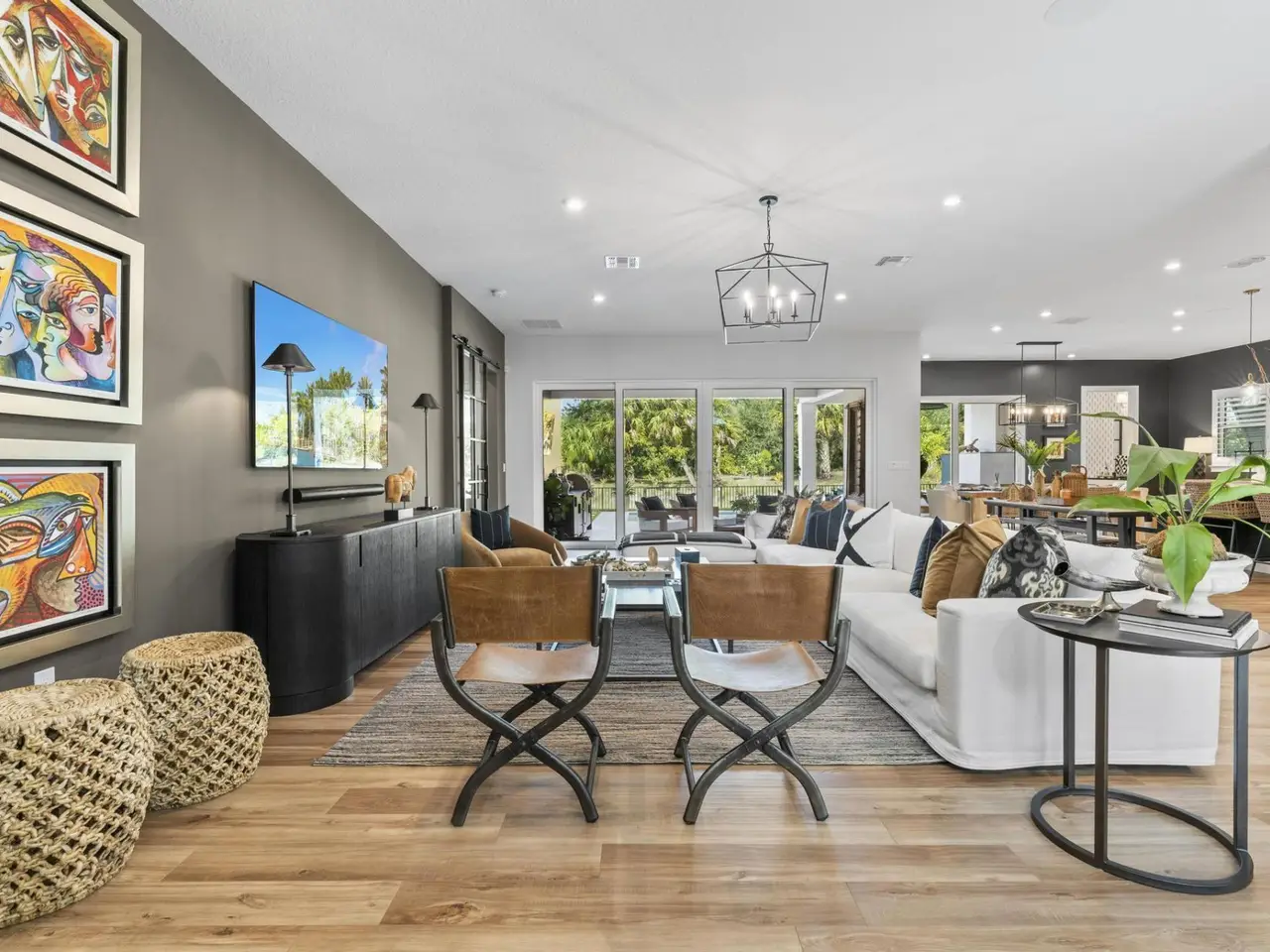 Exclusive Langford Landing Enclave! 40FT BOAT SLIP! Perfectly oriented with preserve vista, impossibly private in feel. Soaring 2-story foyer entry. Open concept, with distinct spaces, including living, dining, and dedicated office. Designer custom kitchen, with large island, and butler pantry. Downstairs Main Suite with custom His/Her closets, pass-thru shower, & spa tub. Upstairs, 4 guest beds with en suite baths, living area, and wide balcony. Full impact glass, Sonos system, integrated security, up/down laundry, 24kw generator/500 gal tank. 2024 new saltwater pool, outdoor living rm w/gas fireplace, modern outdoor kitchen. True 3 car garage for enthusiasts, w/ custom cabinetry and rod storage. Residence has private 40FT boat slip & 24k lift at on-property marina.