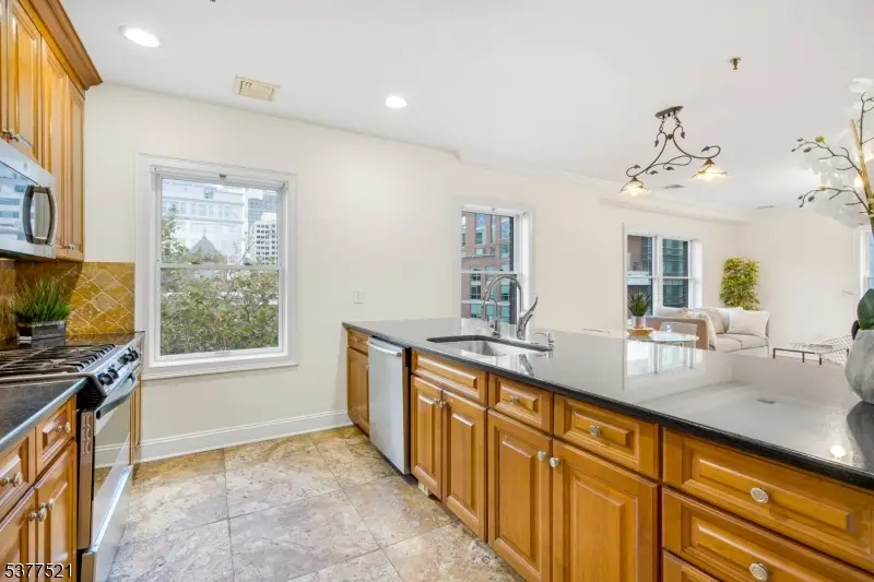 Located on one of Paulus Hook's most desirable historic streets, this 1,100 square foot corner residence offers abundant natural light, beautiful hardwood floors, and expansive windows framing stunning views of NYC and the Hudson River. The gourmet kitchen is outfitted with top-tier stainless steel appliances Sub-Zero refrigerator, Thermador stove, and Bosch dishwasher complemented by 42-inch cabinetry, granite countertops, and a breakfast bar. The spacious primary suite features a luxurious private bath and ample closet space, while the second bedroom offers versatility for guests or a home office. Additional highlights include central air conditioning, in-unit washer/dryer, a private storage room, and deeded garage parking. The boutique building offers an elevator, shared bike room, and backyard garden, all set on a quiet, tree-lined street. Enjoy unrivaled convenience just minutes to the PATH, ferry, shops, restaurants, parks, schools, the waterfront boardwalk, and only 6-12 minutes to Battery Park or Wall Street. Don't miss this one!