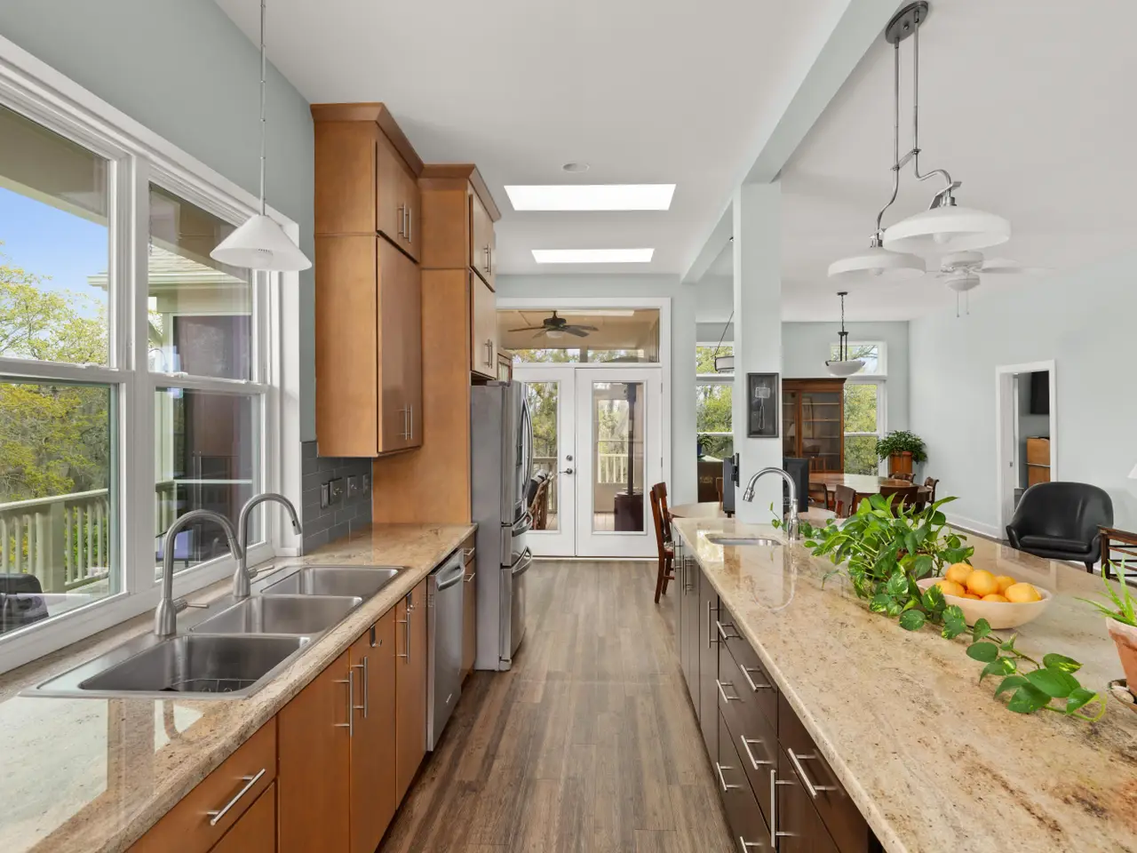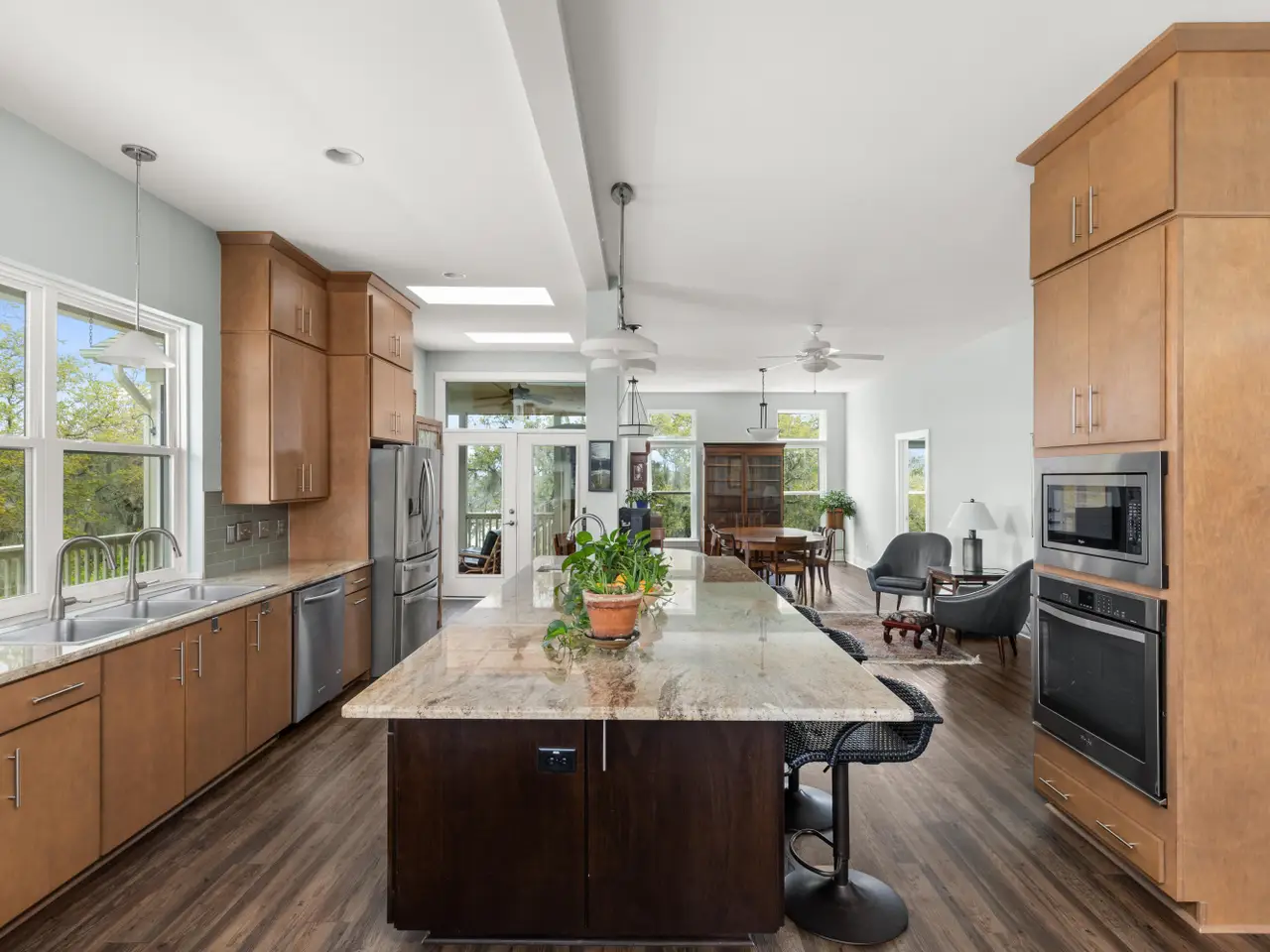 • Massive granite island with seating