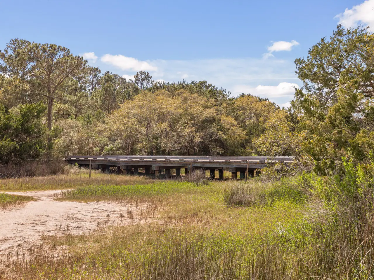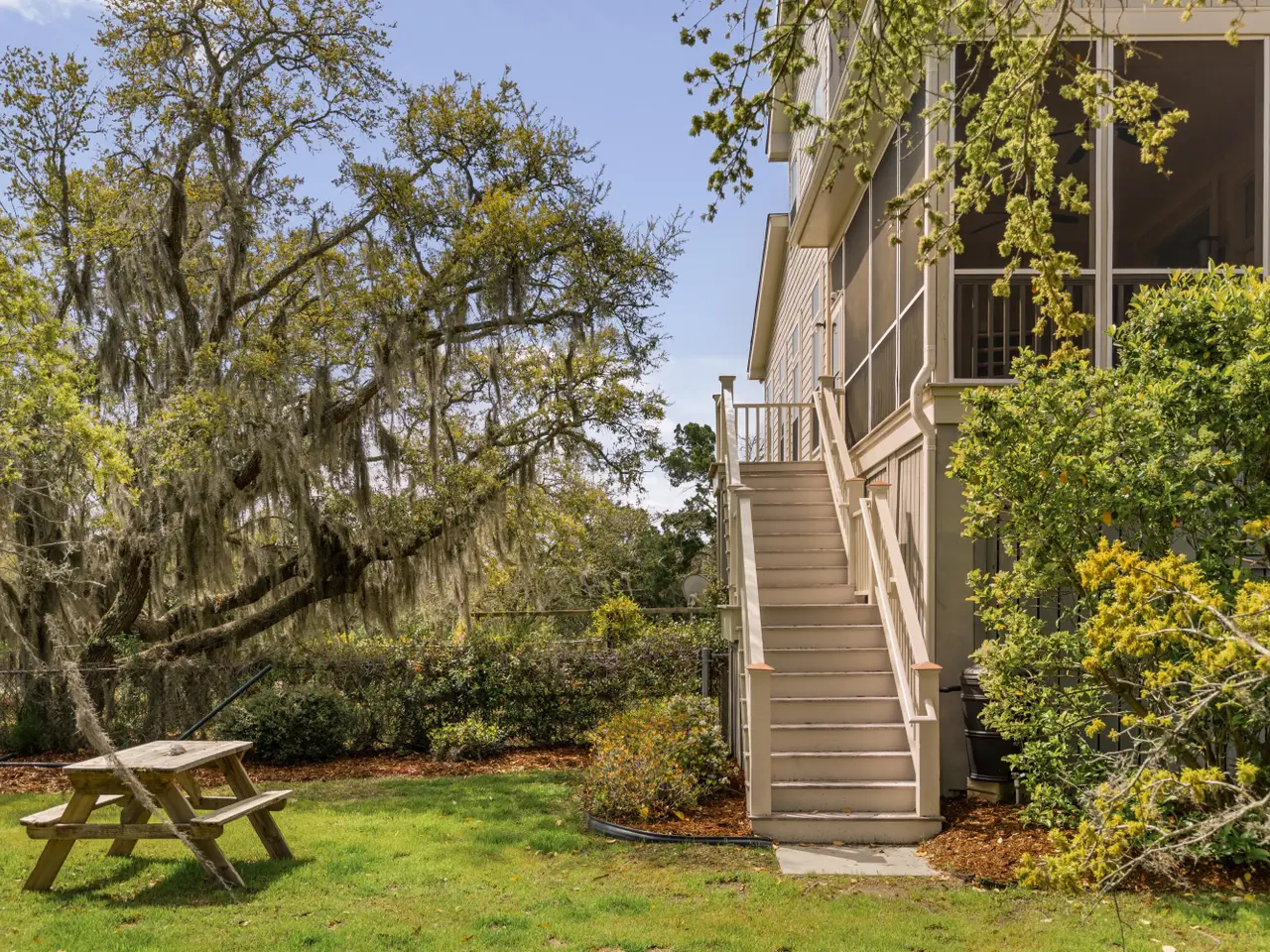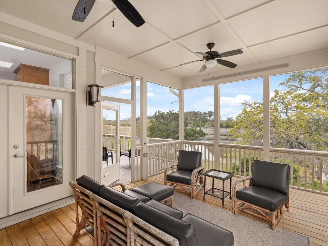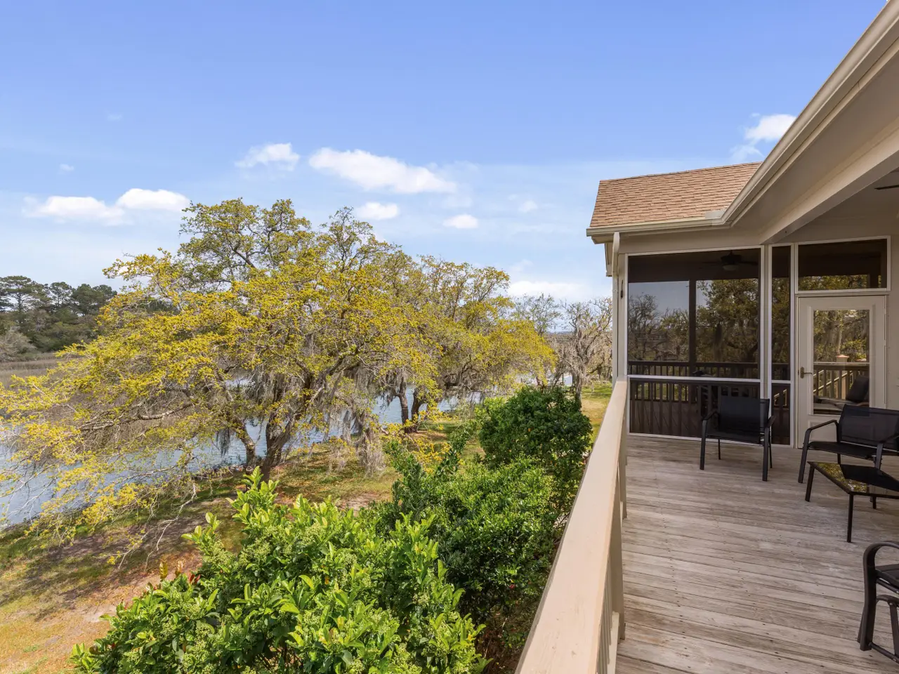 • Screened-in porch overlooking marsh grasses