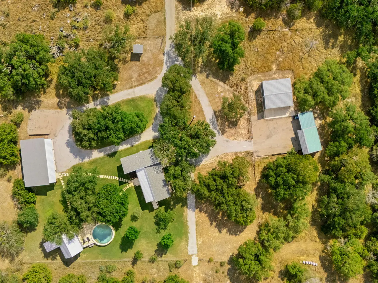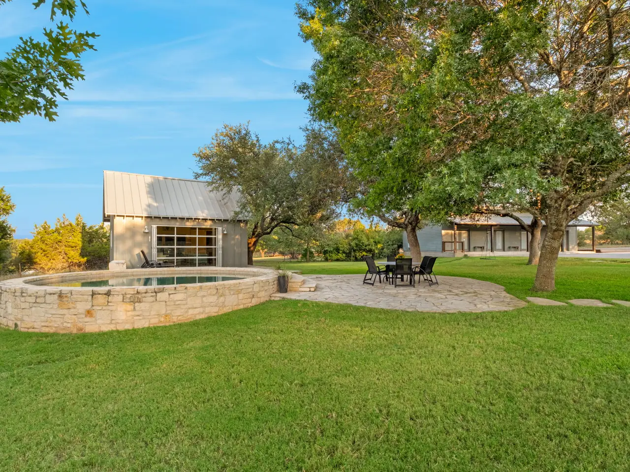 River life on the Pedernales has never been so convenient, fun, private and stylish as it is at 746 Trail Rock Dr.! This rare property is situated on 10 secluded acres just 5 minutes from downtown Johnson City. The Pedernales River Place is comprised of a Main Cottage, Pool House and a fun multi-bedroom building lovingly called "The Motel", plus an insulated Metal building and a workshop building. The Cottage is nicely updated and offers 2 Bedrooms plus 2 Bathrooms, an updated kitchen w/induction cooktop, custom cabinetry, mudroom w/laundry and a large covered porch perfect for entertaining. The Pool house overlooks the Round Pool w/large flagstone patio and features a glass rollup garage door, stylish kitchen/great room combo and a full bath perfect for servicing the pool. The "Motel" is comprised of 4 bedrooms with Rooms 1 and 3 each with their own bathroom but sharing an adjoining bedroom (offering lots of flexibility for different family combinations; plus a 4th room fully self contained w/private bath...all open to a common covered front porch overlooking the pretty yard and pool. The "Motel Chr" building also features a lockable storage closet and abundant built-in cabinetry. The grounds are immaculate here with circular drive, plenty of fenced yard space to run and play; gated for security, nicely groomed trees PLUS the easy and approachable access to the over 470' of Pedernales river front! There is a large pasture at the river and the approach to the river is safe & easy; you'll enjoy activities like flyfishing, floating and kayaking here on the Pedernales! Additionally, the Pedernales River Place offers 2 attractive Workshop spaces: one is a 29' x 29' insulated building with 2 rollup doors perfect for "gameroom" or "mancave" plus an additional workshop building w/shed space...all visually separated by fencing and a motor courtyard. The driveway is chipsealed and for tax savings there is a Beekeepers exemption that will rollover to Wildlife Management exemption next year. This is a special property that would make a family legacy property for years to come!