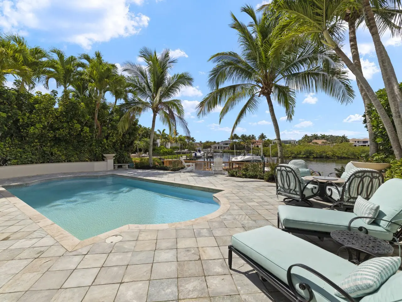 Just reduced below appraised value! WIDE OPEN WATERFRONT w/southern exposure. Minutes to the intracoastal. No fixed bridge with easy ocean access. Views of nature sanctuary. Contemporary 4BD/4BA one story villa. Open palette to express your own design. Primary suite and VIP suite boast tranquil waterfront views. Flooded w/natural light. Large lushly landscaped PRIVATE location w/3 car garage. Wide circular Chicago Brick driveway. Open great room floor plan w/vaulted cathedral ceilings. Downsview kitchen w/marble countertops and stainless steel Miele appliances. Crema marfil floors. Split floorplan. Large heated pool w/ coastal slate patio entertaining areas. Dock w/24,000 lb boatlift. Floating dock for addl water toys. Summer kitchen. Sports or golf membership available.