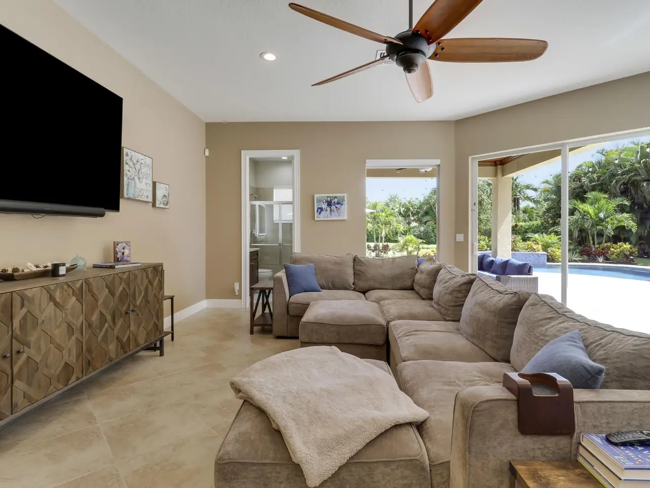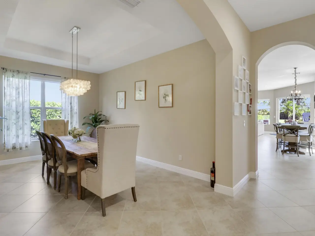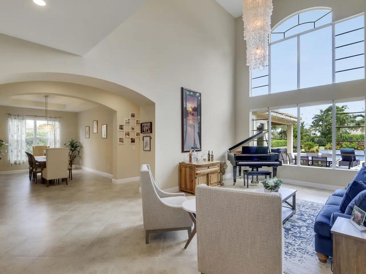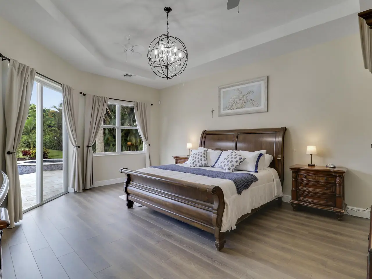 Step into luxury and comfort in this upgraded 6-bedroom, 5-bathroom Stonegate model. Located in one of the areas most sought-after gated communities, known for its exceptional amenities and top-rated school district. Situated on a generous 1/2 acre lot, this home is the perfect blend of luxury, comfort, and functionality.Discover the thoughtfully designed floor plan featuring a spacious first-floor primary suite for ultimate convenience and privacy. The interior boasts impact-rated windows throughout, ensuring peace of mind and energy efficiency. The gourmet kitchen and first-floor bathrooms have been tastefully updated with stunning new quartz countertops, adding a sleek and modern touch. The closets in the primary bedroom have all been built out to accommodate all storage needs. Outdoors, you'll find your own private oasis complete with a heated pool, custom putting green, and beautifully redesigned landscaping enhanced by professional lighting. Whether you're hosting guests or enjoying a quiet evening under the stars, the expansive backyard offers endless possibilities. Additional highlights include a newly finished epoxy garage floor, perfect for car enthusiasts or extra storage. This move-in ready home checks every box for luxury. Rialto is one of Jupiter's most desirable communities, known for its atmosphere, A- rated schools, and top tier amenities including a clubhouse with fitness center, community pool, splash park, tennis courts, playground and more. This move -in ready masterpiece is a rare opportunity to enjoy luxury living in the heart of Jupiter.