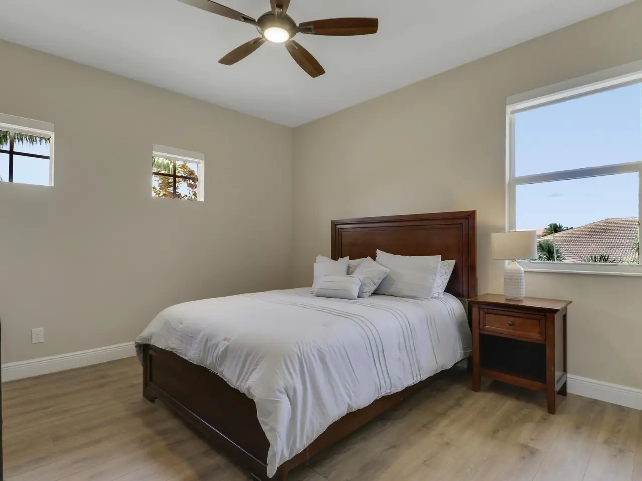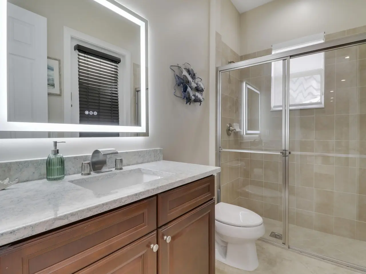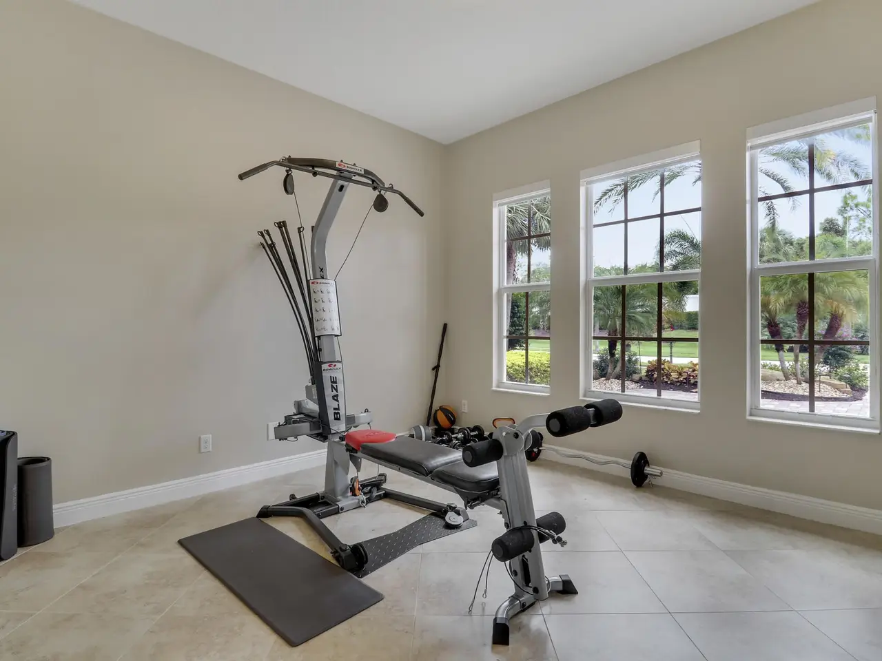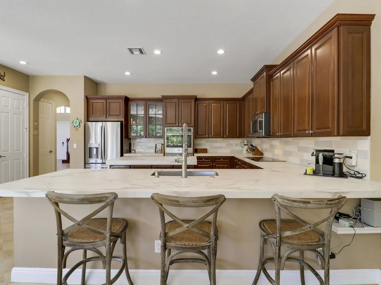 Step into luxury and comfort in this upgraded 6-bedroom, 5-bathroom Stonegate model. Located in one of the areas most sought-after gated communities, known for its exceptional amenities and top-rated school district. Situated on a generous 1/2 acre lot, this home is the perfect blend of luxury, comfort, and functionality.Discover the thoughtfully designed floor plan featuring a spacious first-floor primary suite for ultimate convenience and privacy. The interior boasts impact-rated windows throughout, ensuring peace of mind and energy efficiency. The gourmet kitchen and first-floor bathrooms have been tastefully updated with stunning new quartz countertops, adding a sleek and modern touch. The closets in the primary bedroom have all been built out to accommodate all storage needs. Outdoors, you'll find your own private oasis complete with a heated pool, custom putting green, and beautifully redesigned landscaping enhanced by professional lighting. Whether you're hosting guests or enjoying a quiet evening under the stars, the expansive backyard offers endless possibilities. Additional highlights include a newly finished epoxy garage floor, perfect for car enthusiasts or extra storage. This move-in ready home checks every box for luxury. Rialto is one of Jupiter's most desirable communities, known for its atmosphere, A- rated schools, and top tier amenities including a clubhouse with fitness center, community pool, splash park, tennis courts, playground and more. This move -in ready masterpiece is a rare opportunity to enjoy luxury living in the heart of Jupiter.