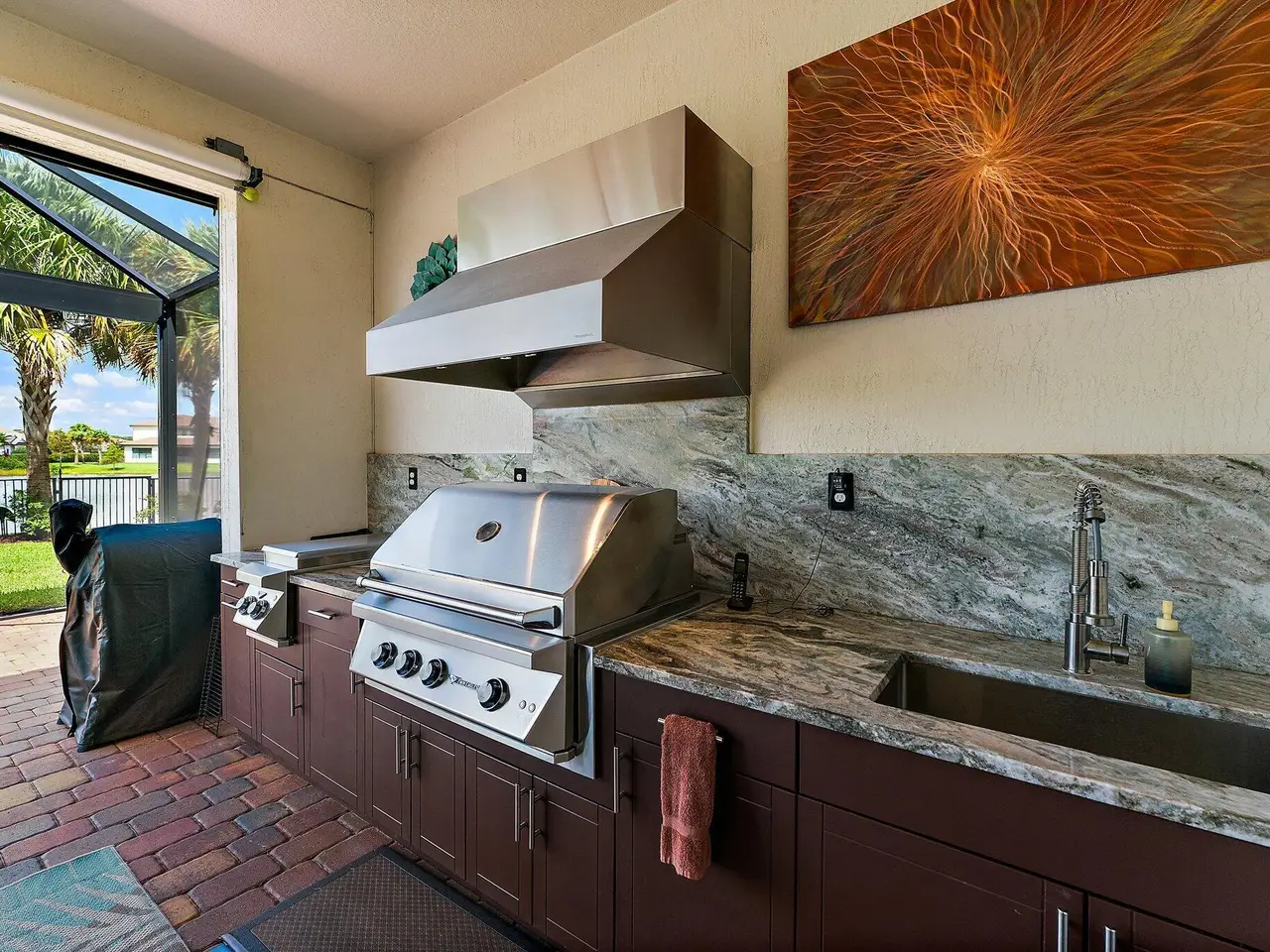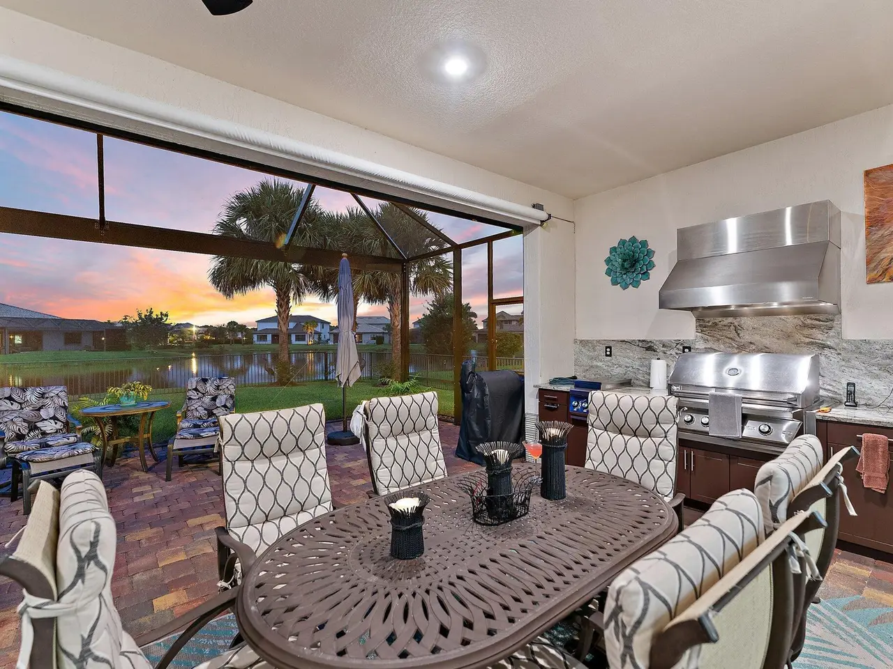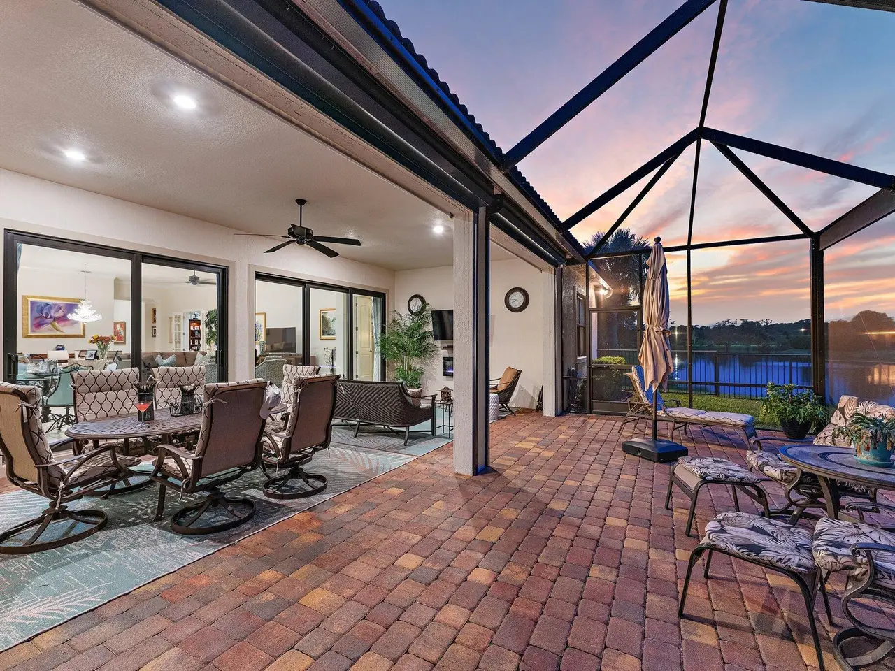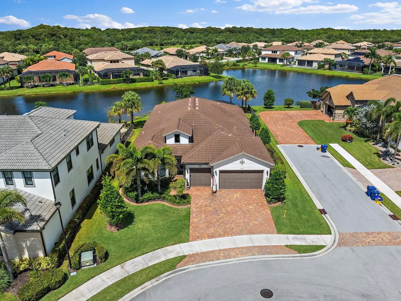 This extremely popular one-story ''Stonewater'' model home by DiVosta is located in the heart of the community, at the end of a cul-de-sac, and overlooking a large lake. Special features include a whole house, gas generator; patio roll-up sun shades and armor hurricane roll-up blinds; Twin Eagle gas grill; crown molding; ''no-seeum'' patio screening; enlarged garage with built-in cabinetry and epoxy floor; solid core doors throughout, and much more.