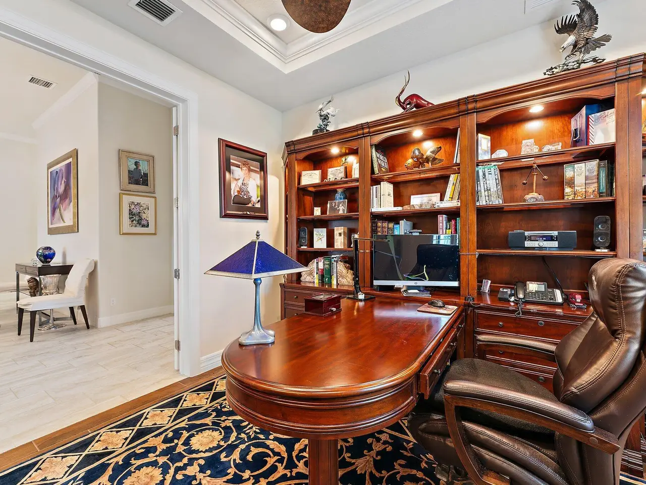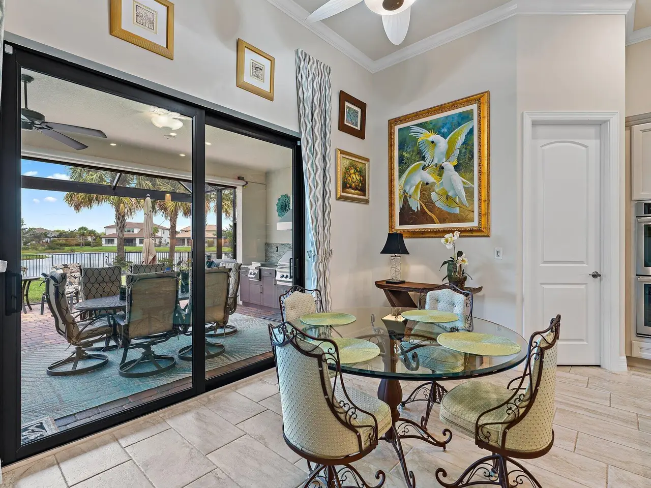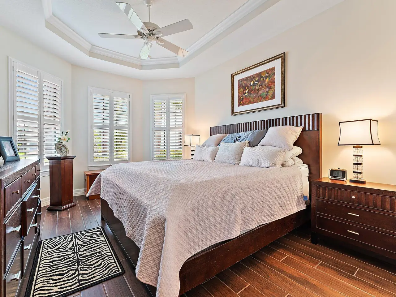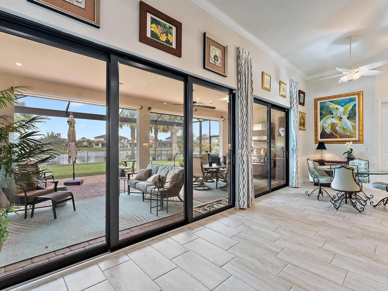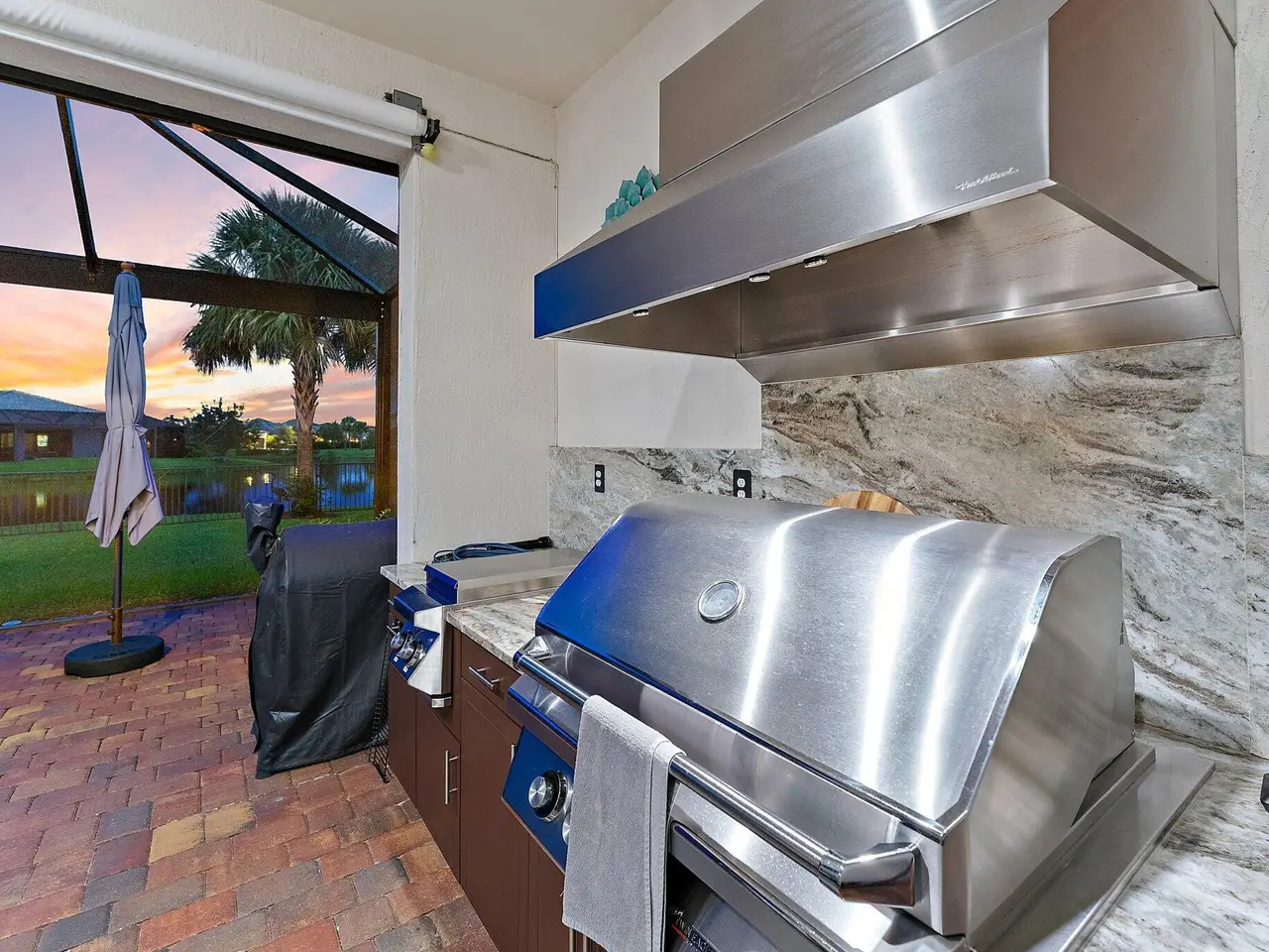 This extremely popular one-story ''Stonewater'' model home by DiVosta is located in the heart of the community, at the end of a cul-de-sac, and overlooking a large lake. Special features include a whole house, gas generator; patio roll-up sun shades and armor hurricane roll-up blinds; Twin Eagle gas grill; crown molding; ''no-seeum'' patio screening; enlarged garage with built-in cabinetry and epoxy floor; solid core doors throughout, and much more.