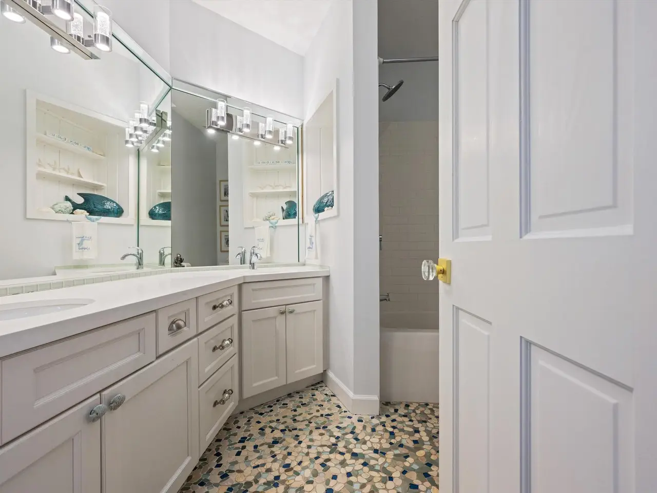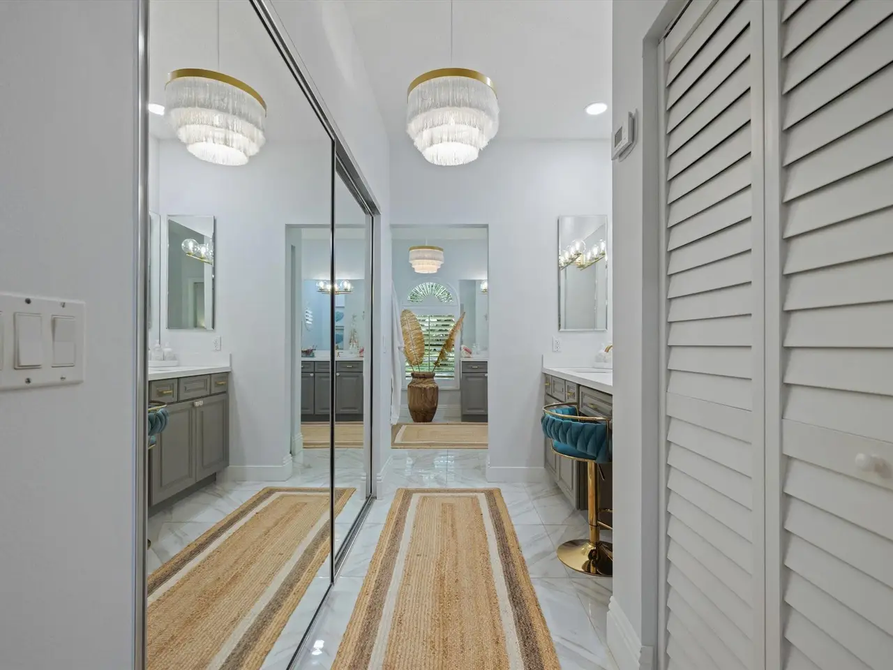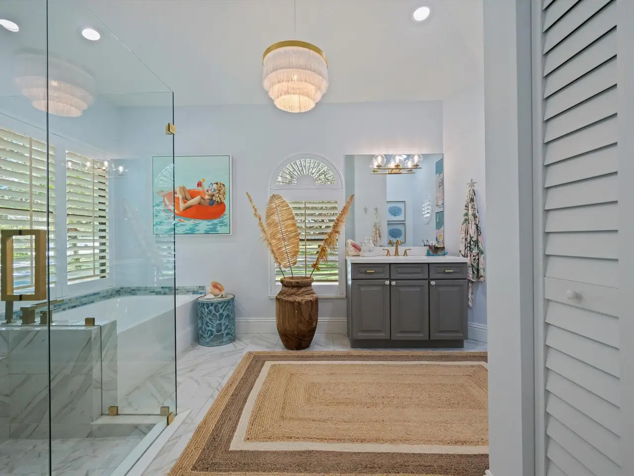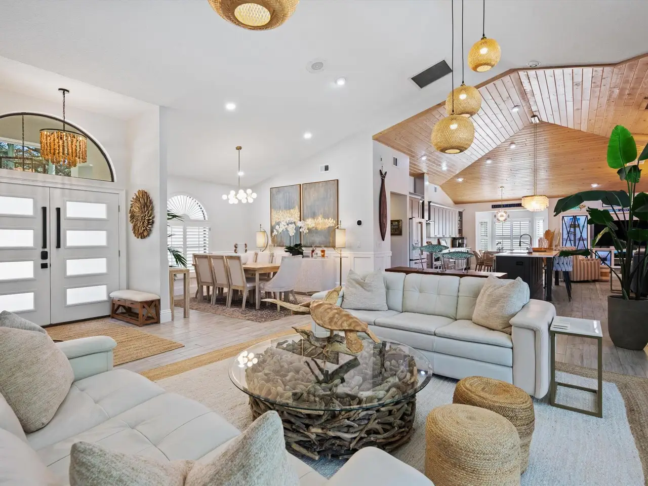 Resort-style living in Heritage Oaks.Located behind the 24-hour manned gates of one of Jupiter's most picturesque neighborhoods, this completely renovated single-story home blends elegant design with relaxed coastal living. Just minutes from the beach and across from the river, the residence features a new double front door, all-new designer lighting, plantation shutters, custom closets, and wide-plank flooring.The kitchen shines with a full-height vent hood, new hardware, and added island outlets. Expansive glass doors retract into the wall, opening to a private , fenced backyard with travertine pool deck, heated pool & spa, upgraded outdoor kitchen, and covered lanai with remote screens. With new landscaping, lighting irrigation, and a tiled roof, this home delivers turnkey luxury.