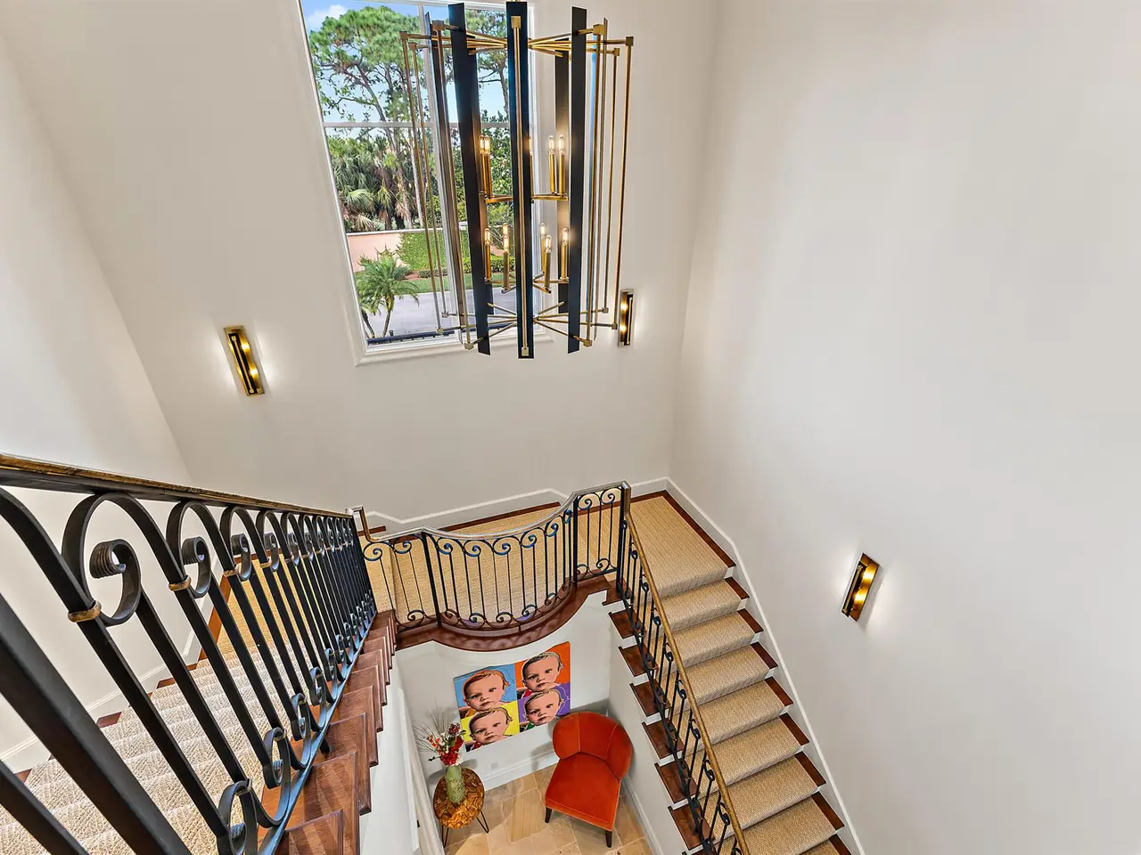 Enjoy the elegance of this custom, over 9,000 square ft estate located in the exclusive Bears Club in Palm Beach Gardens. Featuring five bedrooms, 7.2 bathrooms, 2 - 2 car garages. This spectacular home is situated on a beautiful lot with privacy and a resort-style backyard with outdoor loggia and a fireplace. Recently renovated and new roof. Additional luxuries include a first-floor master suite, 2 magnificent marble master bathrooms, a guest suite, a media room, a club room, a chef's kitchen, a wine bar with a built-in wine fridge, soaring ceilings, impact glass, an elevator, and much more! Beautifully appointed with amenities too numerous to list and ready for the most discerning buyer