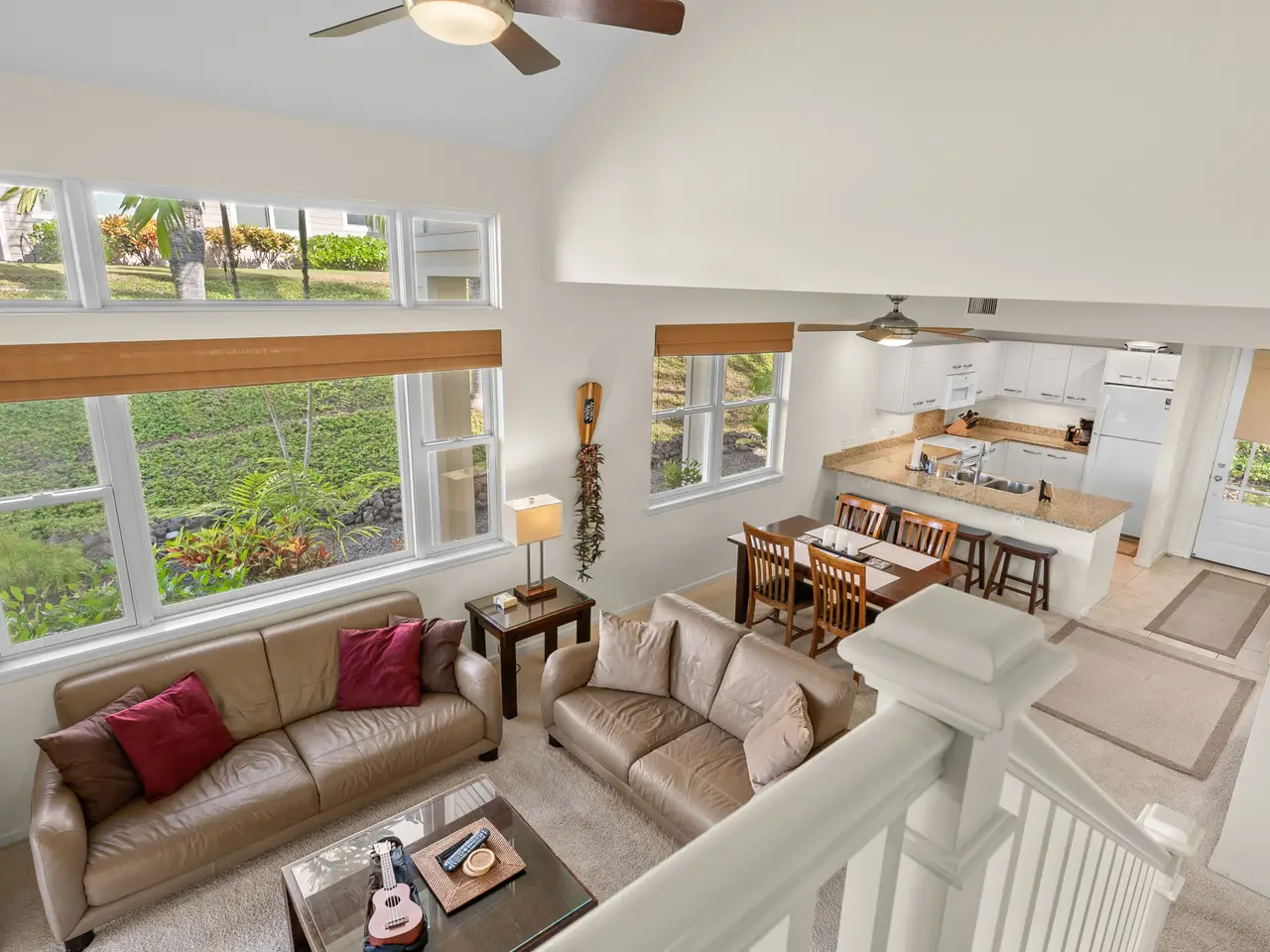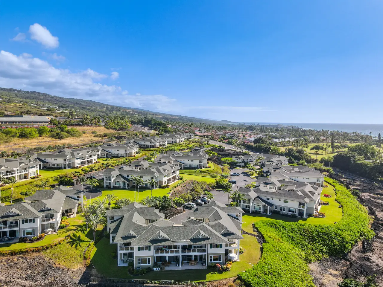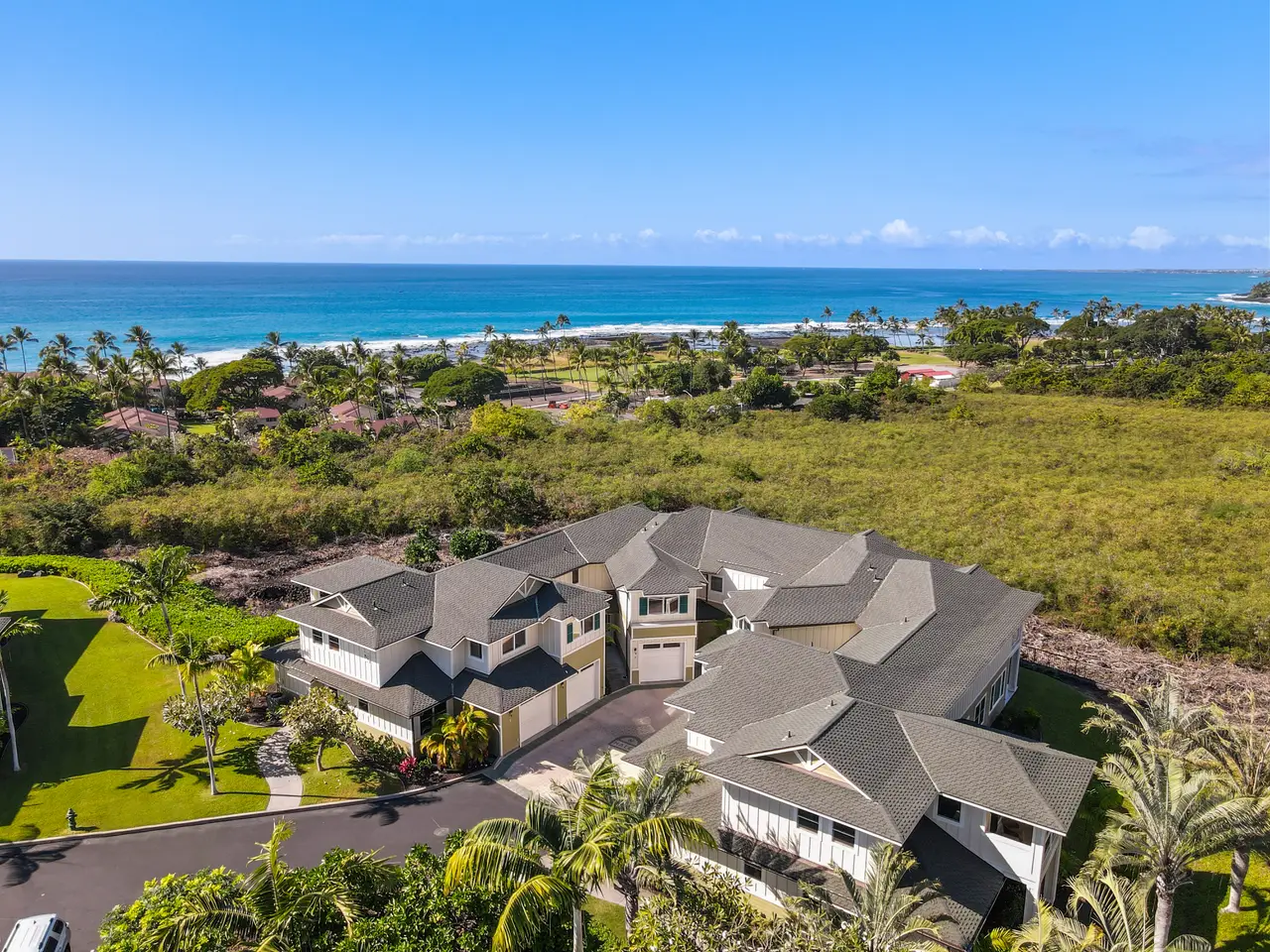 Experience elegant island living in this spacious three bedroom, three bath townhome located at the prestigious Na Hale O Keauhou complex in the heart of Keauhou, Hawai’i Island. This thoughtfully designed residence features generous living spaces, with 1,704 interior sqft, vaulted ceilings, and Central AC, ensuring comfort year-round. The layout is ideal for flexible living, with one bedroom on the ground floor featuring an attached full bathroom, accessible from both the bedroom and the hall without disturbance. Upstairs, two en suite bedrooms include the primary suite with a private lanai. The home also features a new stacking washer/dryer, ample storage with large closets, and an attached garage, adding to the convenience and appeal. As an active vacation rental with a 7-night minimum stay, this property presents an excellent opportunity for investors or those seeking a second home. Monthly HOA fees cover water, garbage, Spectrum internet and TV, all exterior maintenance and includes pest management. An onsite manager ensures peace of mind. This gated, pet-friendly community is meticulously maintained and offers resort-style amenities, including: * swimming pool with a children’s shallow area and spa * fully air-conditioned fitness center * pavilion with a BBQ area for gatherings Na Hale O Keauhou is conveniently located within walking distance of the Keauhou Shopping Center, which includes a KTA grocery store, restaurants, retail shops, a movie theater and an urgent care medical center. Nearby there are Farmer’s Markets three times a week and outdoor attractions like Kahalu’u Beach Park, and the Kona Country Golf Club. Keauhou Bay and boat harbor offer endless opportunities for water activities and is home to the Keauhou Outrigger Canoe Club. With its sunny days, gentle breezes, and breathtaking sunsets, this property offers more than a home—it’s a gateway to an unparalleled lifestyle.