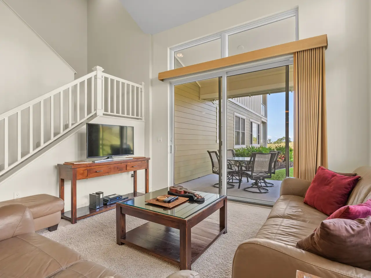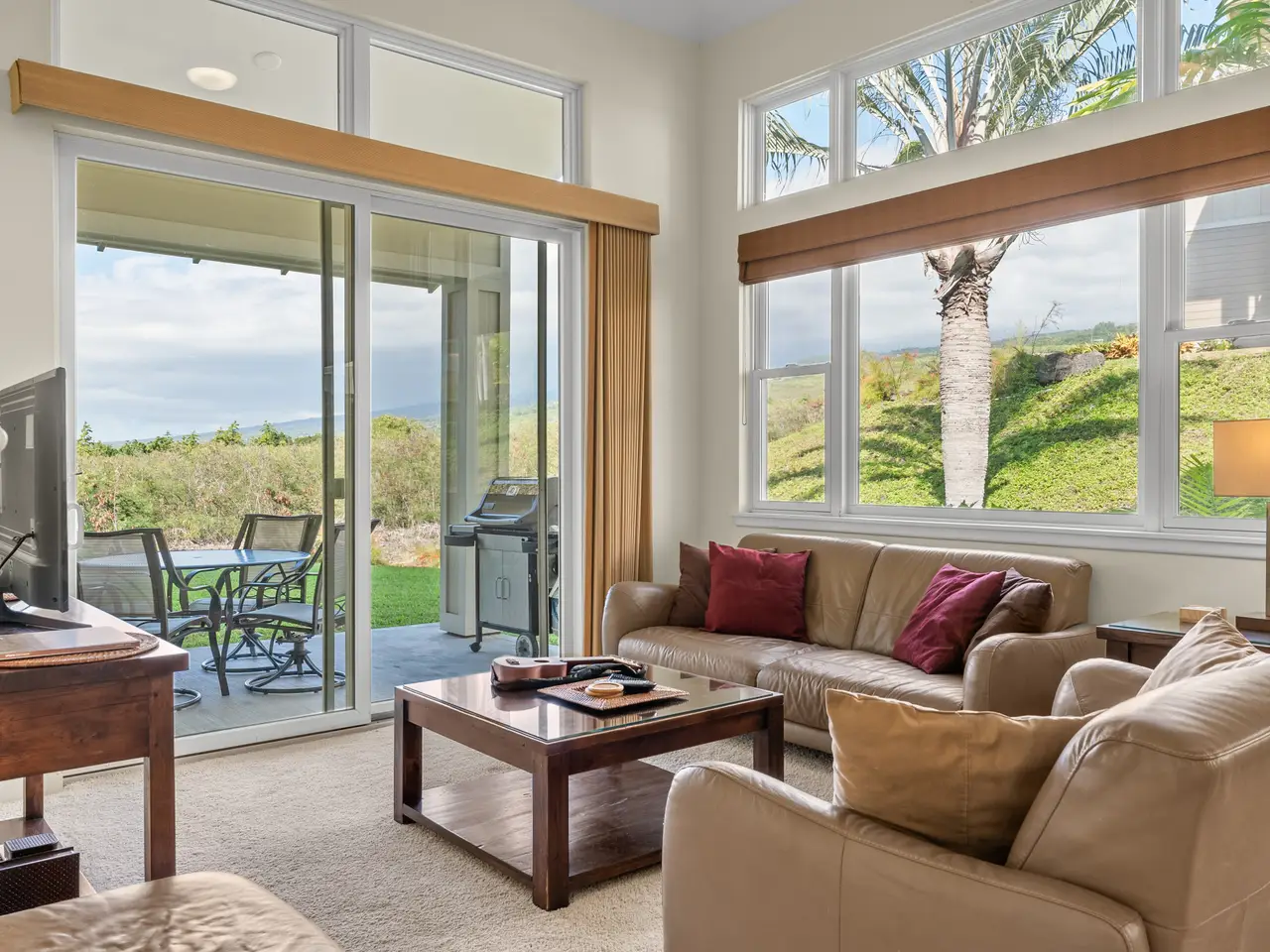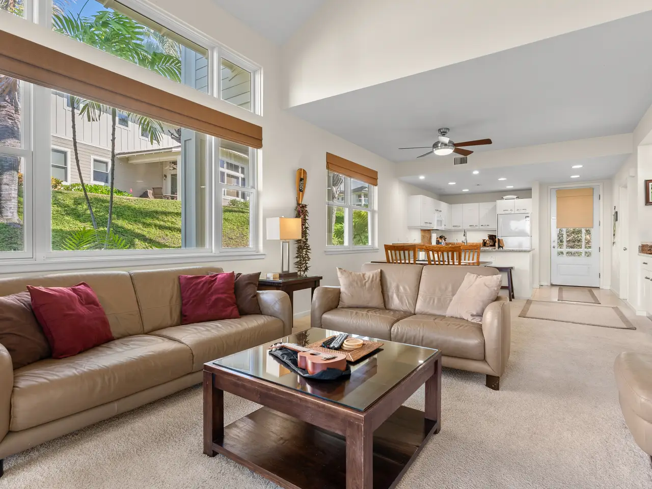 Experience elegant island living in this spacious three bedroom, three bath townhome located at the prestigious Na Hale O Keauhou complex in the heart of Keauhou, Hawai’i Island. This thoughtfully designed residence features generous living spaces, with 1,704 interior sqft, vaulted ceilings, and Central AC, ensuring comfort year-round. The layout is ideal for flexible living, with one bedroom on the ground floor featuring an attached full bathroom, accessible from both the bedroom and the hall without disturbance. Upstairs, two en suite bedrooms include the primary suite with a private lanai. The home also features a new stacking washer/dryer, ample storage with large closets, and an attached garage, adding to the convenience and appeal. As an active vacation rental with a 7-night minimum stay, this property presents an excellent opportunity for investors or those seeking a second home. Monthly HOA fees cover water, garbage, Spectrum internet and TV, all exterior maintenance and includes pest management. An onsite manager ensures peace of mind. This gated, pet-friendly community is meticulously maintained and offers resort-style amenities, including: * swimming pool with a children’s shallow area and spa * fully air-conditioned fitness center * pavilion with a BBQ area for gatherings Na Hale O Keauhou is conveniently located within walking distance of the Keauhou Shopping Center, which includes a KTA grocery store, restaurants, retail shops, a movie theater and an urgent care medical center. Nearby there are Farmer’s Markets three times a week and outdoor attractions like Kahalu’u Beach Park, and the Kona Country Golf Club. Keauhou Bay and boat harbor offer endless opportunities for water activities and is home to the Keauhou Outrigger Canoe Club. With its sunny days, gentle breezes, and breathtaking sunsets, this property offers more than a home—it’s a gateway to an unparalleled lifestyle.