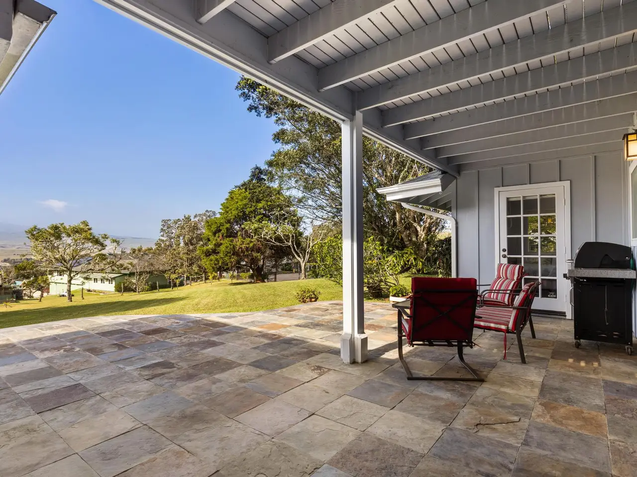 Welcome home to this meticulously maintained and thoughtfully upgraded country estate in Waimea, where cool air and sweeping views of Mauna Kea provide the perfect backdrop for everyday living. Nestled on a peaceful hillside, this spacious home blends luxury, comfort, and natural beauty into one incredible package. Awaken your inner cooking connoisseur with this spectacular kitchen. Complete with an oversized island, a new touchscreen refrigerator, and generous cabinet space. A pass-through to the formal dining room makes for a seamless hosting experience. Enjoy cozy evenings by the wood-burning fireplace, perfectly placed between the dining and living rooms. Soaring windows in the great room flood the home with natural light and offer exceptional views of the landscape. Movie lovers will be wowed by the dedicated home theater room, featuring a 4K projector and 120” screen for the ultimate cinematic experience. Upstairs you’ll find a 640 sf private suite featuring vaulted ceilings, walk-in closet, and a spacious balcony facing Mauna Kea. The ensuite bathroom encompasses glass koi-fish sinks, a walk-in shower, and a tranquil Japanese ofuro soaking tub. The 3 downstairs bedrooms are each unique. One with a private entrance and mountain views, another with his and her closets, and the other with its own ensuite bathroom. Step outside to the covered patio to immerse yourself in a botanical paradise. The property bursts with vibrant foliage and fruit-bearing trees, including citrus, apple-bananas, grapefruit, guava, avocado, dragon fruit, and more. Endless pineapple plants line the home’s perimeter, and blooming favorites like cherry blossoms, roses, gardenias, and anthuriums add intoxicating beauty and fragrance to this one-of-a-kind garden. Whether you're drawn to the tranquility of nature or the charm of country living, this exceptional home offers a rare opportunity to have it all.