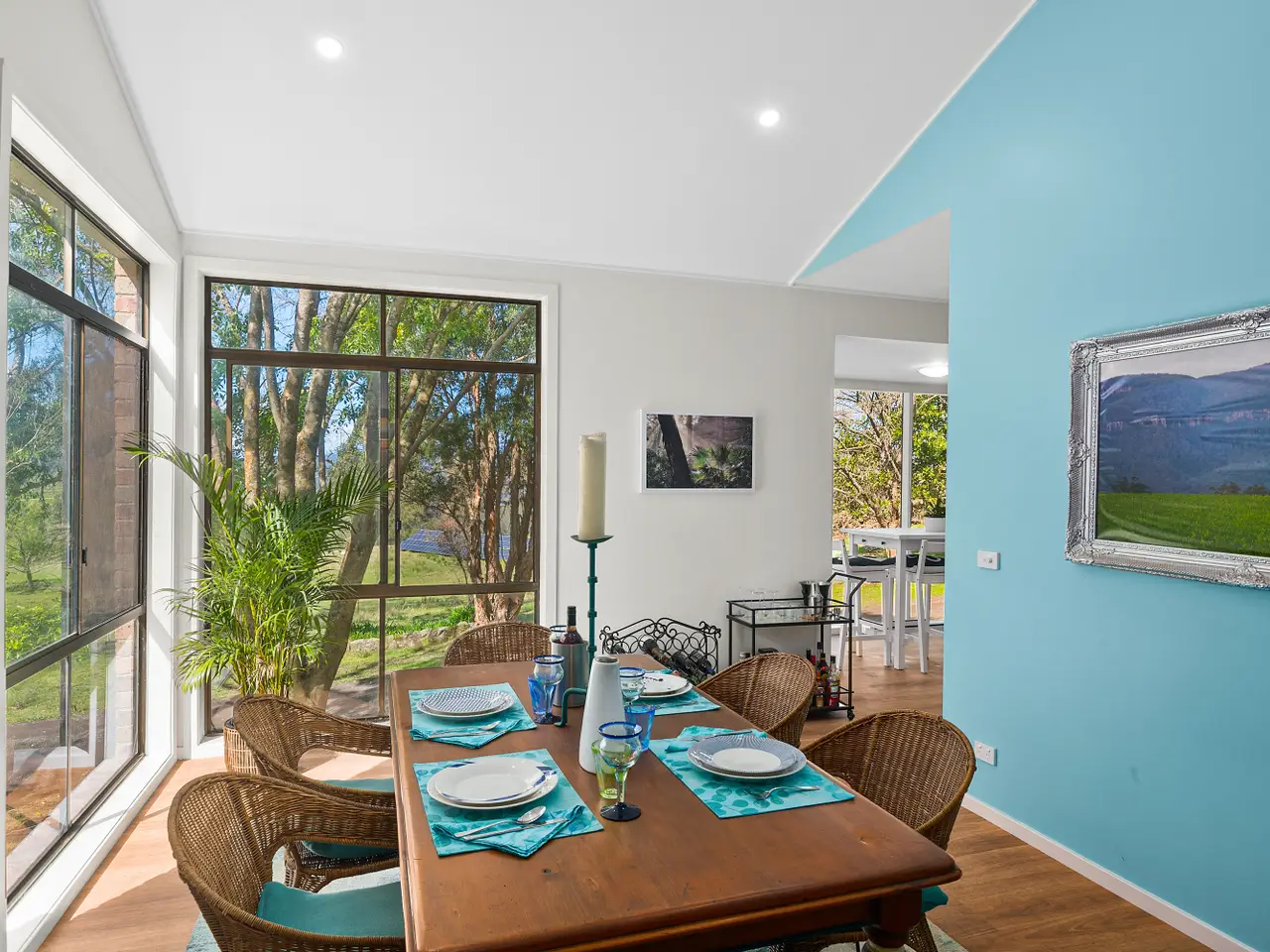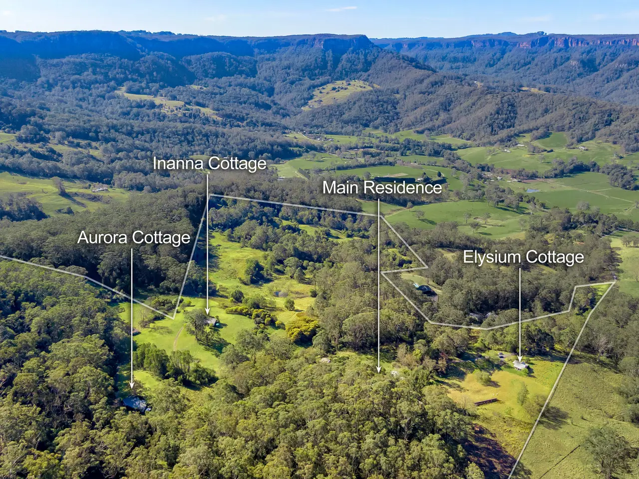 Occupying an elevated expanse of the famed Kangaroo Valley, 'The Heavens' unfolds across 160 acres of sheer magnificence. This estate marries untouched rainforests with open paddocks and rolling green pastures. Evoking the essence of a tucked-away hamlet, the property showcases a gracious primary residence, complemented by three captivating cottages, uniquely positioned as income-generating assets. The main homestead embraces the warmth and simple elegance of its natural surrounds. Spread across two self-contained wings, the home features five spacious bedrooms, three bathrooms, and the cosiness of a slow-combustion fireplace. Newly laid flooring gleams underfoot, and fresh paint graces the walls, with multiple verandah spaces overlooking the adjacent pool. Beyond the grounds of the multifaceted residence, the property reveals its true charm. Three resplendent cottages – Inanna, Aurora, and Elysium – dot the landscape, each an epitome of refined countryside living. With opulent suites, vast entertaining decks, and breathtaking views, they cater to comfort and privacy, offering a touch of timeless elegance amidst nature's embrace. With sustainability at its heart, the property prides itself on an ample solar power supply, ensuring an eco-friendly footprint, while a spring supplements water needs, further enhanced by a robust tank supply. Every glance within the grounds is met with panoramic views of the valley's iconic escarpments, providing a delightful dilemma on how to best enjoy this unrivalled retreat, be that as a pure investment opportunity, your weekend retreat, a lifestyle farm, or for that permanent treechange. Solitude whispers in every corner of the estate, yet the promise of connectivity remains. A quick 10-minute drive will have you discovering the delights of Kangaroo Valley Village while the Southern Highlands, the Shoalhaven region, and the bustling life of Sydney can all be reached within a brief commute. - Elevated 160-acre estate with Kangaroo Valley panoramic vistas - Private retreat with primary residence and three cottages - Main homestead features five bedrooms, three bathrooms, and two kitchens - Newly laid flooring, fresh paint, and slow-combustion fireplace - Multiple verandah spaces perfect for relaxation, with an adjacent pool - Three premium cottages designed for potential revenue streams - 'Inanna and Aurora' cottages feature king suites and escarpment views - 'Elysium' cottage features two queen bedrooms and entertaining deck - Sustainability offerings with solar power, spring-fed supply, and tanks - Easy access to Kangaroo Valley Village and surround