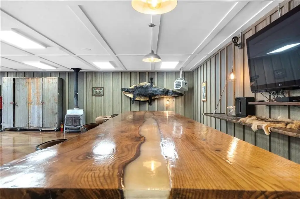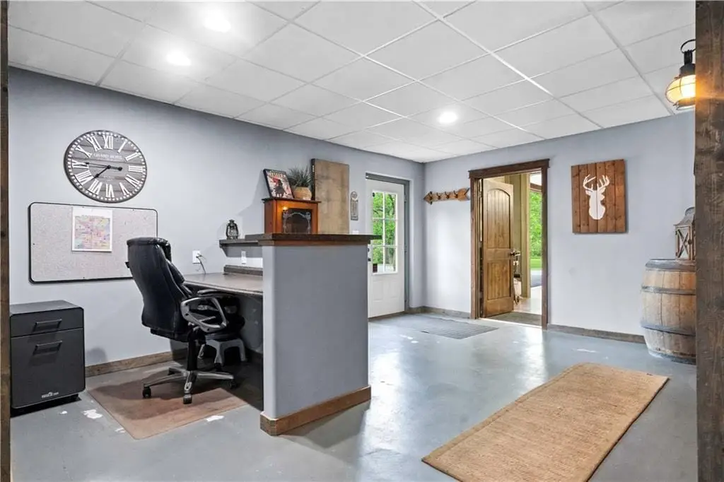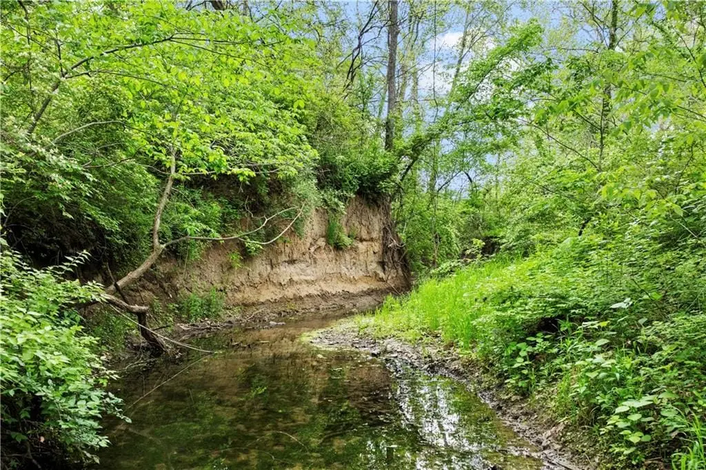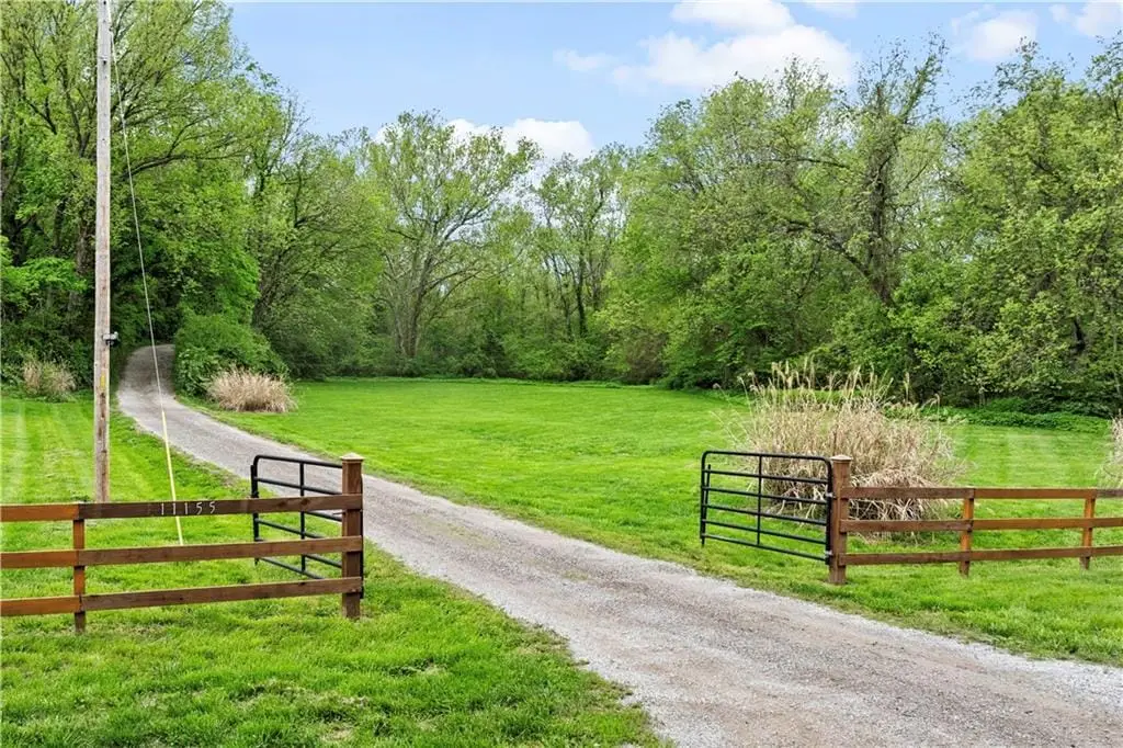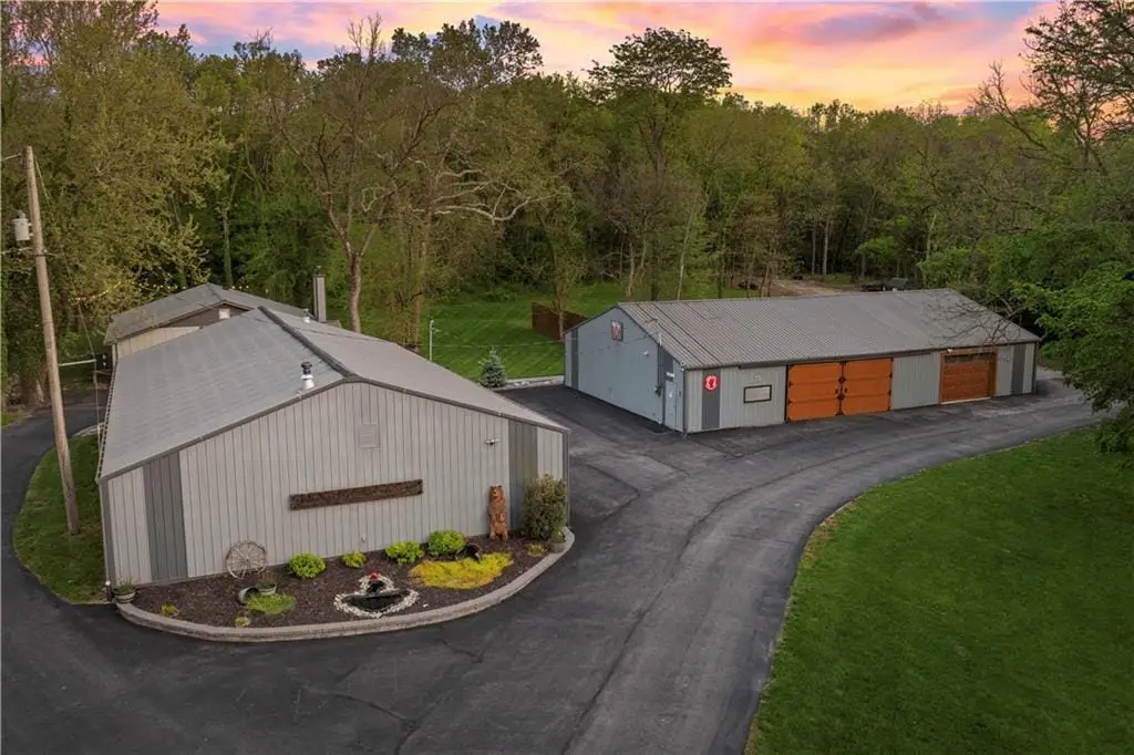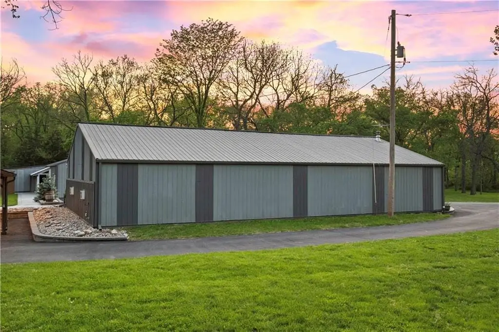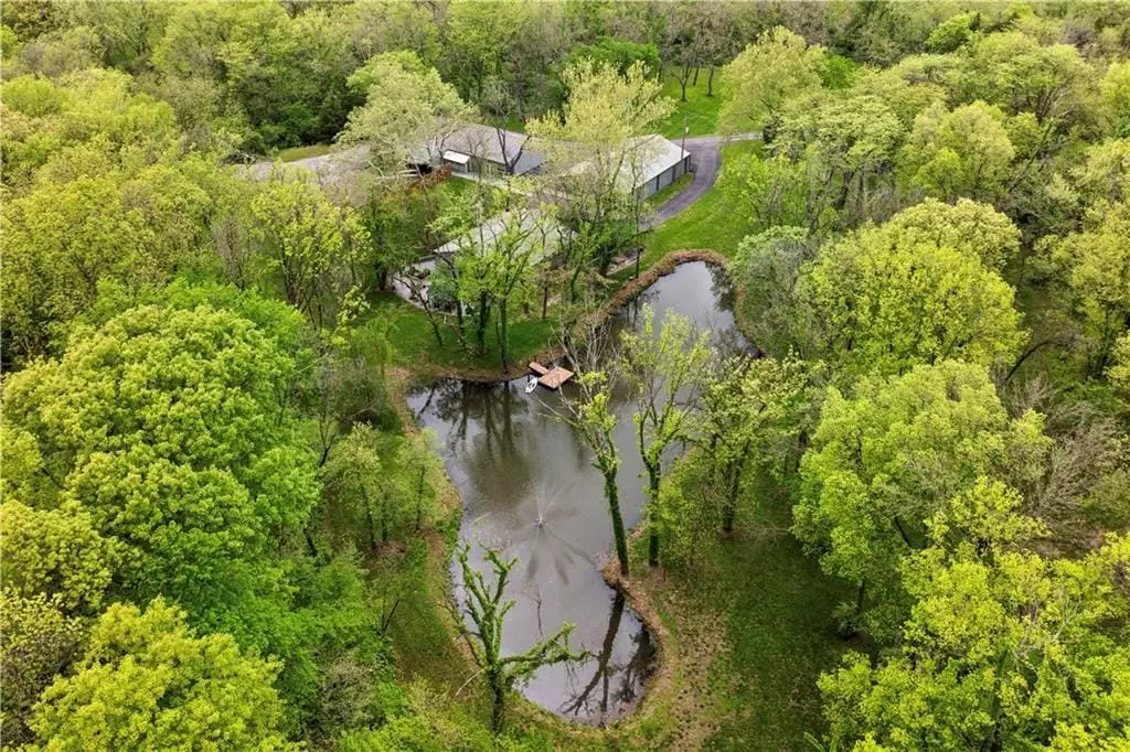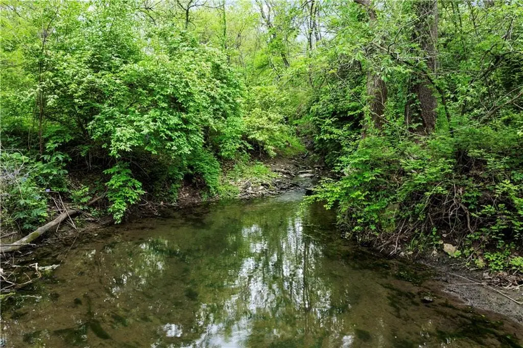 ONE. OF. A. KIND. This exceptional property feels hours from the city with a KC address. Where Serenity meets Adventure ALL off paved roads. This secluded 15.5 acre private retreat is tucked deep in a natural mix of mature oaks, plentiful black walnut, pines & thickets creating ideal bedding & feeding areas for Trophy White Tail deer, Turkey & small game. Honey Creek runs along the property creating a natural buffer to protect the land from development with rugged terrain & untapped potential for a private hunting club, outdoorsman's escape, a small sportsmans club, weekend getaway, Airbnb-style hunting retreat, event space with minimal development needed OR a family compound! Nestled behind a long private drive is an unpredictable stretch of land with 3 separate buildings that curate a small village. A main lodge w/unique barn wood finishes, wood burning stove & Custom Live Edge Bar on caster wheels. Unique office spaces with built-in Sonos sound system. Dens Armor fiberglass ceiling finish that bring the outdoors; in! Expansive garage space for any car enthusiasts for a full collection or private showroom. Dual multi-purpose zoning potential (2 existing BPU meters 1RES/1 COMM) with Fiber Optic internet upgrades, the possibilities are endless w/ Industrial Asphalt for heavy equipment & tandem axle trucks. This sanctuary is a MUST SEE with spectacular entertaining spaces, bunk room, bedrooms, laundry, full kitchen, outdoor patio, covered pavilion, picnic area, indoor gym with custom Bluetooth Sauna, fitness studio, hot tub, nature trails + pond stocked full or Bass, Blue Gill, Grass Carp w/ a private dock. Whether you're seeking a private sanctuary for your family, a place to launch your next business venture, or the ultimate setup for a passion project, this property delivers it ALL! Close to the legends, Sporting KC, easy access to Arrowhead, within arms-reach of Weston, Parkville, Lawrence + a quick 20-minute drive from Estate Gate to KCI International Airport.