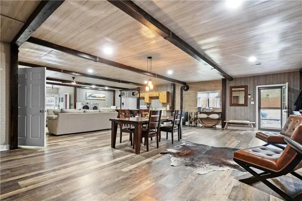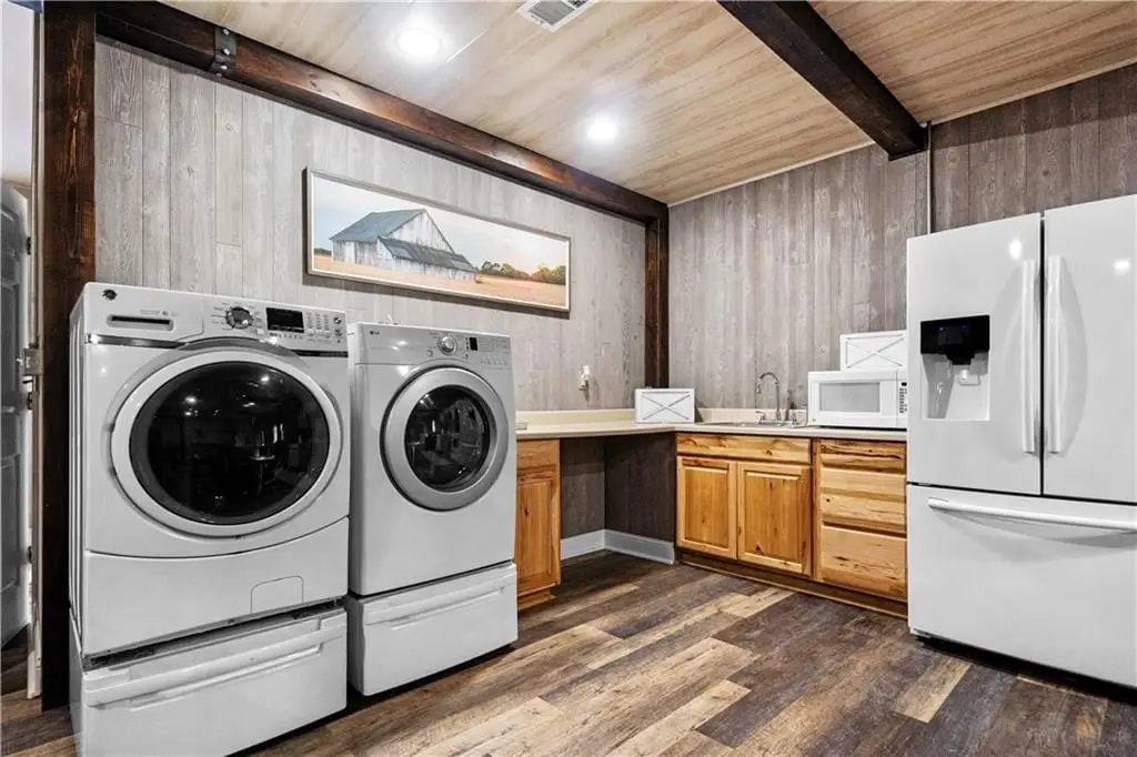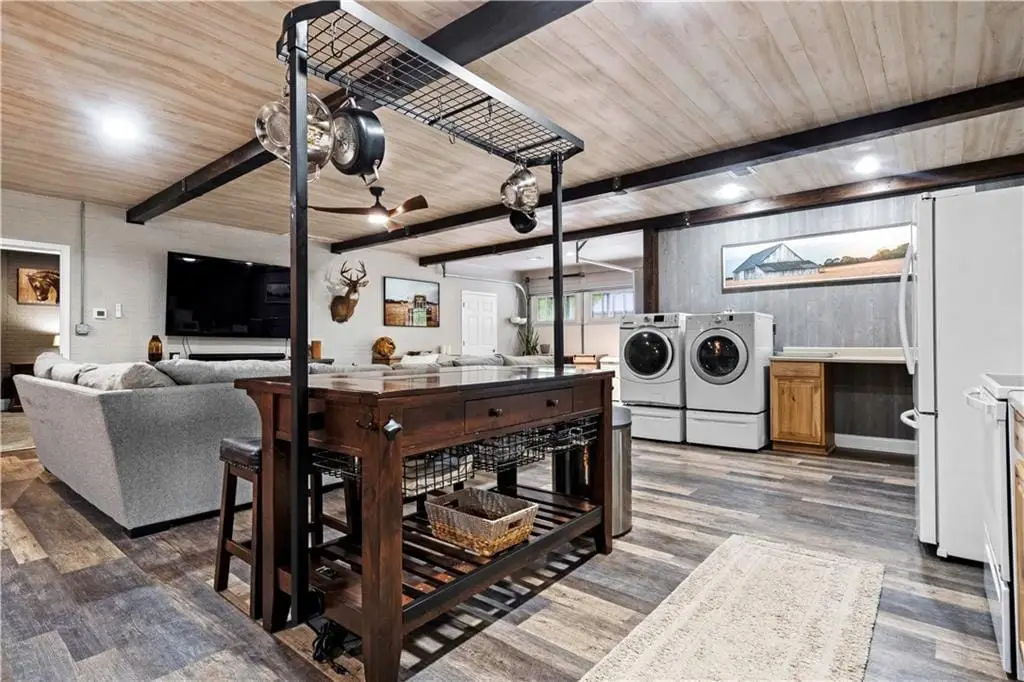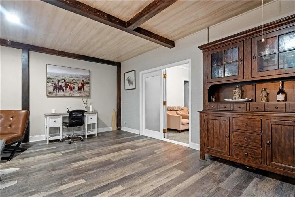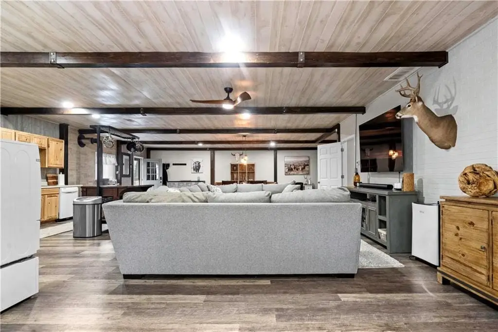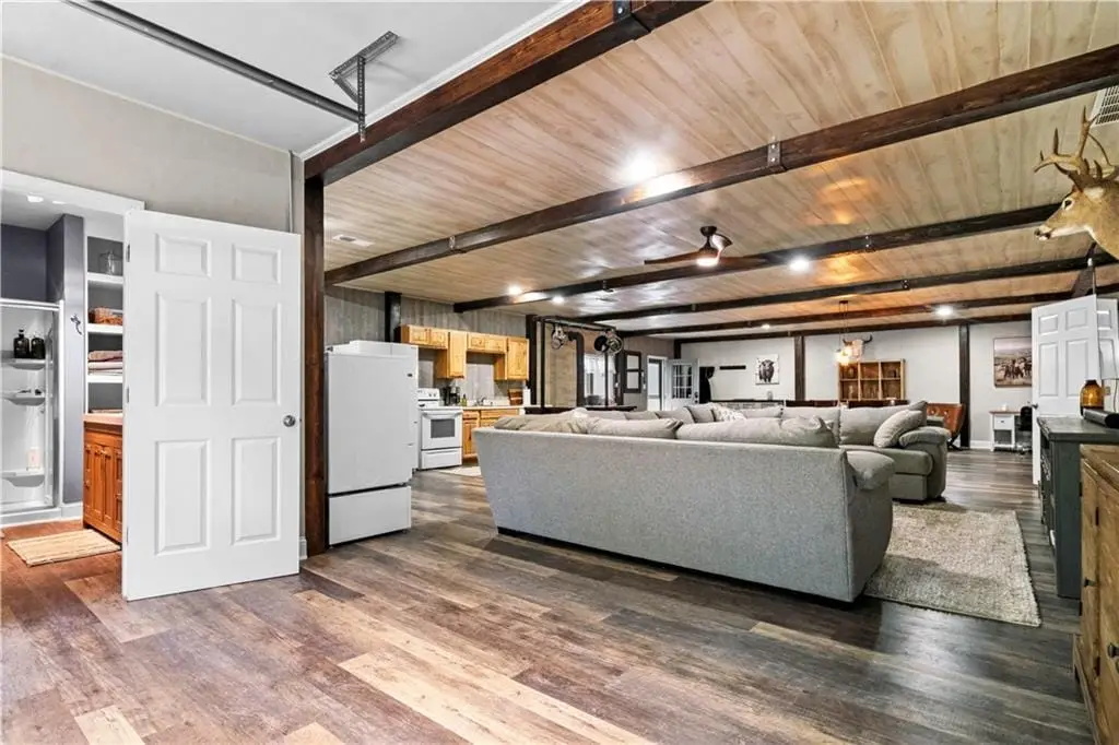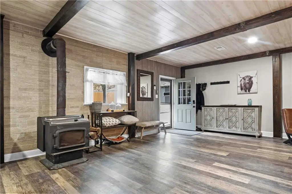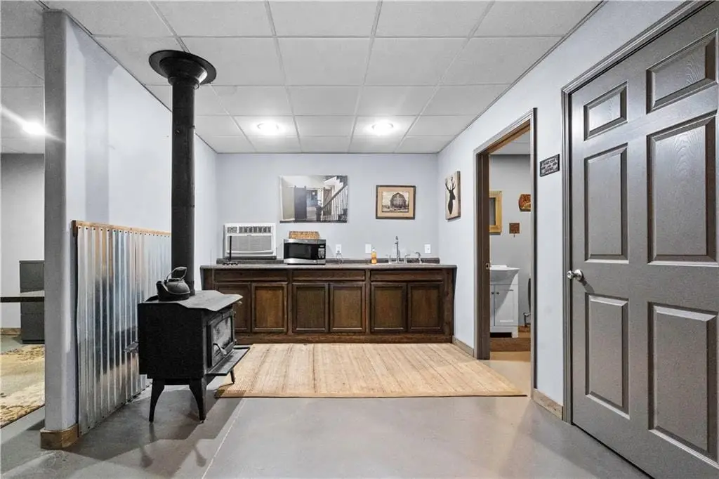 ONE. OF. A. KIND. This exceptional property feels hours from the city with a KC address. Where Serenity meets Adventure ALL off paved roads. This secluded 15.5 acre private retreat is tucked deep in a natural mix of mature oaks, plentiful black walnut, pines & thickets creating ideal bedding & feeding areas for Trophy White Tail deer, Turkey & small game. Honey Creek runs along the property creating a natural buffer to protect the land from development with rugged terrain & untapped potential for a private hunting club, outdoorsman's escape, a small sportsmans club, weekend getaway, Airbnb-style hunting retreat, event space with minimal development needed OR a family compound! Nestled behind a long private drive is an unpredictable stretch of land with 3 separate buildings that curate a small village. A main lodge w/unique barn wood finishes, wood burning stove & Custom Live Edge Bar on caster wheels. Unique office spaces with built-in Sonos sound system. Dens Armor fiberglass ceiling finish that bring the outdoors; in! Expansive garage space for any car enthusiasts for a full collection or private showroom. Dual multi-purpose zoning potential (2 existing BPU meters 1RES/1 COMM) with Fiber Optic internet upgrades, the possibilities are endless w/ Industrial Asphalt for heavy equipment & tandem axle trucks. This sanctuary is a MUST SEE with spectacular entertaining spaces, bunk room, bedrooms, laundry, full kitchen, outdoor patio, covered pavilion, picnic area, indoor gym with custom Bluetooth Sauna, fitness studio, hot tub, nature trails + pond stocked full or Bass, Blue Gill, Grass Carp w/ a private dock. Whether you're seeking a private sanctuary for your family, a place to launch your next business venture, or the ultimate setup for a passion project, this property delivers it ALL! Close to the legends, Sporting KC, easy access to Arrowhead, within arms-reach of Weston, Parkville, Lawrence + a quick 20-minute drive from Estate Gate to KCI International Airport.