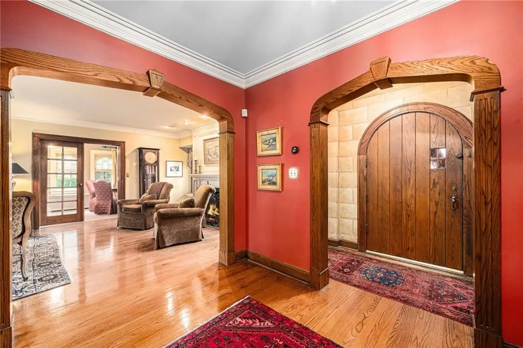 Step into timeless elegance in this stunning English Tudor nestled in the coveted Armour Fields subdivision. From the moment you enter, youll be captivated by the arched doorways, beautiful millwork, and both front and back staircases that showcase the homes architectural charm. This spacious 5-bedroom, 3-full and 2-half bath residence blends classic character with modern comfort.Enjoy a freshly updated kitchen featuring stainless steel appliances and newly refinished cabinets, while the finished lower level with a wet bar is perfect for entertaining. Additional highlights include an oversized heated 2-car garage, sprinkler system, and energy-efficient solar panels. Every corner of this home offers warmth, sophistication, and styletruly a must-see for those who appreciate architectural detail and old-world craftsmanship combined with todays