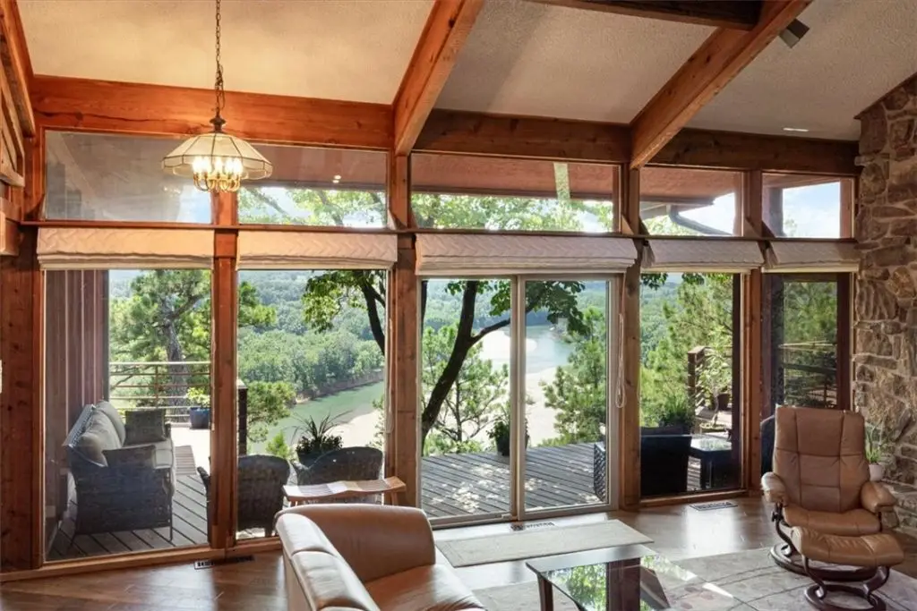 Escape to Timeless Elegance in this Custom Home in the 7,000-acre gated community of Flint Ridge, Kansas, OK?perched above the Illinois River with breathtaking views. Designed for comfort & entertaining with character, it features warm cedar, copper inlay and native stone throughout, with a sunlit atrium at the heart of the home. River Views from every room, the spacious layout flows easily into a private courtyard & an outdoor pavilion with misters, perfect for entertaining or relaxing over the view. Totally updated, two high-efficiency gas Mendota fireplaces & dual HVAC heat pump systems keep the home cozy & efficient year-round. Whether you're enjoying coffee with a view, hosting under the pavilion, or exploring Flint Ridge's river recreation, golf or pools this home blends rustic charm with modern amenities. It's more than a house?it's a spectacular River View Retreat built for comfort, beauty & peace. Don't miss this rare opportunity to own a one-of-a-kind home in one of Oklahoma's most scenic communities.