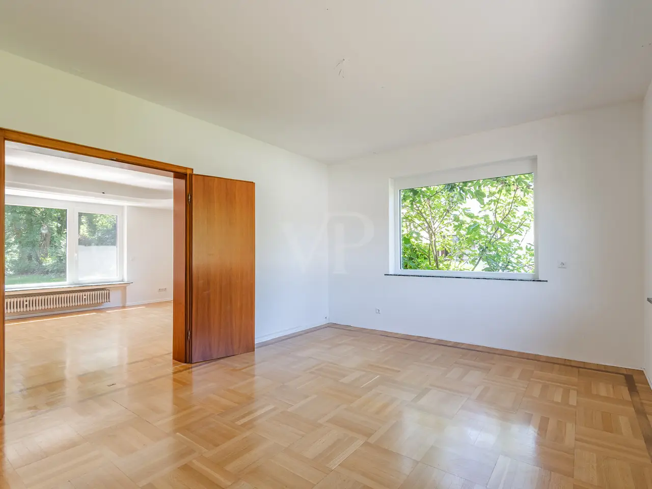 Welcome to a particularly charming property that is ideal for families with high standards. This well-kept detached house was built in 1959 and is located on the sought-after Geigersberg, nestled in a quiet cul-de-sac. With a generous living space of around 215.42 m² and a sizeable plot of around 816 m², the property offers plenty of space for individual design options. The angled bungalow impresses with its intelligent room layout and fittings. The light-flooded living area is the central point of the house and creates an inviting atmosphere with its large window fronts. The windows have been fitted with double glazing, which ensures good insulation. Particularly noteworthy are the spacious entrance hall and the elegant parquet flooring, which lend the house a timeless elegance. Two terraces and a balcony provide additional living comfort and offer plenty of opportunities to relax and linger. The well-tended sun garden with mature trees is another highlight and invites you to linger outdoors. A separate terrace room makes it possible to enjoy the proximity to nature even in bad weather. The property has a spacious bathroom and a guest WC, which adds to the comfort. The spacious kitchen with adjoining storage room leaves nothing to be desired and offers enough space for culinary development. A granny apartment with an area of 48 m² extends the possible uses and could ideally be used as an office or for visitors. The top floor also offers expansion reserves for additional space requirements. The heating is provided by an oil-fired central heating system, which ensures cozy warmth. However, a renovation of the house would be advisable in order to meet current living trends and exploit the full potential of the property. There is a spacious, extra-long garage for vehicles, which offers enough space for a large vehicle and provides additional storage options. This property on Geigersberg offers you the opportunity to live in a sought-after location while benefiting from the advantage of a quiet cul-de-sac location. It combines the best of both worlds: Proximity to nature thanks to the wonderful garden area and generous living space for comfortable living. A viewing of this property will convince you of its potential and open up new perspectives. Don't hesitate to seize this opportunity and arrange a viewing today to see the benefits of this attractive property for yourself.