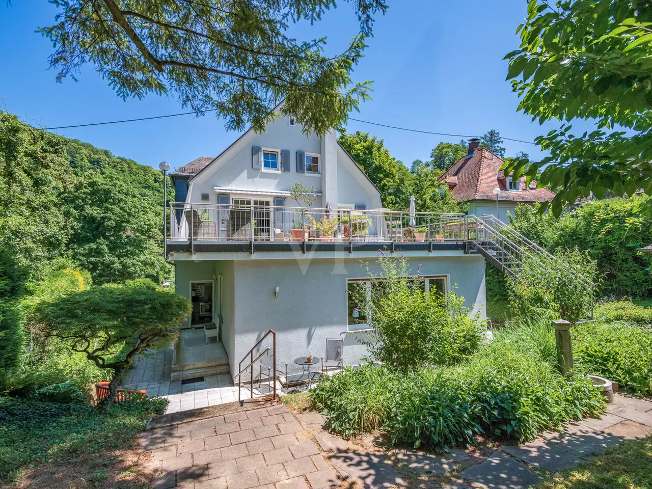 Stylish town villa with 3 residential units and fantastic plot Living & working in perfect harmony This extraordinary town villa from 1914 combines historical charm with modern living comfort and offers a rare combination of stylish living, inspiring work and family-friendly living space. With a total of 10 rooms and 3 bathrooms, this property offers plenty of space for a variety of uses. You can feel the splendor of the turn of the century as soon as you enter. The historic details have been preserved with great attention to detail and tastefully combined with modern architecture through a comprehensive, high-quality renovation. The generous living space, spread over three floors, offers flexibly configurable rooms - ideal for the integration of a home office, law firm or studio. Whether as a retreat for creative work or as a representative office for your company - professional and private living environments merge here. A special highlight is the large sun terrace on the upper floor with a view of the beautifully landscaped garden. This green oasis with mature trees, well-tended flowerbeds, secluded seating areas and a boules court invites you to relax and linger. A paradise for children, gardening enthusiasts and anyone who loves the outdoors. A sauna on the ground floor with a view of the Turmberg promises relaxation within your own four walls. Modern amenities such as a large, high-quality fitted kitchen with seating area, Swedish stove, modern bathrooms and new heating technology ensure contemporary comfort - without compromising the soul of the house. This property is more than just a home - it is a place with history, character and a future. A real gem for anyone looking for something special. See for yourself and arrange a viewing to discover the full potential of this home