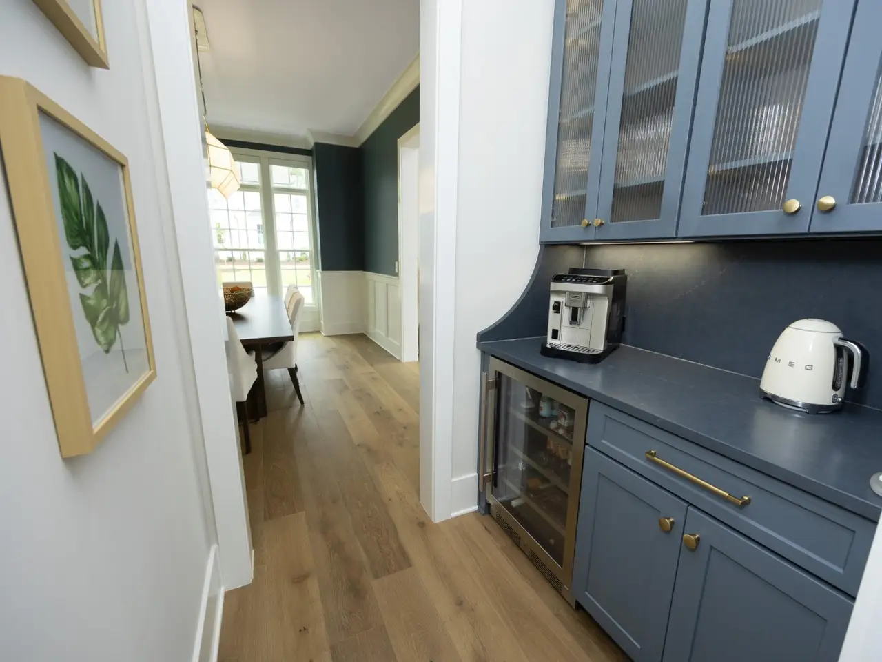 This beautifully crafted custom home is located in one of the most desirable neighborhoods in the Triangle and was proudly featured in the 2023 Triangle Parade of Homes. Enjoy a short walk to Green Level High School-one of the top-rated schools in North Carolina-and quick access to I-540, just two miles away. The home also connects directly to the Cary/Apex Greenway, offering convenience for outdoor activities. The main and second floors feature elegant 8-inch-wide plank hardwood flooring, including in the spacious primary suite. A herringbone-patterned entryway and detailed trim work throughout the home highlight its thoughtful design and craftsmanship. The gourmet kitchen boasts an oversized marble waterfall island, a 79-inch built-in column refrigerator and freezer, a secondary prep sink, and extensive cabinetry with quartz countertops-perfect for both entertaining and everyday living. The layout includes a practical mudroom connected to a three-car garage and a private first-floor in-law suite. Thoughtful upgrades enhance comfort and functionality, including motorized Phantom screens on the back deck, automated window shades, a built-in sound system, and electric privacy glass in the shower. Designer lighting and ceiling fixtures add a polished, upscale touch throughout. There's additional potential with ~488 square feet of unfinished attic space ready to be customized. Relax in the screened porch with a built-in fireplace, and inquire about the available infinity pool design to complete your dream outdoor retreat. This home offers a rare blend of timeless design, modern features, and a prime location-better than new.