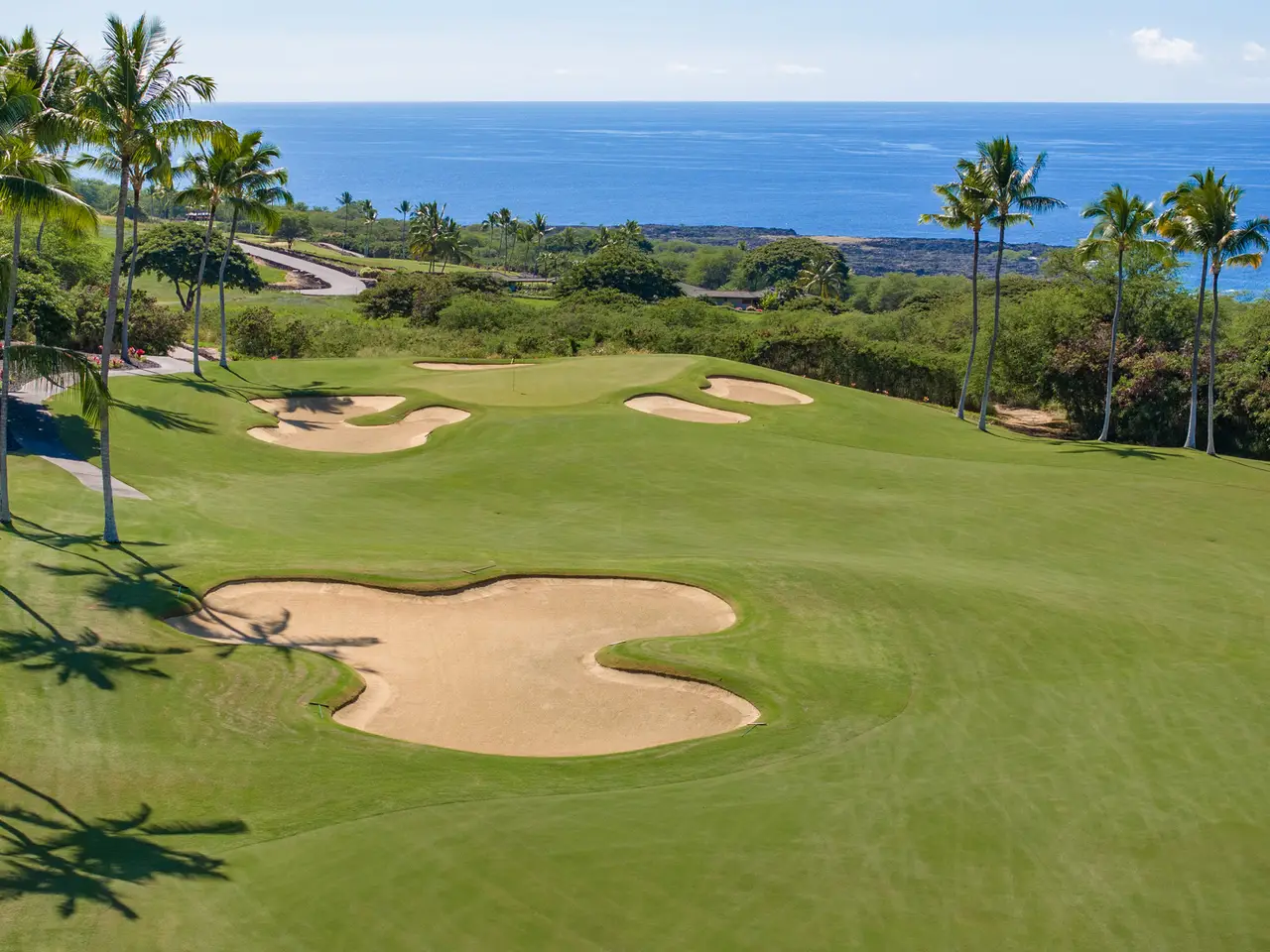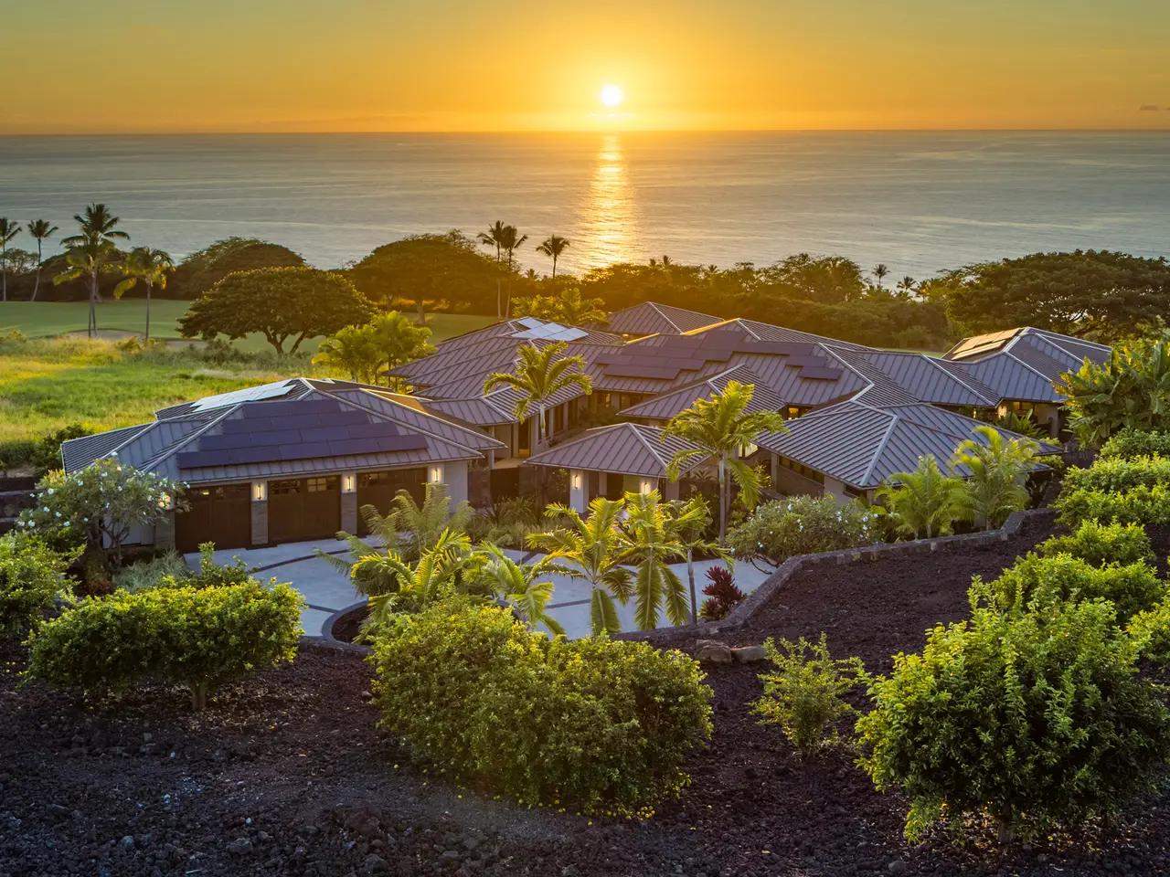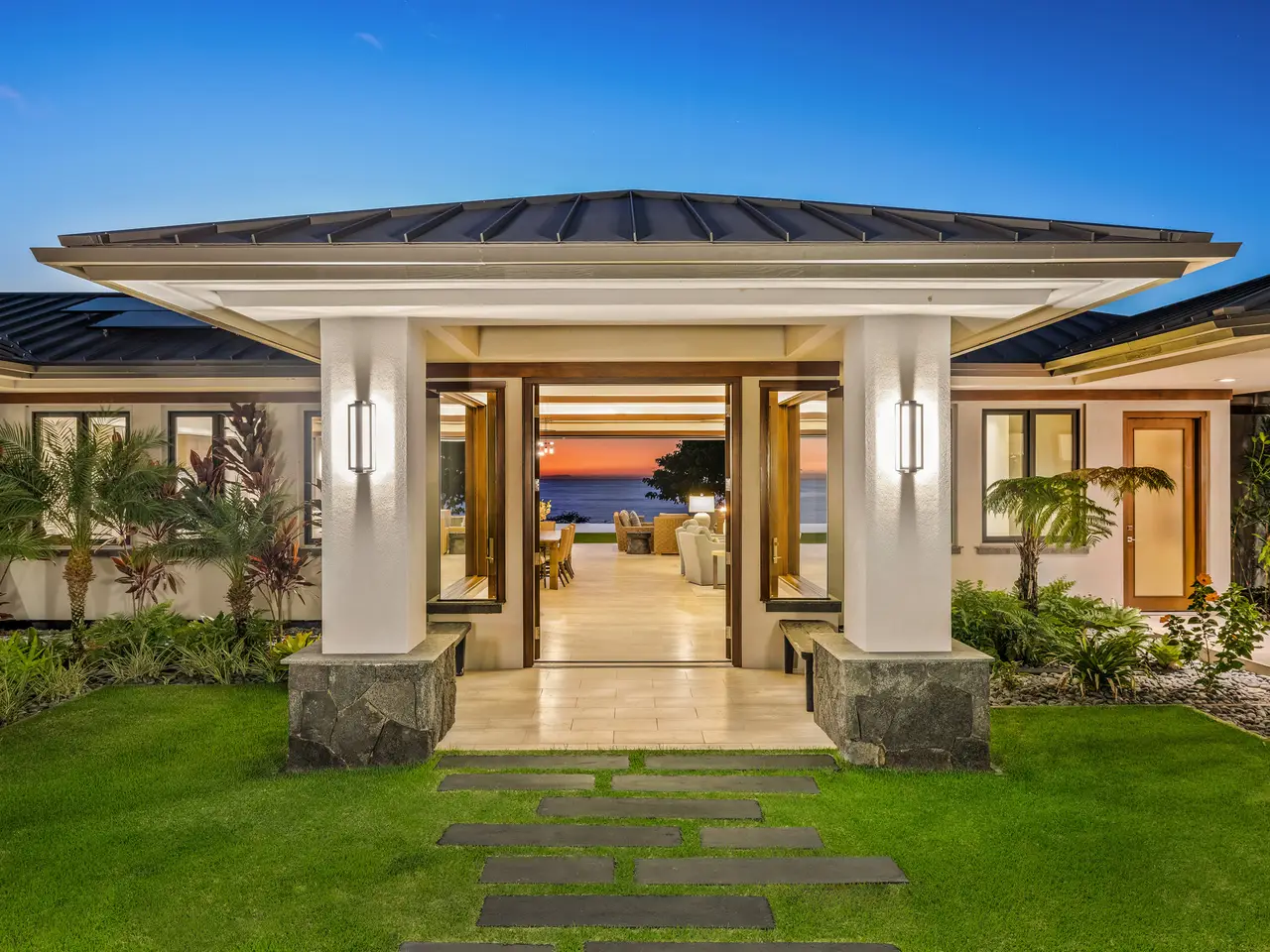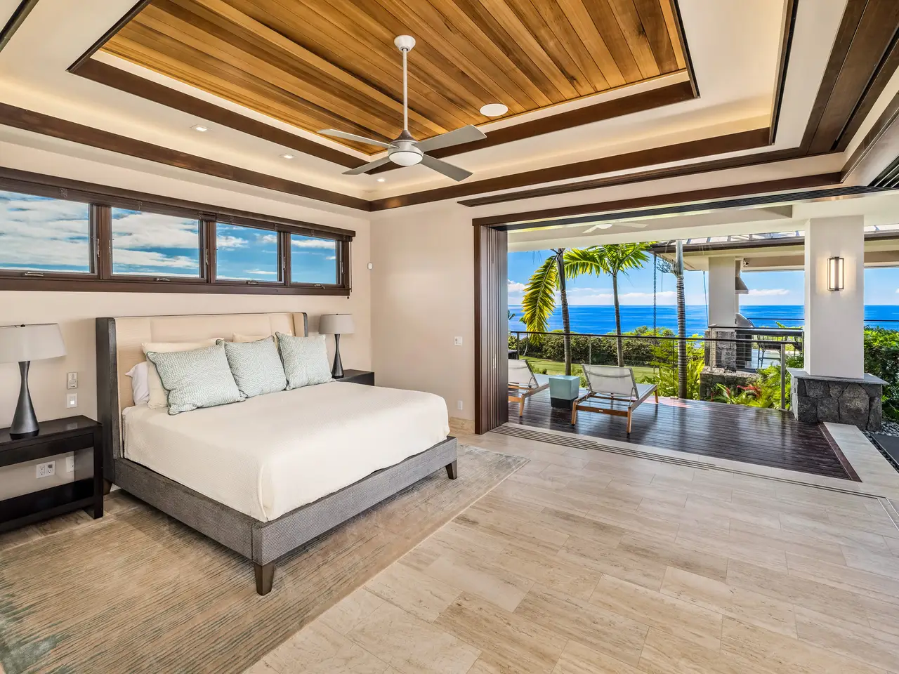 Hokuli‘a 116 stands as a truly remarkable residence along the golf course fairway within the exclusive community of Hokuli‘a. This property spans 1.15 acres and offers breathtaking views of the ocean and coastline. Designed to celebrate the natural beauty of Hawai‘i, this home combines refined architecture with an enviable location, providing the ideal setting for enjoying a peaceful and elegant island lifestyle. Refined Craftsmanship & Unique Indoor-Outdoor Living is reflected in every room and connects to lush landscaping, enhancing the indoor-outdoor flow and taking advantage of its natural environment. Pocket sliding doors open the interiors to an expansive covered lanai with stunning views. The home’s pod-style design features separate structures, or “pods,” for different functions such as bedrooms, living spaces, and the kitchen, all connected by breezeways and outdoor paths. Upon arrival, you are greeted by a roundabout that leads to a serene private courtyard, seamlessly blends into expansive social spaces that showcase stunning views. High ceilings with rich wood paneling create a warm and inviting atmosphere, while award winning built-in cabinet screens add both artistry and functionality. Fully furnished with luxurious finishes, this residence embraces open-air living, blending traditional tropical materials with modern aesthetics to create an elevated island-inspired experience, enhanced by gentle breezes and awe inspiring views from every corner. With more than 7,000 square feet under roof, the property includes a dedicated office, a spacious great room, 4 bedrooms, and 4.5 bathrooms. The private pool and spa tub provide a tranquil retreat, where you can start your mornings with a swim or end your evenings soaking in the vibrant hues of the Hawaiian sunset. A Hokulia Membership is included in the purchase price.