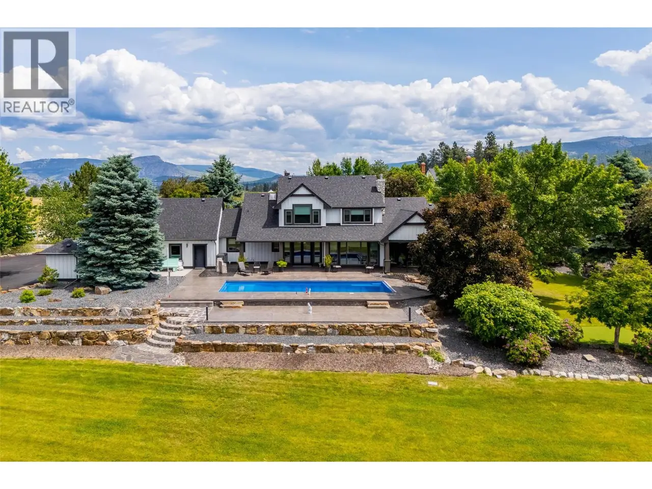 Luxury defined by land, lifestyle and freedom — 9.56 acres in South East Kelowna! A property built for living fully immersed in nature where you can grow your own food, harvest lavender, grapes and honey! A place where family gathers, horses roam and evenings end poolside as the sun sets — all from your private 5,400+ sqft estate overlooking orchards, farmland and the valley below. Extensively updated, the home offers the perfect family floor plan with four bedrooms, five bathrooms, a home office and full basement spread across three levels. Entertain from the kitchen with high-end Stainless Steel appliances, enjoy tons of natural light and retreat to the main-floor primary bedroom with direct access to the backyard oasis. The outdoor living space features a saltwater pool, water fountains, putting green, stamped concrete patio, built-in speakers and stunning west-facing views. In addition to the triple garage, the property includes a detached four-car shop with oversized doors attached to a spacious drive-thru barn with horse bays, wash station and radiant in-floor heating throughout. Enjoy a greenhouse, shelter for hay storage, five horse paddocks, premium fencing, honey apiary, lavender rows, extensive landscaping, security gate, domestic and irrigation water plus endless potential for your agricultural or equestrian vision! All this within 10-15 minutes of Okanagan Lake, award winning golf courses, wineries and amenities. A private sanctuary close to the city— offering space, privacy and the lifestyle to build your legacy!