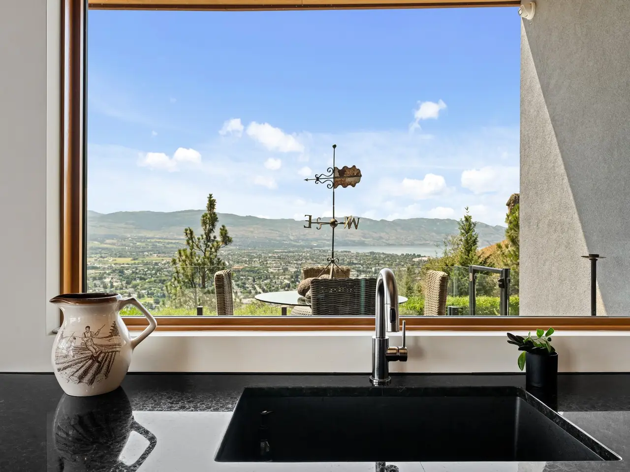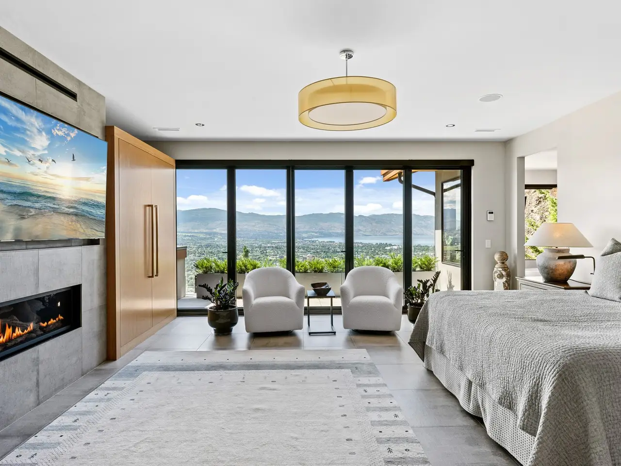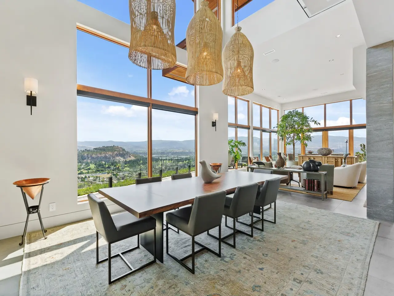 Listed by Unison Jane Hoffman Realty | Private lavish compound, located in the exclusive and desirable gated community of Highpointe, features an approx. 5700 sq. ft. main house and a detached luxury guest house, gym with infrared sauna, and office space. This architectural “landmark” has been recently re-modelled by Team Construction and current owners who had a vision to create warm and inviting spaces. Tasteful interiors were re-designed with $1.7 M spent in high-quality renovations; no expense has been spared from the mechanical to SMART Home technology. Open concept living areas with high ceilings and expansive windows capture panoramic views. The stunning kitchen and butler’s pantry makes a statement with granite countertops, professional appliances, custom wood cabinetry and a cedar beam feature above the island. On the upper level, indulge in luxury from the primary retreat with its own private lake view balcony, a custom walk-in closet and a spa-inspired ensuite. Opportunity to host “legendary” parties poolside with the wall of doors opening to the poolside kitchen accommodations. Ease of access to all levels with the recent addition of an elevator. Expanded triple garage plus extra parking. Amazing trail system and park just a quick walk from the front door. Rare private 2.6 acre setting to enjoy the captivating views of the valley, and the backdrop of the bluffs from the golf course to the lake and twinkling city lights.