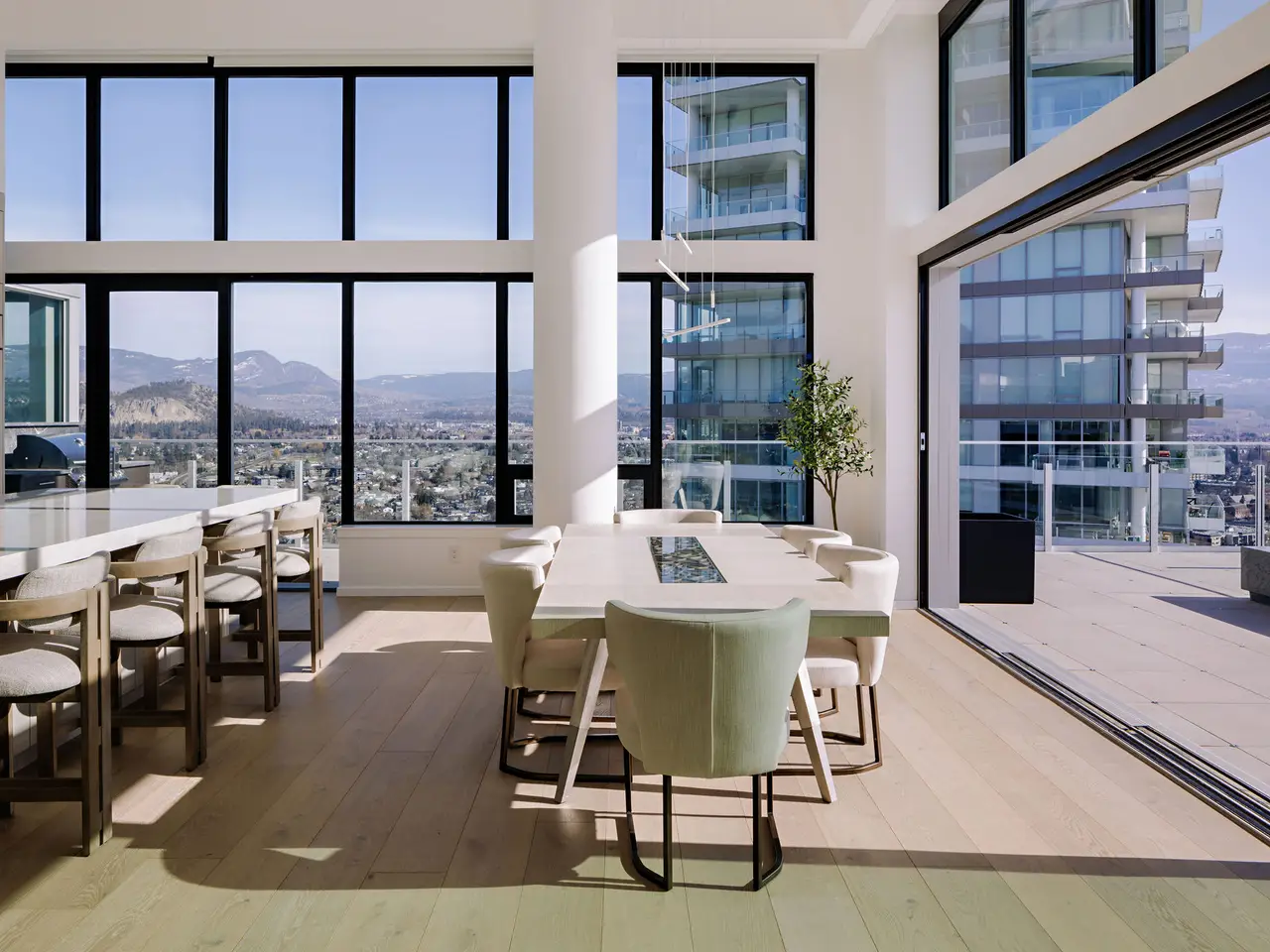 Listed by Unison Jane Hoffman Realty | This penthouse at ONE Water Street, elegantly defines Okanagan urban living. Comprising one-half of the 29th floor and purposefully designed to make the most of Kelowna’s vistas and natural light, enjoy captivating panoramic views through large spanning bay windows, offering unparalleled sights of the city, lake, and mountain scape. Expansive 3-bedroom home offering over 2400 sq. ft. of open concept living ideal for everyday living and entertaining. Well-appointed with carefully selected custom finishings, a superior appliance package and soaring ceilings. Designed with outdoor living in mind, enjoy enthralling views from the immense outdoor space totalling over 1,200 sq. ft. and featuring a fire pit, hot tub and outdoor kitchen. Retreat to the sensational primary suite with a spa-inspired en suite. SMART Home package for your convenience with automatic blinds, audio, climate control, security and lighting. Secure parking for 3 cars. Residents of ONE Water will relish in access to The Bench. The landscaped 1.3-acre amenity oasis is comprised of two impressive swimming pools, oversized hot tub, a pickleball court, outdoor seating with fire pit enclaves, a dog park, and so much more. Just steps from your front door, you will find a selection of restaurants, cafés, retail stores, and services lining the ONE Water Street streetscape. Georgie Award Finalist for BC Residential Community of the Year.